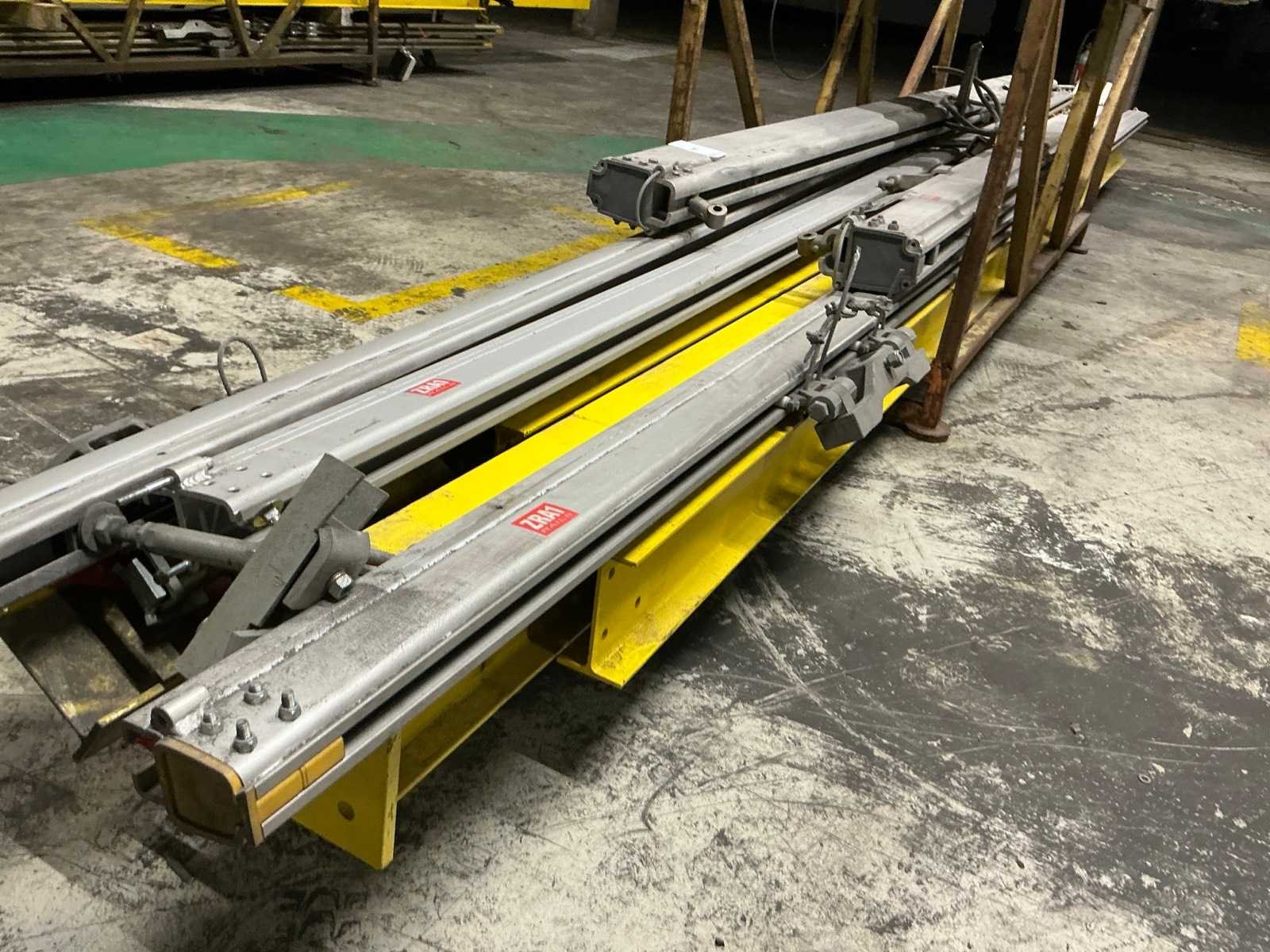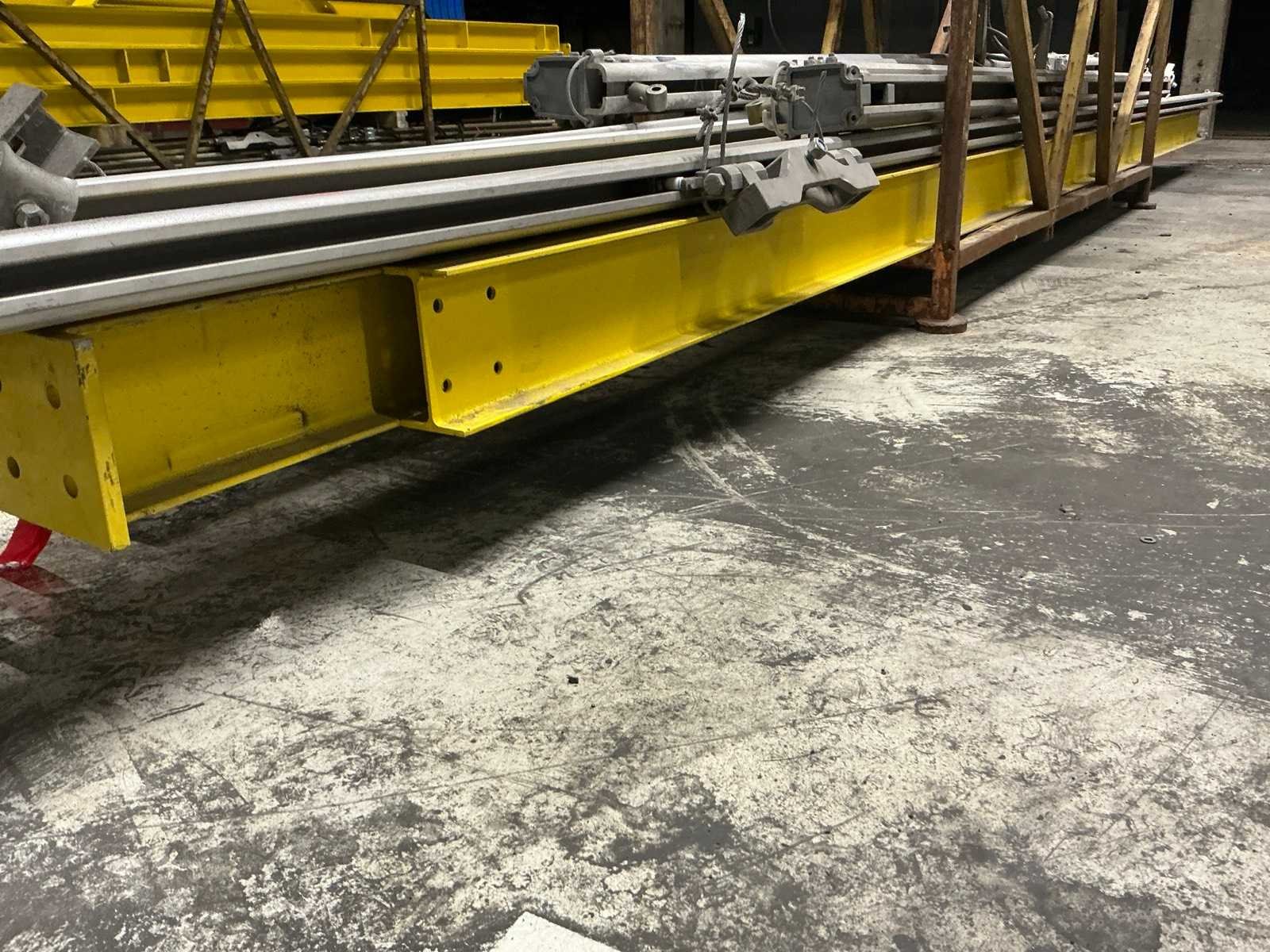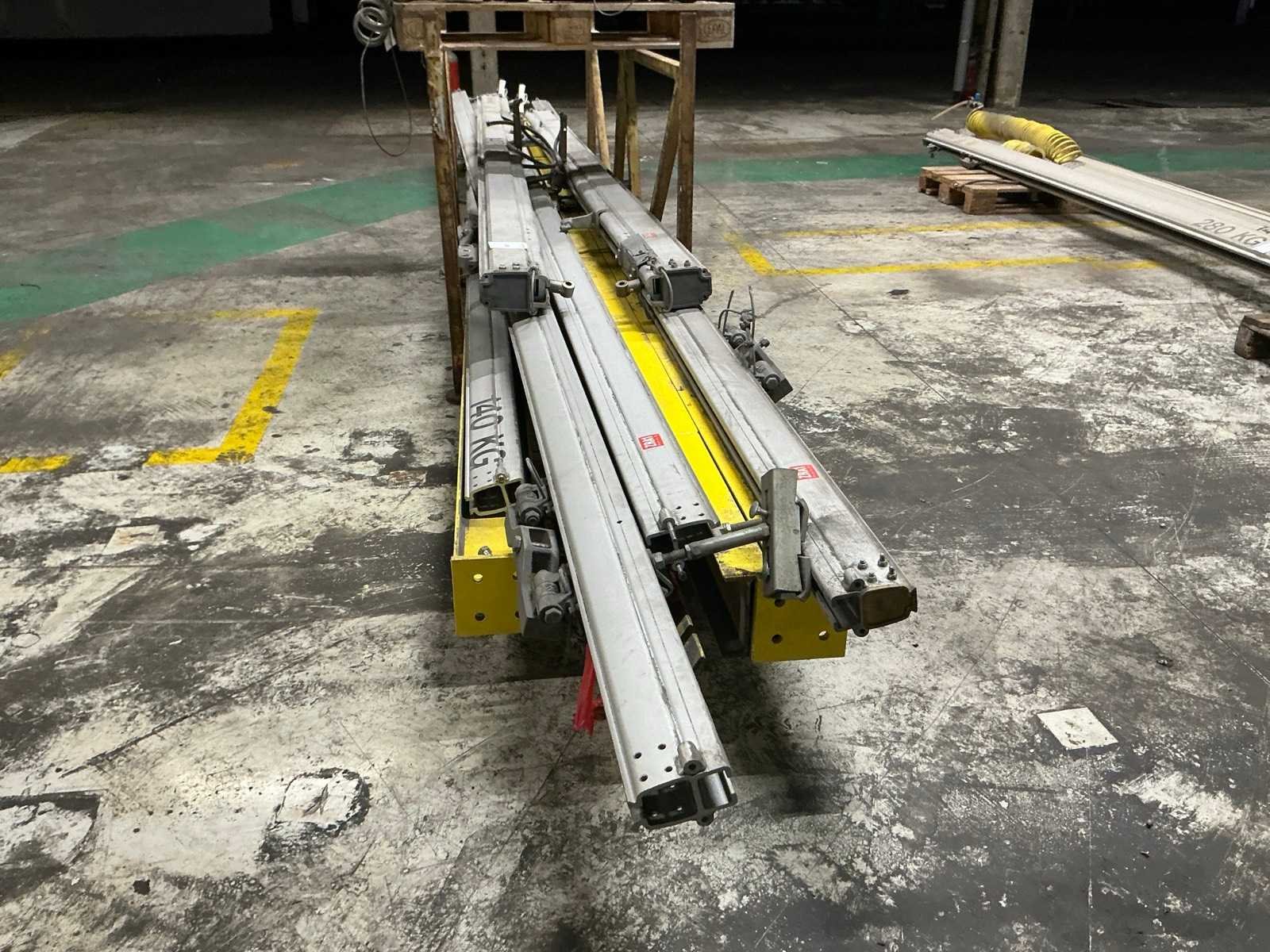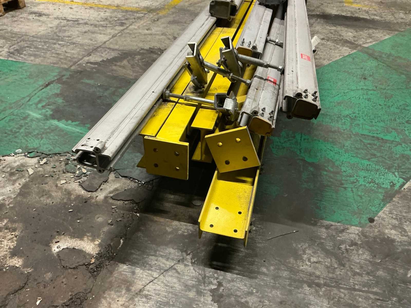 Zijnde 4 aluminium railkokers (2x 7+6,3m)met plafondbeugels en 2x aluminium dwarsligger 4m met draagcapaciteit 140kg Merk: Ingersoll Rand