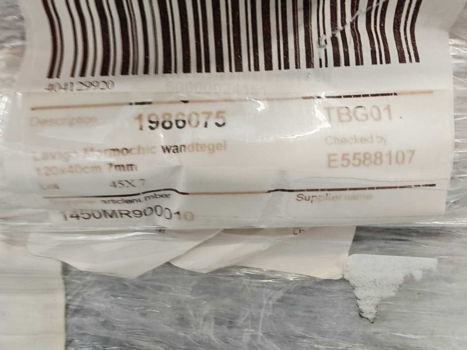 Merk: Villeroy&Boch Kleur: Zwart Afwerking: Glans Lengte: 40cm Breedte: 120cm Materiaal: Keramiek Dikte: 7mm Type: Wandtegel Model: Marmochic 1450 MR90 Gewicht: 400kg Aantal m² per verpakking: 1.92m² Aantal pakken: 10
