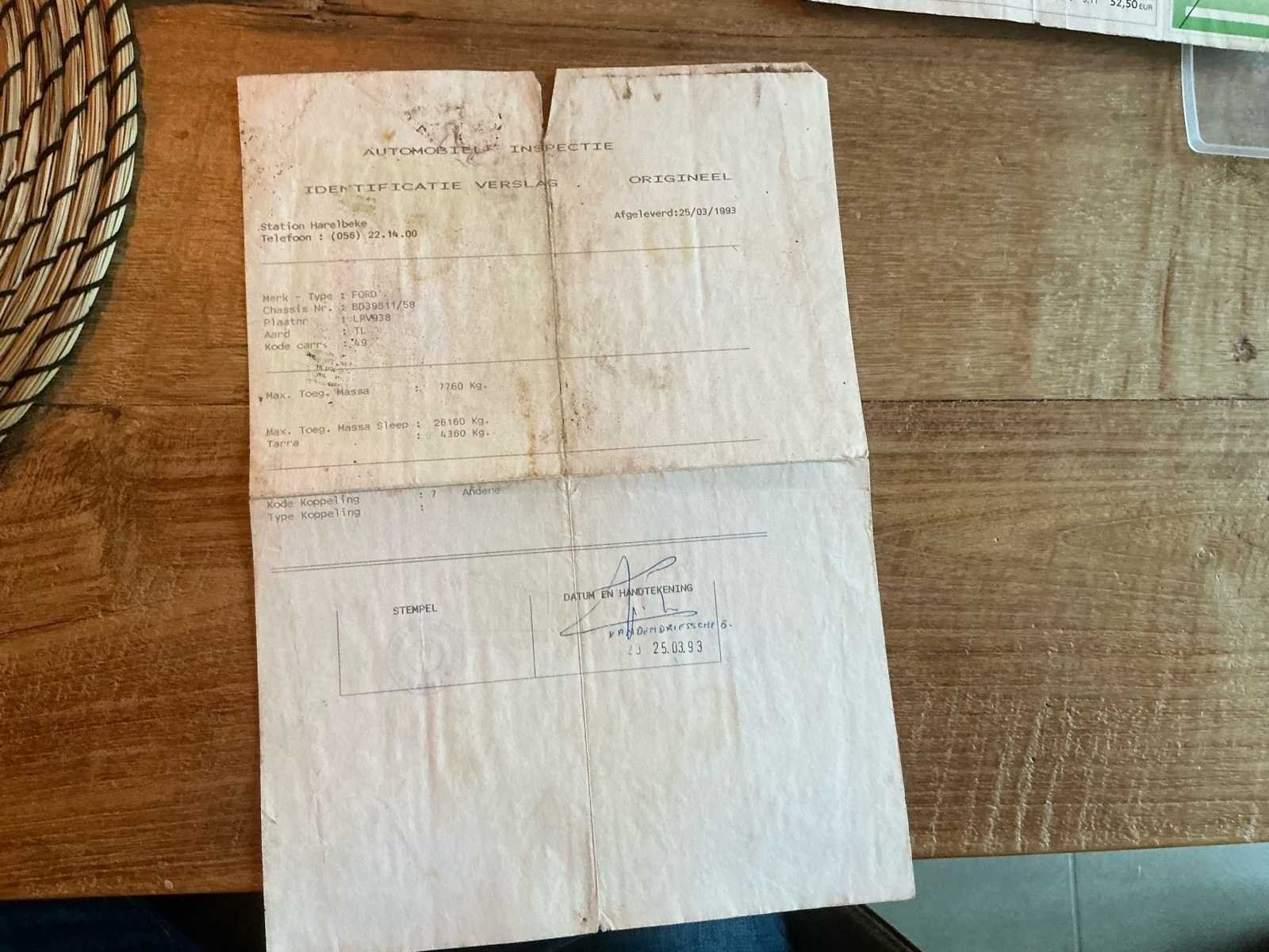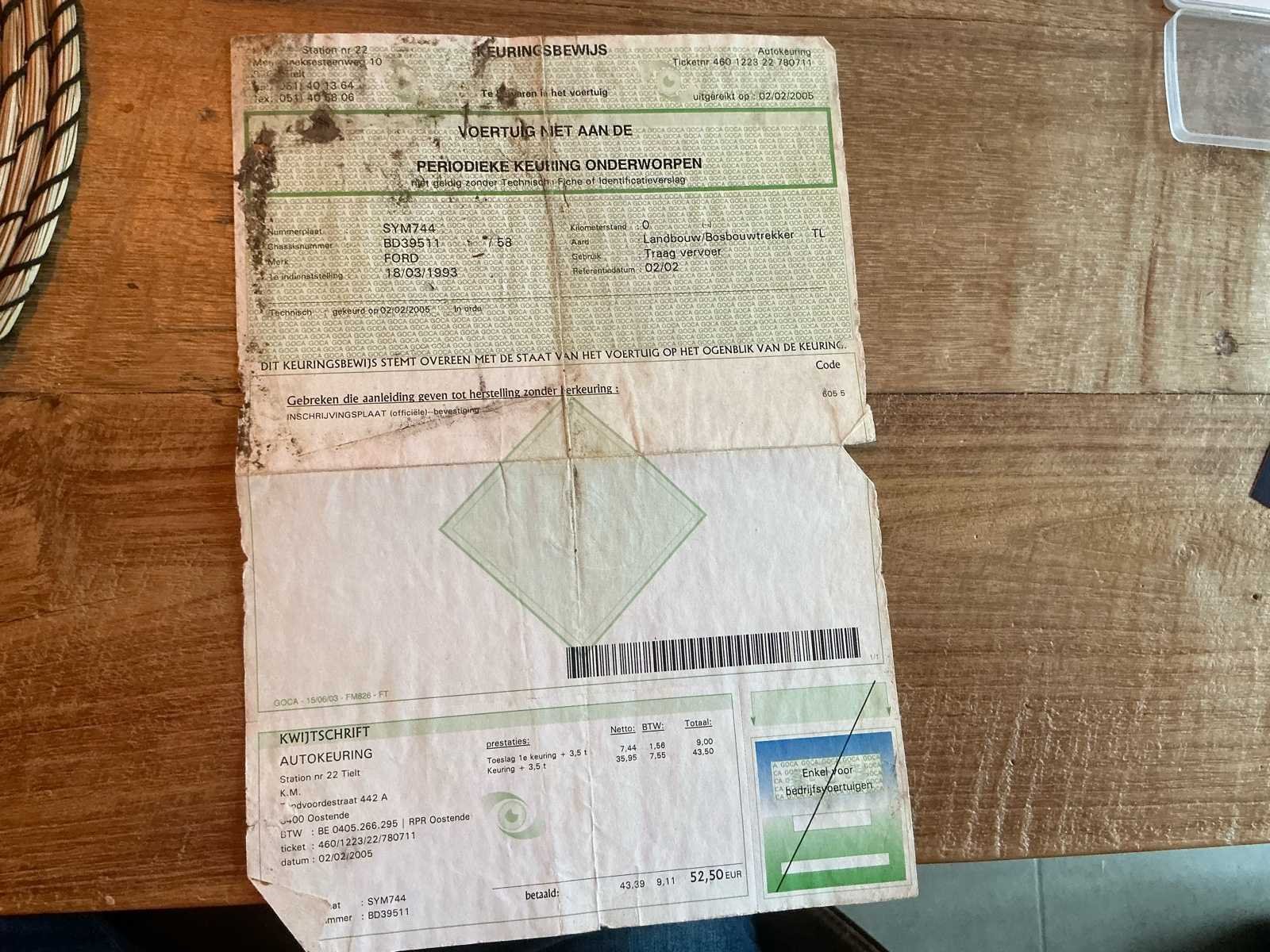 Hydraulisch 3e punt ( topstang), banden ok, start en rijdt, alle papieren aanwezig. Merk: Ford Type: 640 SLE-_ DT Bouwjaar: 1993 Motorvermogen (kW): 85kW Afgelezen urenstand: 8000 Versnellingsbaktype: 16x16 transmissie 4traps- powershift Cabine: true Eigen gewicht: 3400kg Totale afmeting L: 4200mm Totale afmeting Breedte: 1900mm Totale afmeting Hoogte: 2800mm Datum eerste toelating: 18/03/1993 Nationaliteit documenten: België