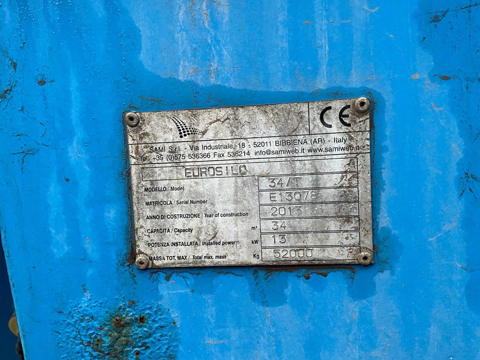 Capaciteit van 34M2. Merk: SAMI Model: Eurosilo 34/T Bouwjaar: 2013 Eigen gewicht: 52000kg
