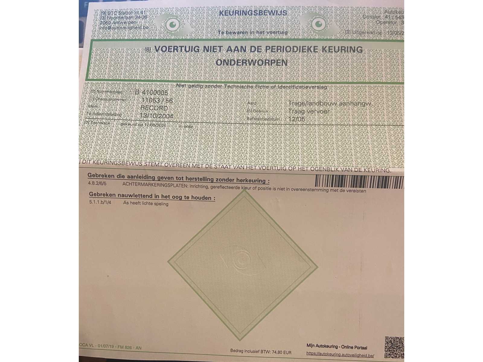 Kleine scheur bovenaan tank (zie foto’s) Merk: Record Type: V105a Bouwjaar: 2004 Serienummer: 11053