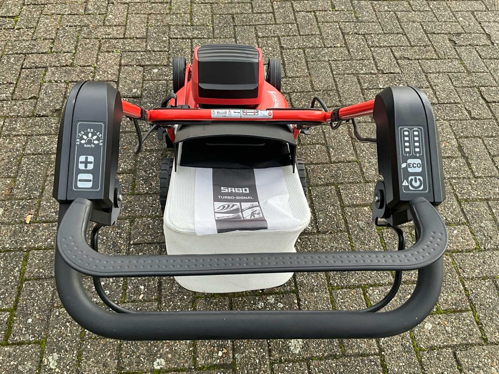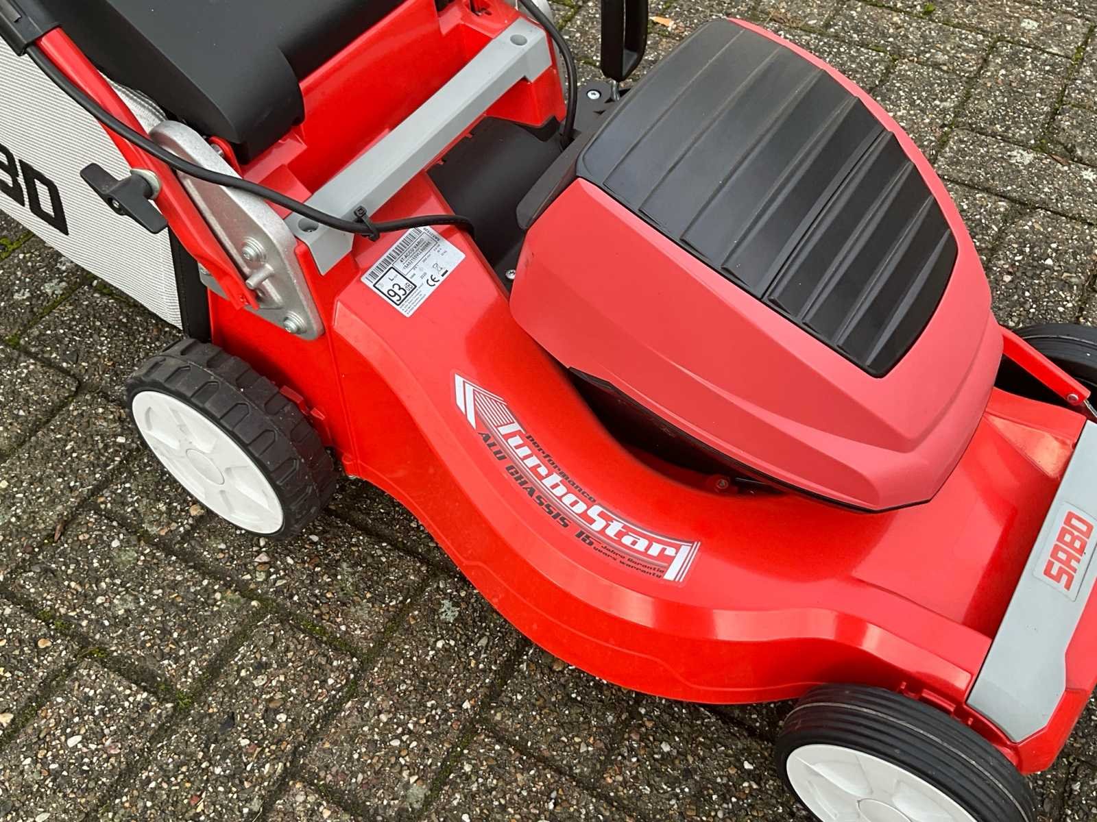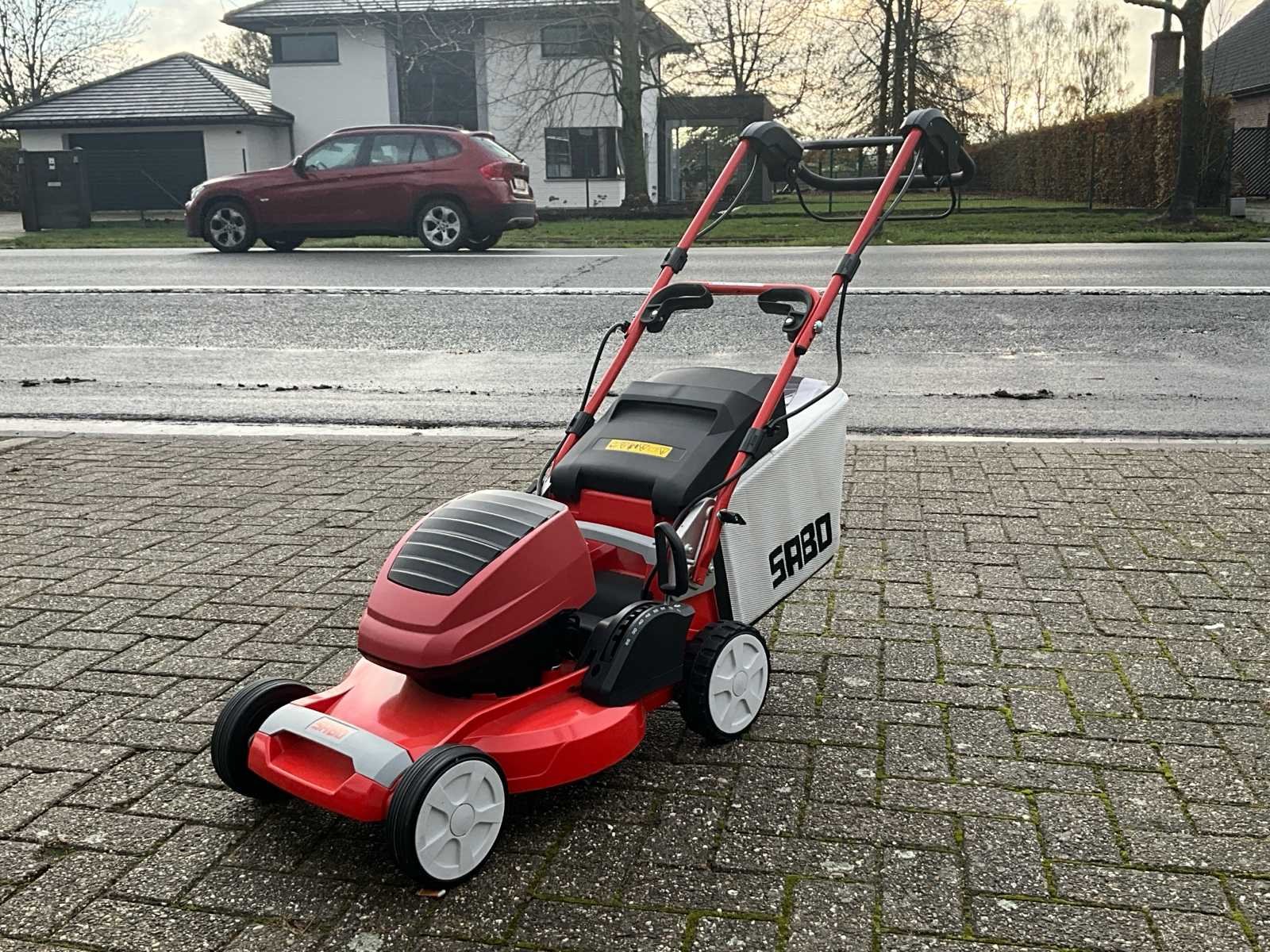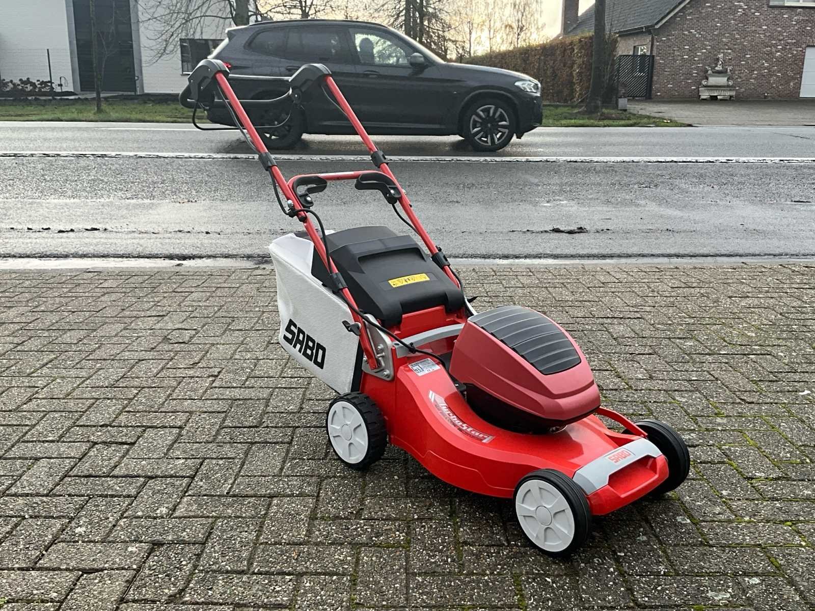 Accu grasmaaier. Exclusief accu en lader Merk: Sabo Type: 47-Accu-Vario Bouwjaar: 2020 Serienummer: 1SA5215SVLL000885 Werkbreedte: 47cm Loopmaaier: true Brandstof: Accu Opvang container: true
