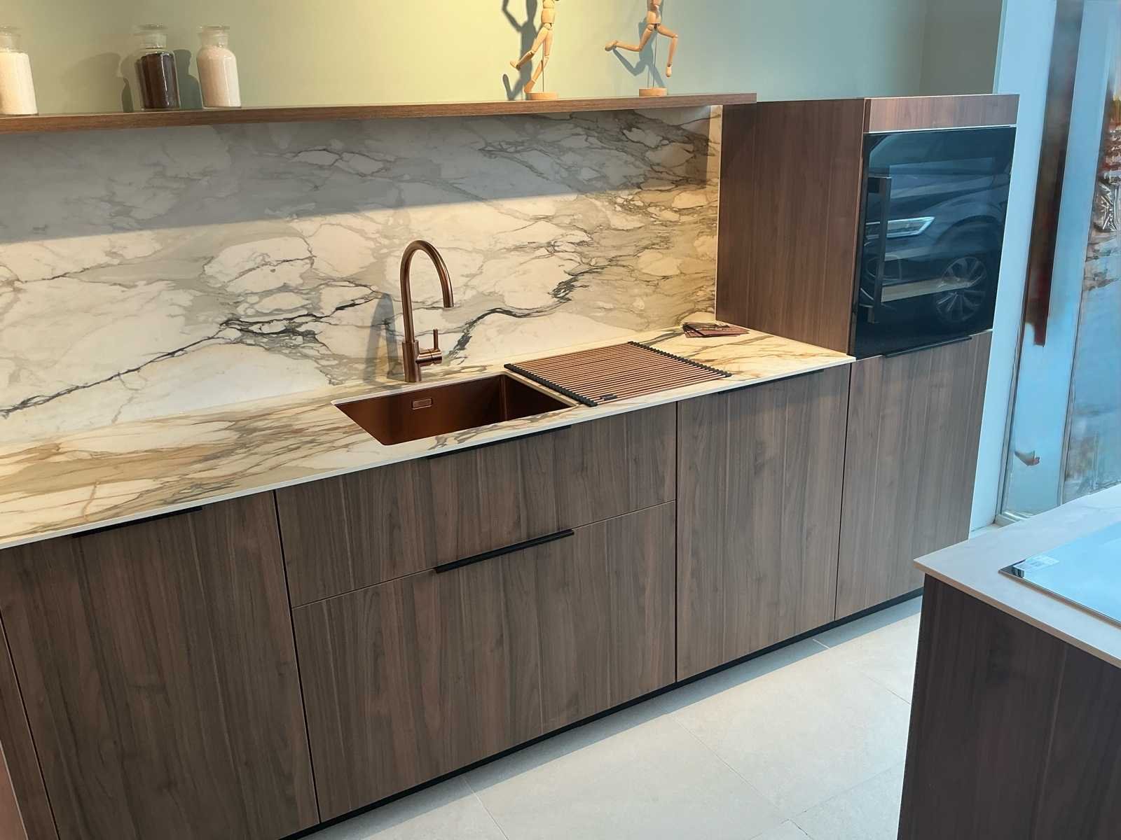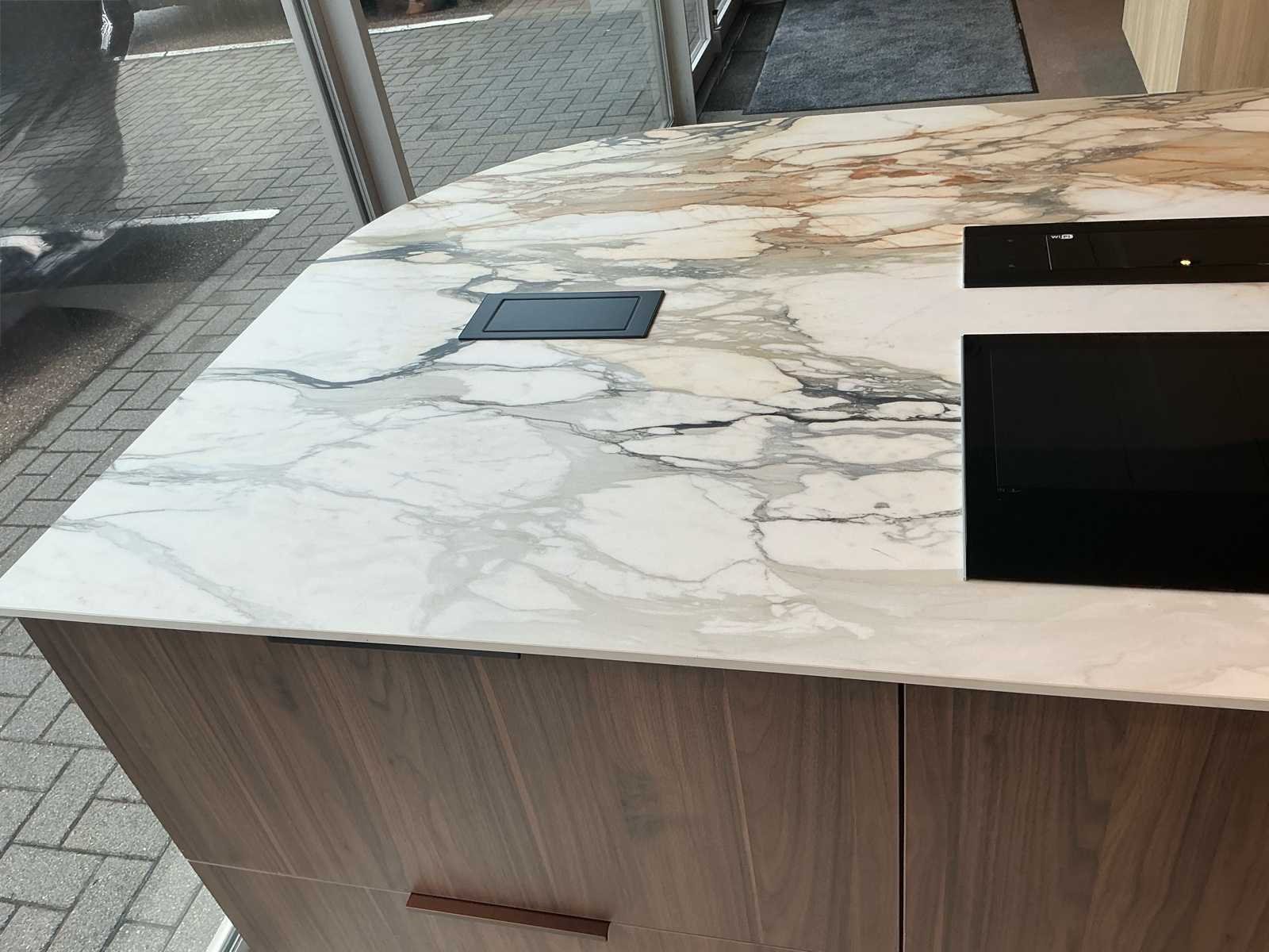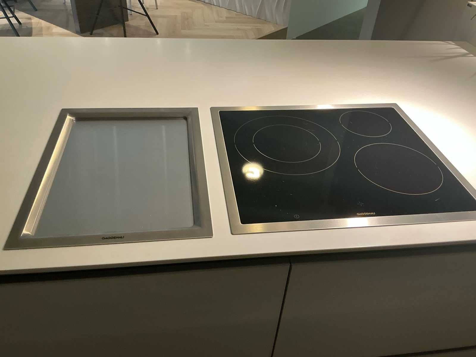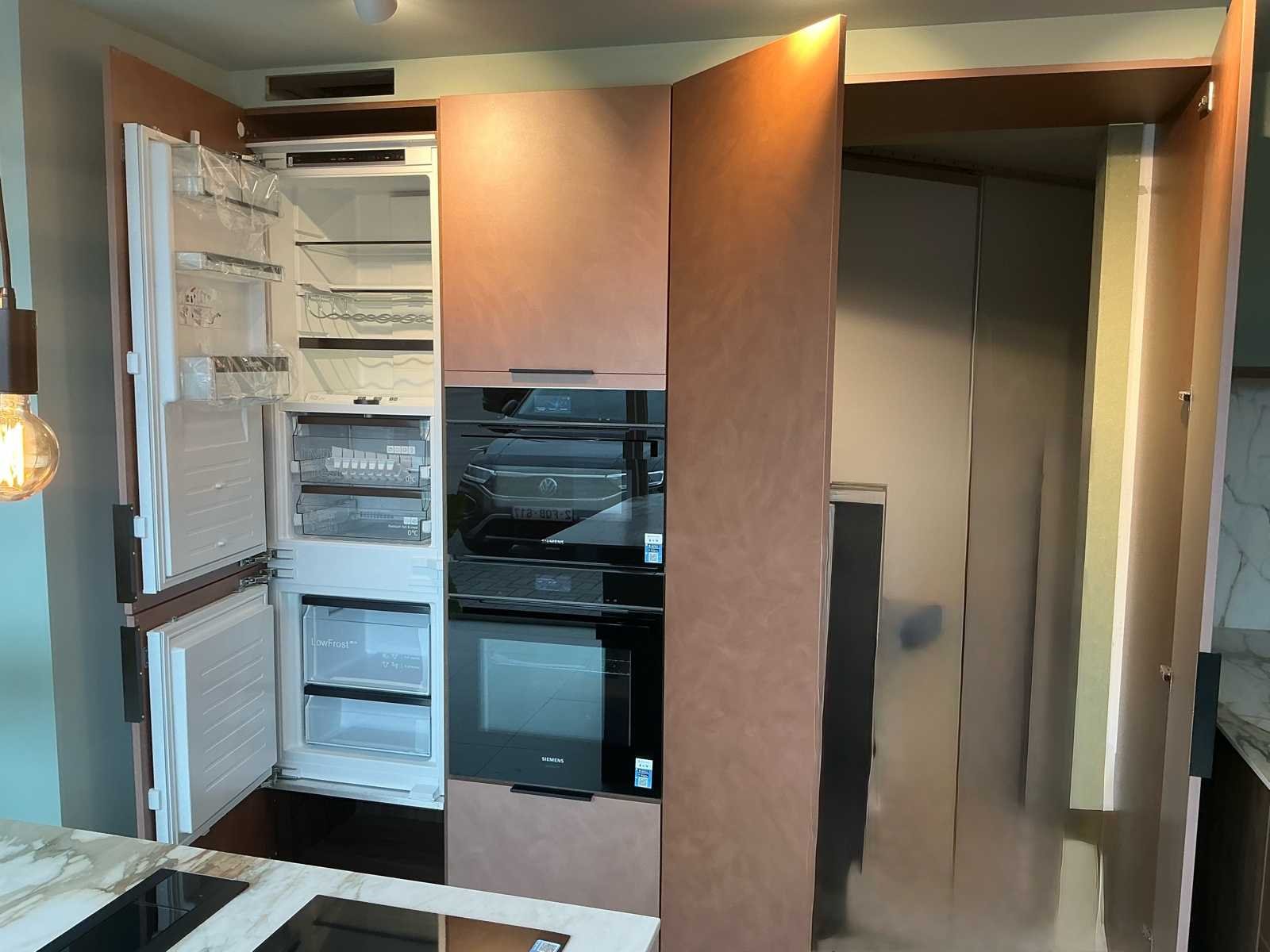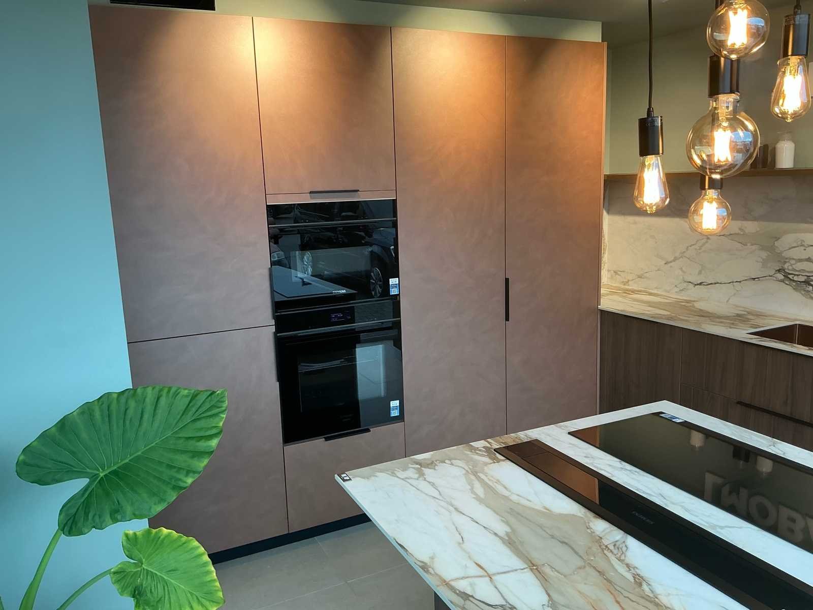 Kookeiland L. 1m80cm B. 1m50cm. Met afgeronde hoek, kasten met oven en combi microgolfoven B. 2m40cm H. 2m32cm, afwasmachine Siemens slechts 2 x gebruikt bij open deurdagen, 2 doorloop deuren, wijnkoeler Autova avintage, keramisch werktablet van 12 mm. Merk: The Top Model: The Top Werkblad hoogte: Keramischcm