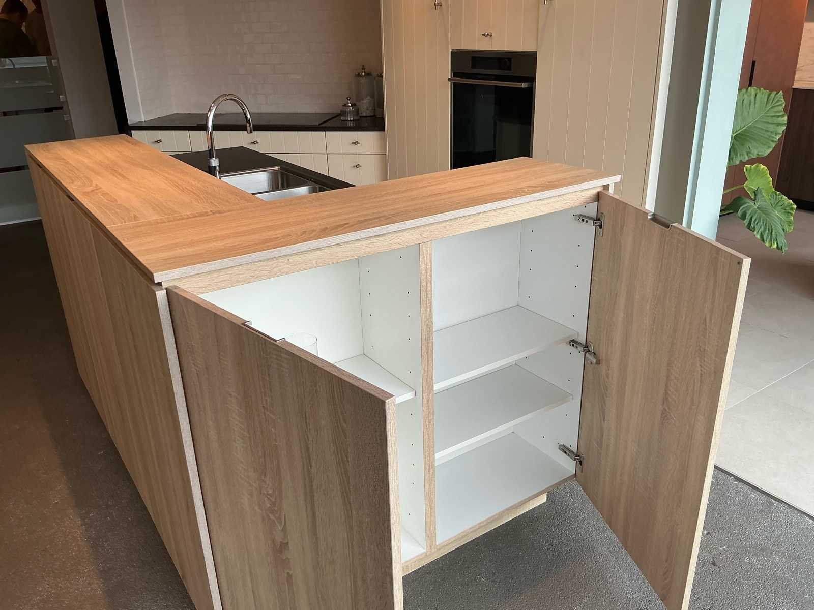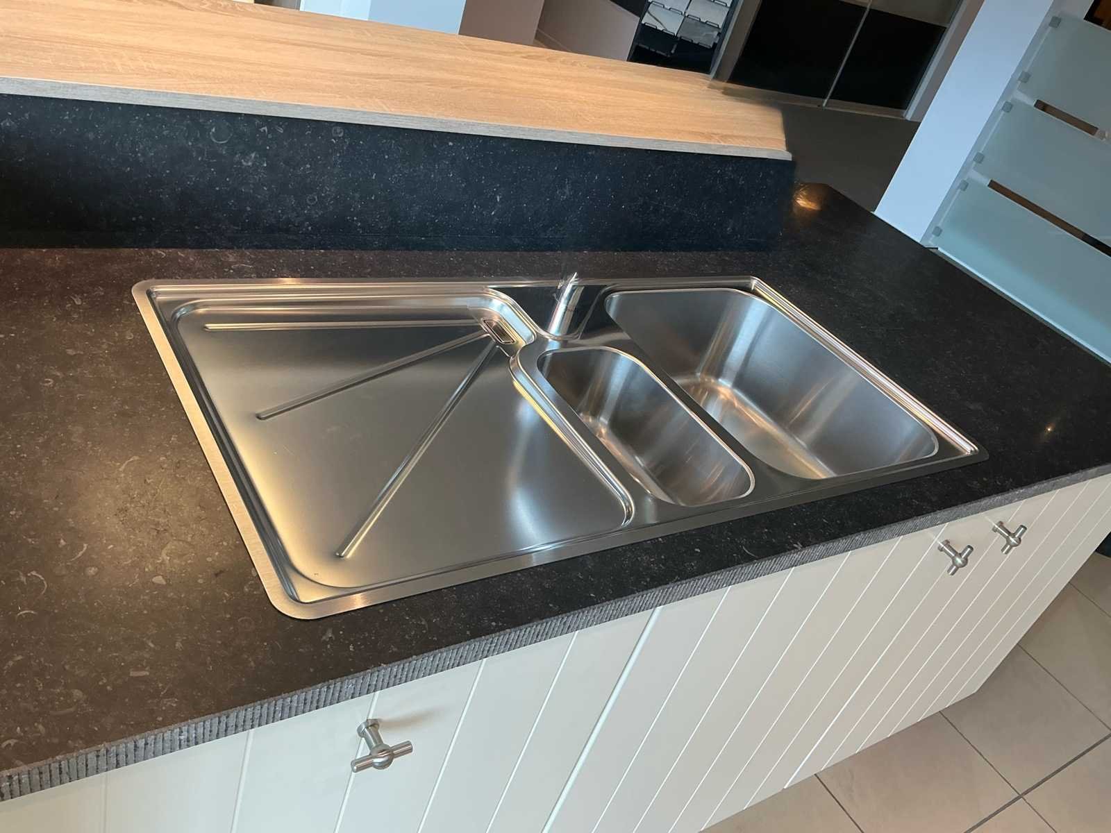 Verkoop toonzaal keuken, Zie bijgevoegde foto’s. Werkblad in arduin, spoelbak Franke in werkblad L.1m90cm en B. 96cm. Merk: Novy, Siemens, Franke Gootsteen: Franke Oven: Atag Afzuigkap: Novy Vaatwasser: Siemens