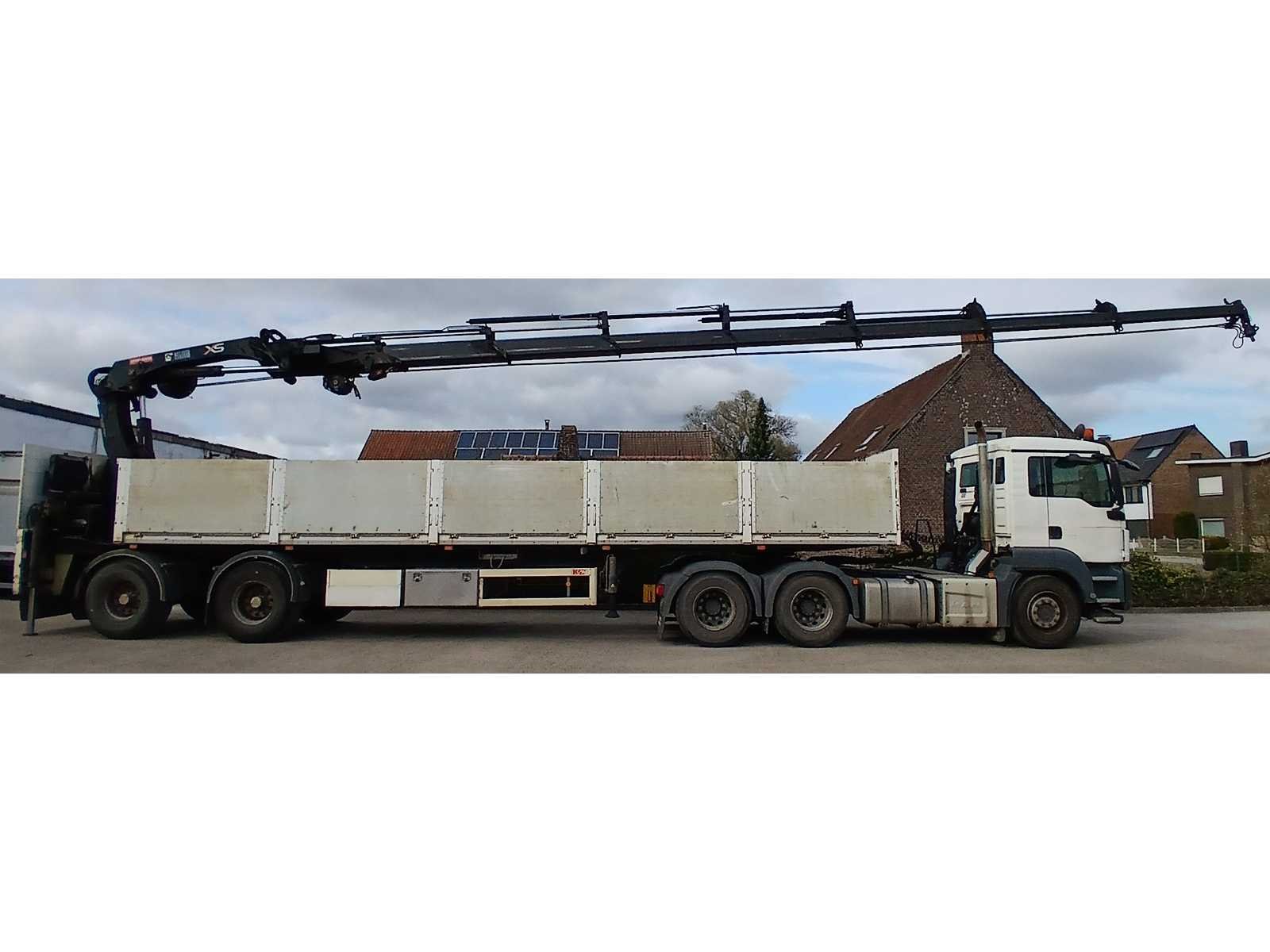 MAN TGS uit 2017 met KWB trailer. Deze is voorzien van een HIAB XS laadkraan. Merk: MAN Type: TGS Bouwjaar: 2017 Chassisnummer VIN: WMA30SZZ1JM760848 Cilinderinhoud: 12419cc Kilometerstand bij opname: 275695km Datum eerste toelating: 10/11/2017 Aantal assen: 3 Asconfiguratie: 4x6 Fuel Type: Diesel Emissieklasse: EURO VI Laadkraan: true Eigen gewicht: 9496kg Nationaliteit documenten: België Kentekenpapieren compleet?: true Diesel: true