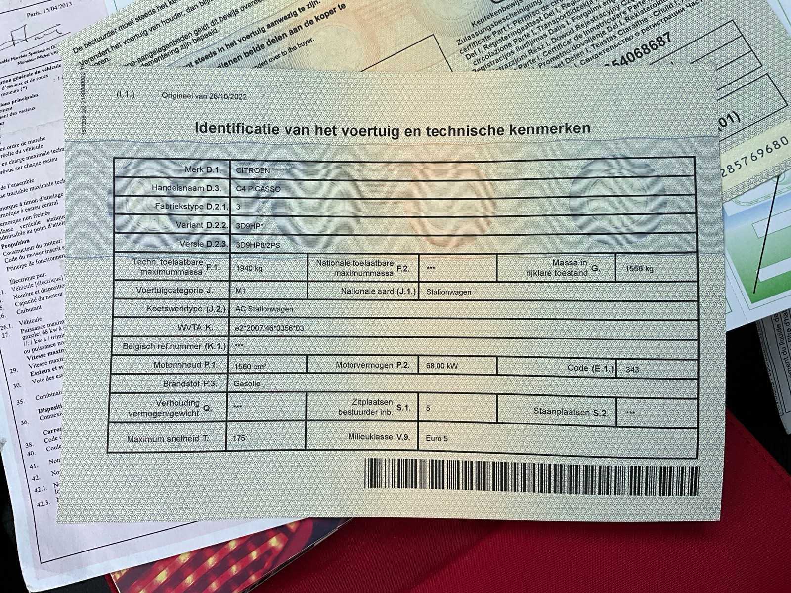 Merk: Citroën Model: C4 Picasso Bouwjaar: 2014 Afgelezen kilometerstand: 208509km Cilinderinhoud: 1560cc Vermogen (kW): 68kW Brandstof: diesel Chassisnummer: VF73D9HP8DJ885575 Datum eerste toelating: 22/07/2014 Transmissie: Handgeschakeld Aantal sleutels: 2 Nationaliteit documenten: Belgisch Start en rijdt: Ja startinformatie : Start en rijdt Inschrijvingsbewijs - deel 1 : Aanwezig Inschrijvingsbewijs - deel 2: Aanwezig