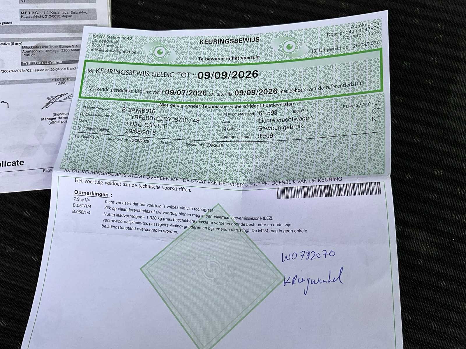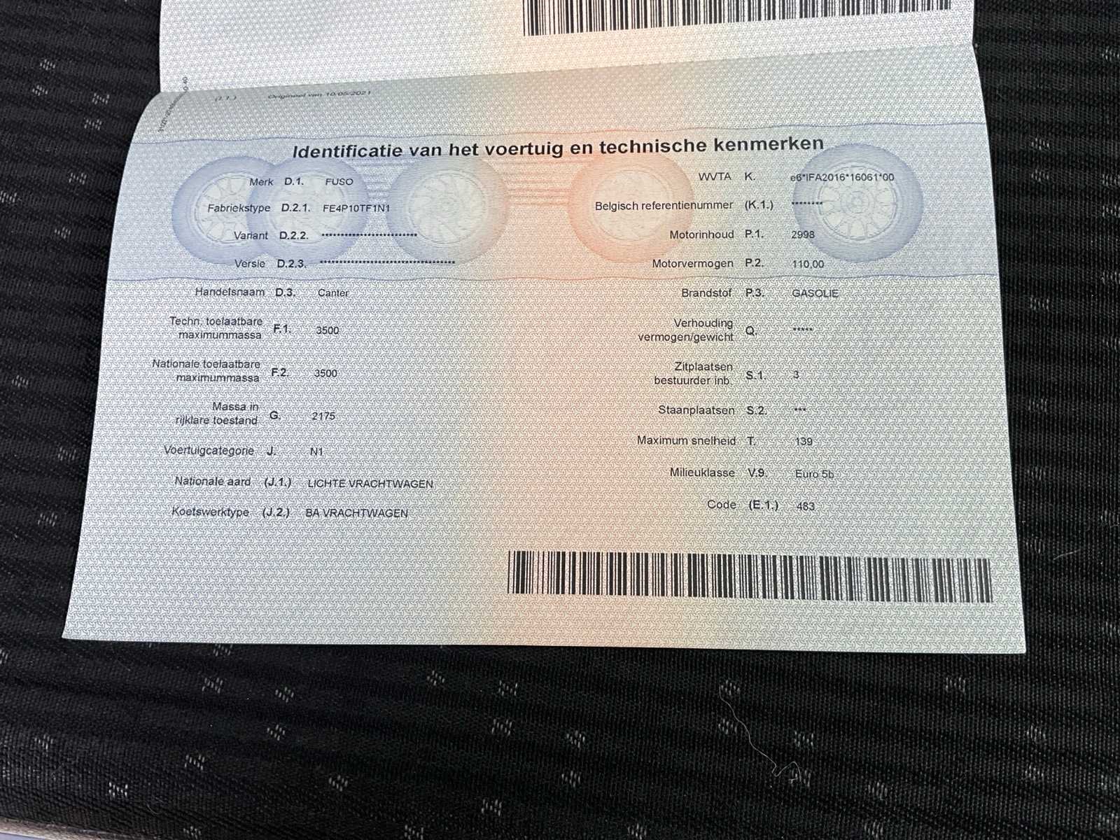 Let op Start en rijdt niet!! Moet technische gekeken worden door de koper. Merk: Fuso Model: Canter Bouwjaar: 2016 Cilinderinhoud: 2998cc Vermogen (kW): 110kW Brandstof: Diesel Tellerstand niet afleesbaar: true Chassisnummer: TYBFEB01CLDY08738 Datum eerste toelating: 29/08/2016 Aantal zitplaatsen: 3 Transmissie: Automaat Emissieklasse: Euro 5b Nationaliteit documenten: Belgisch Start en rijdt: Nee Vavato voert geen technische keuring uit.: true Inschrijvingsbewijs - deel 1 : Aanwezig Inschrijvingsbewijs - deel 2: Aanwezig