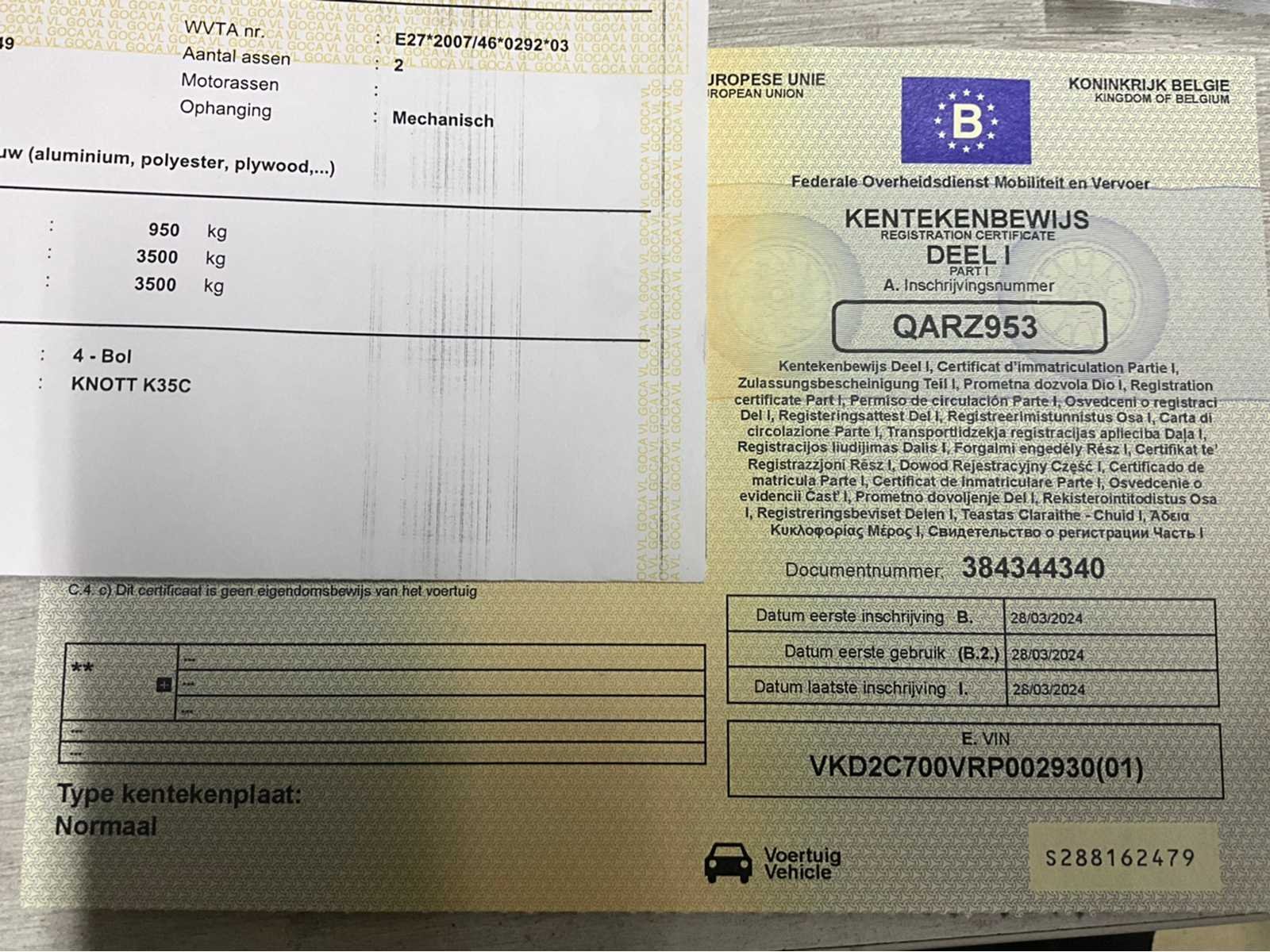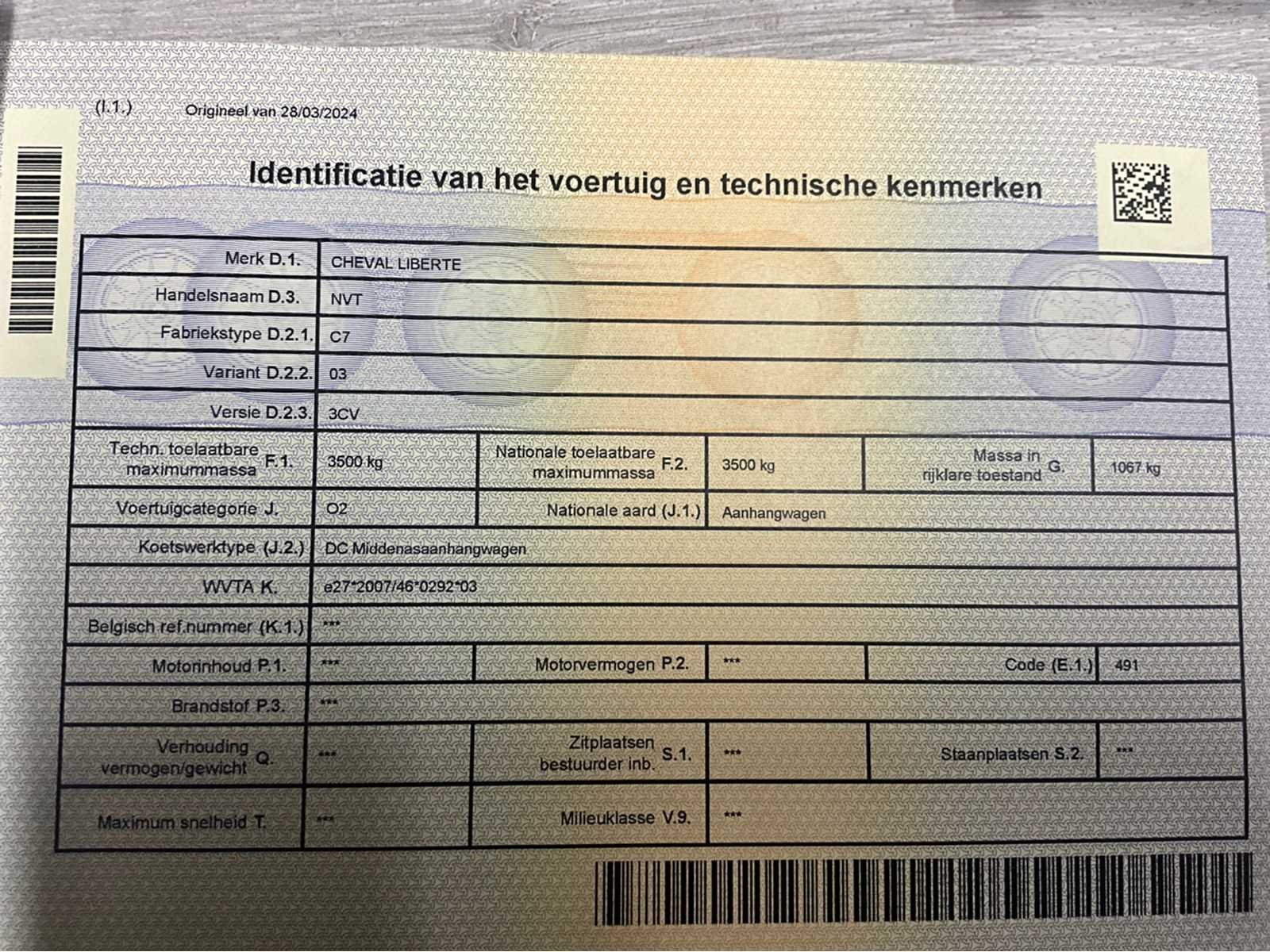 Prachtige en quasi nieuwe Cheval Liberté C7 van 2024, volledig professioneel uitgevoerd met gesloten aluminium/polyester opbouw en 3500 kg MTM. Dankzij de dubbelas en het indrukwekkende laadvermogen van 2.550 kg is deze aanhangwagen ideaal voor het transport van voertuigen, moto’s, quads, machines, materiaal of professionele cargo. De trailer is heel licht (slechts 950 kg tarra) en daardoor extra gebruiksvriendelijk, ook achter kleinere bedrijfswagens. Het verzinkte chassis en de kwalitatieve Knott K35C-koppeling garanderen duurzaamheid en veiligheid - Afmetingen (volgens COC): Totale lengte: 5.000 mm - Totale breedte: 2.135 mm - Totale hoogte: 2.365 mm - Wielbasis: 3.150 mm - Overbouw achteraan: 1.055 mm - Trackbreedte: 1.780 mm - Technisch volledig in orde — geldig keuringsbewijs tot 29/03/2026 - COC aanwezig - Kentekenbewijs deel 1 aanwezig, deel 2 wordt correct meegeleverd met officieel attest van verlies. Merk: Cheval Liberté Type: C7 Model: transporttrailer Bouwjaar: 2024 Chassisnummer: VKD2C700VRP002930 Laadvermogen: 2550kg Nationaliteit documenten: B