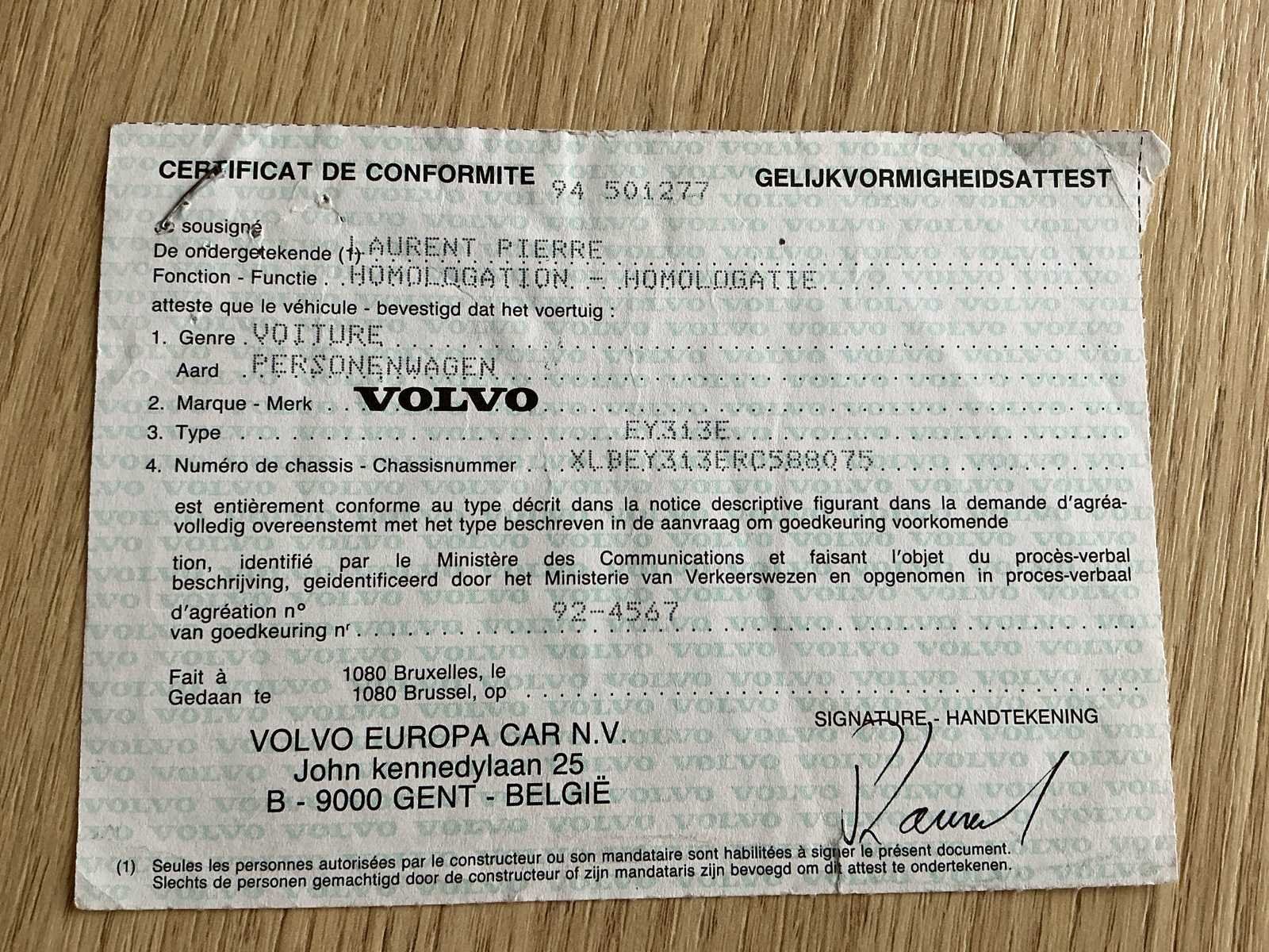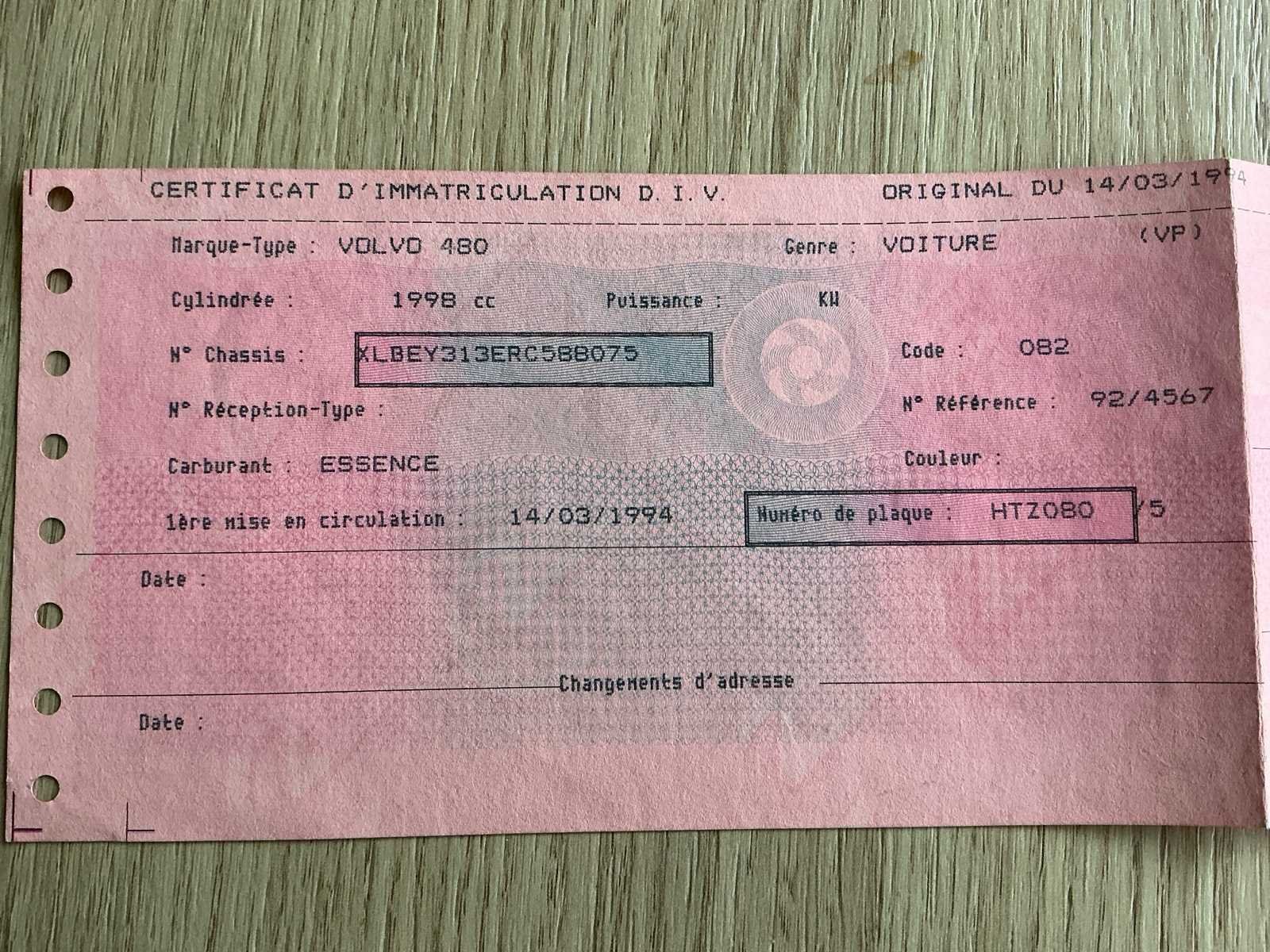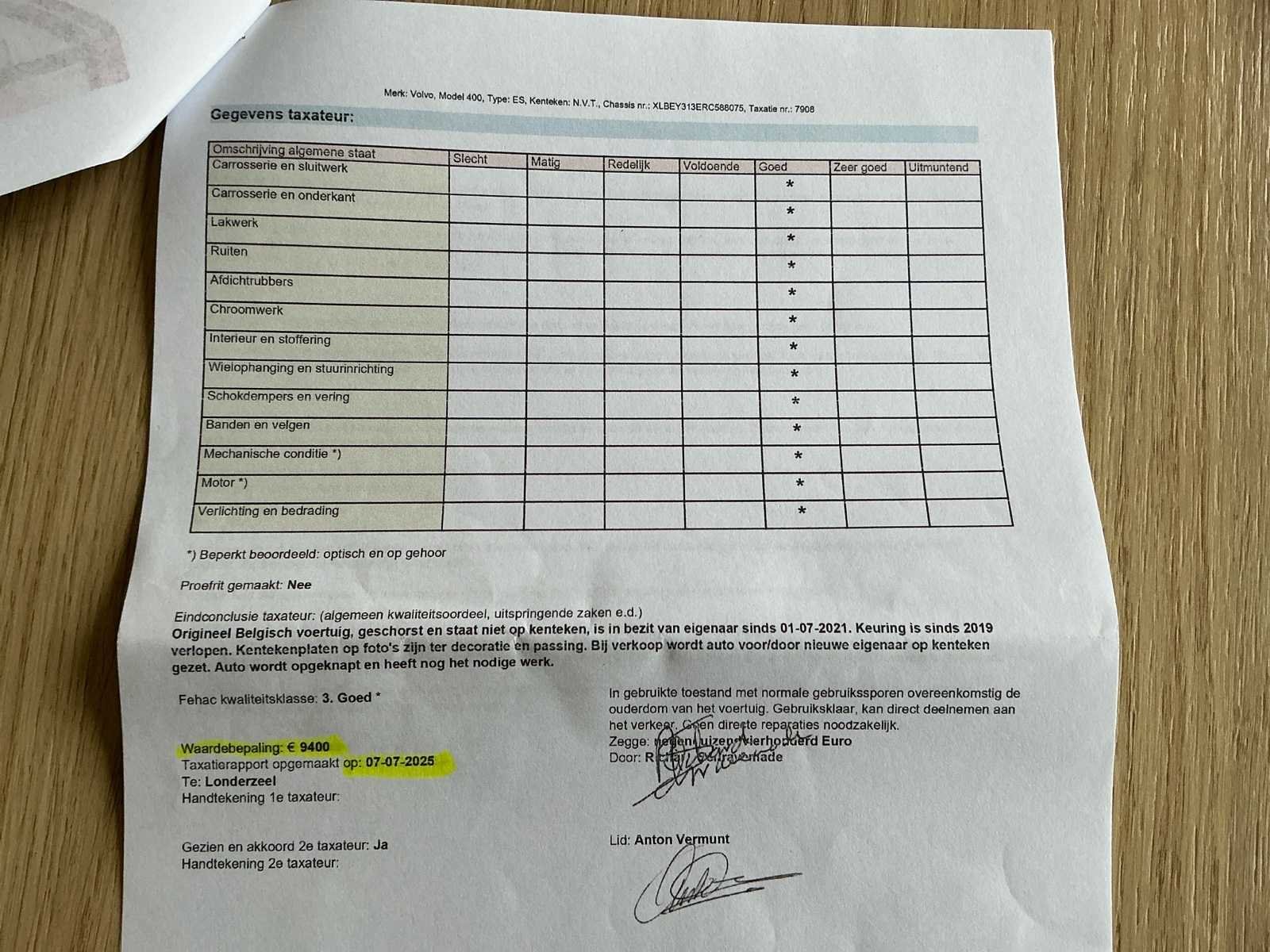 1ste eigenaar. Roestvrij. Herspoten in originele in 2023 (omwille van mat geworden lak). Voorzien van airco en ABS. Voorlaatste productiejaar. 134800 originele kilometers. Start meteen. Motorisch, technisch en qua carrosserie in zeer goede staat. Sensor van kilometerteller moet vervangen worden: sindsdien heeft auto niet meer gereden maar wel wekelijks gestart en warm gedraaid. Steeds binnen gestaan. Wagen is sinds 2018 niet meer ingeschreven maar alle papieren zijn compleet. Taxatierapport opgesteld in 07/2025: €9400. Merk: Volvo Type: 480 ES Bouwjaar: 1994 Chassisnummer: XLBEX313ERC588075 Afgelezen kilometerstand: 134800 Brandstof: Benzine Datum eerste inschrijving: 14/03/1994 Boorddocumenten aanwezig?: true Nationaliteit documenten: België Kentekenpapieren compleet?: true Transmissie: Manueel Vermogen (pk): 110 Vermogen (kW): 81kW Aantal zitplaatsen: 4 Startinformatie: Start, remt en rijdt Kleur: Rood Cilinderinhoud: 1998 Geschatte waarde: 9400 Inschrijvingsbewijs - deel 1 : Ja Inschrijvingsbewijs - deel 2: Ja Gelijkvormigheidsattest aanwezig: true