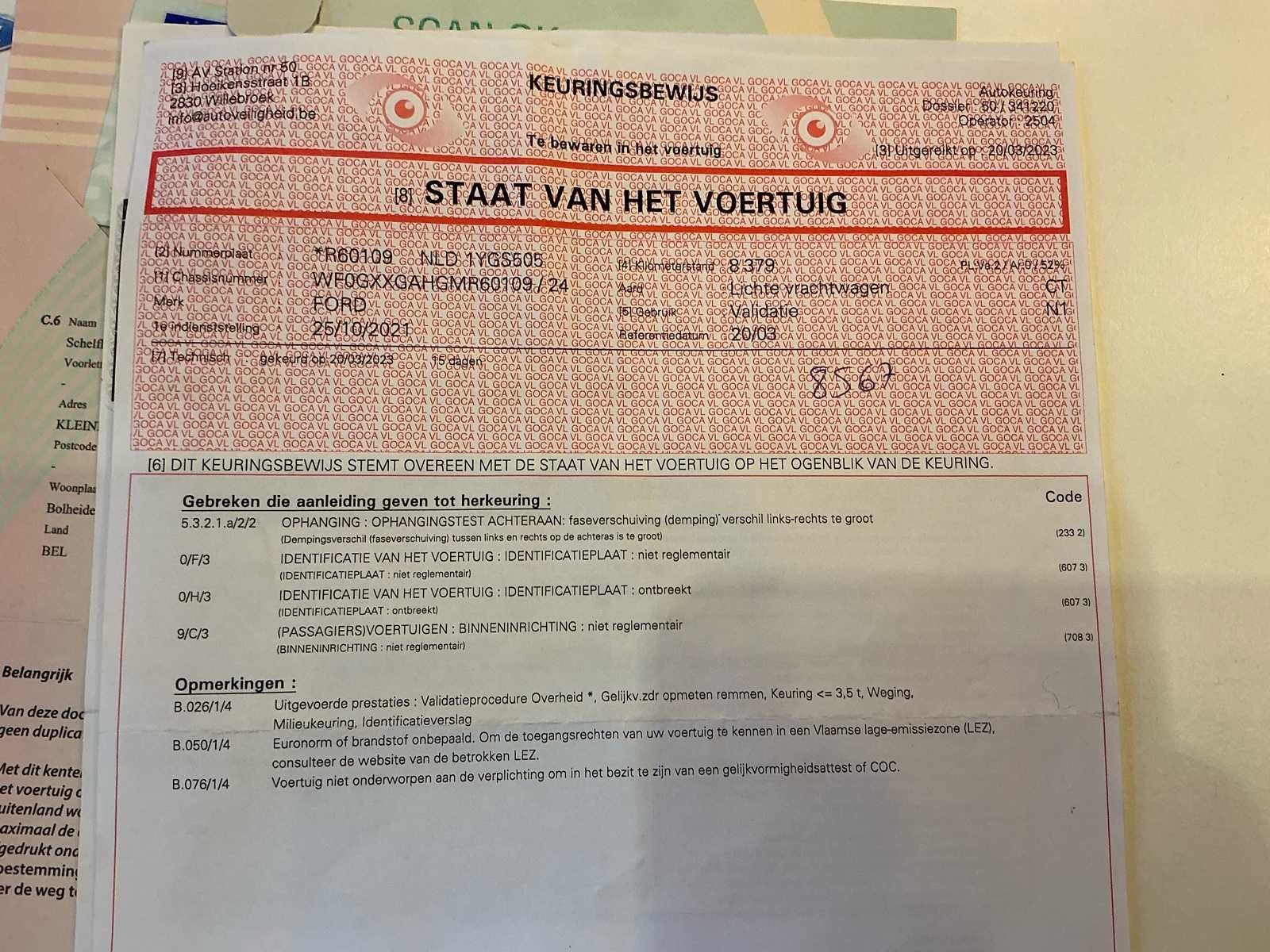 Ford Fiesta lichte vracht uit 2021 met slecht 8587 kilometers op de teller. Geen schade, start, rijdt en remt zoals het hoort. Niet in belgie inschrijfbaar wegens administratieve redenen omwille van ontbrekende EU nummer en niet op lijst van lichte vracht. Wel perfect inschrijfbaar in Nederland, Duitsland en alle andere landen waar er geen administratieve beperking is hierop. Rode keuringskaart omwille van niet inschrijfbaar in België. Probleem met ophanging die vermeld staat op keuringsrapport werd reeds opgelost. Merk: Ford Model: Fiesta Bouwjaar: 2021 Afgelezen kilometerstand: 8587km Cilinderinhoud: 999cc Vermogen (kW): 92kW Brandstof: Benzine Chassisnummer: WF0GXXGAHGMR60109 Datum eerste toelating: 25/10/2021 Datum eerste toelating (NL): 14/01/2023 Aantal zitplaatsen: 2 Kleur: Paars Transmissie: Manueel Emissieklasse: Euro 6 Aantal deuren: 2 Nationaliteit documenten: Nederland Start en rijdt: Ja Vavato voert geen technische keuring uit.: true Inschrijvingsbewijs - deel 1 : Ja Inschrijvingsbewijs - deel 2: Ja
