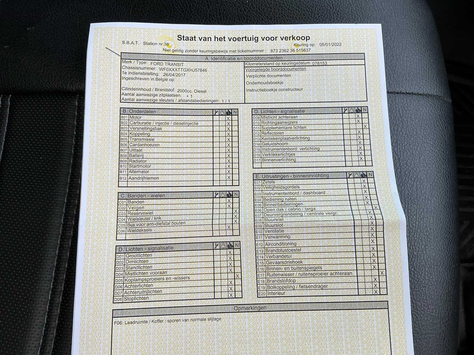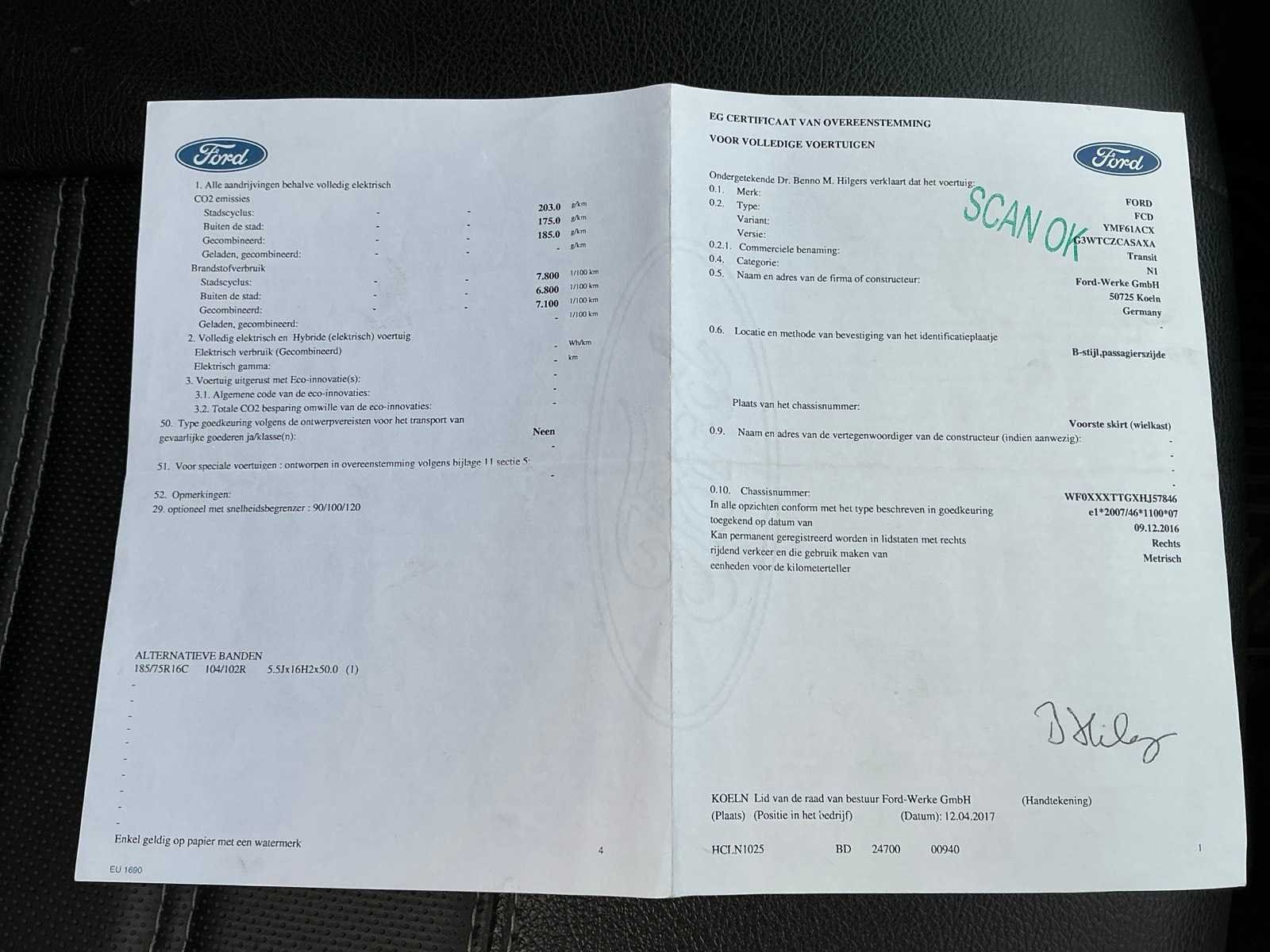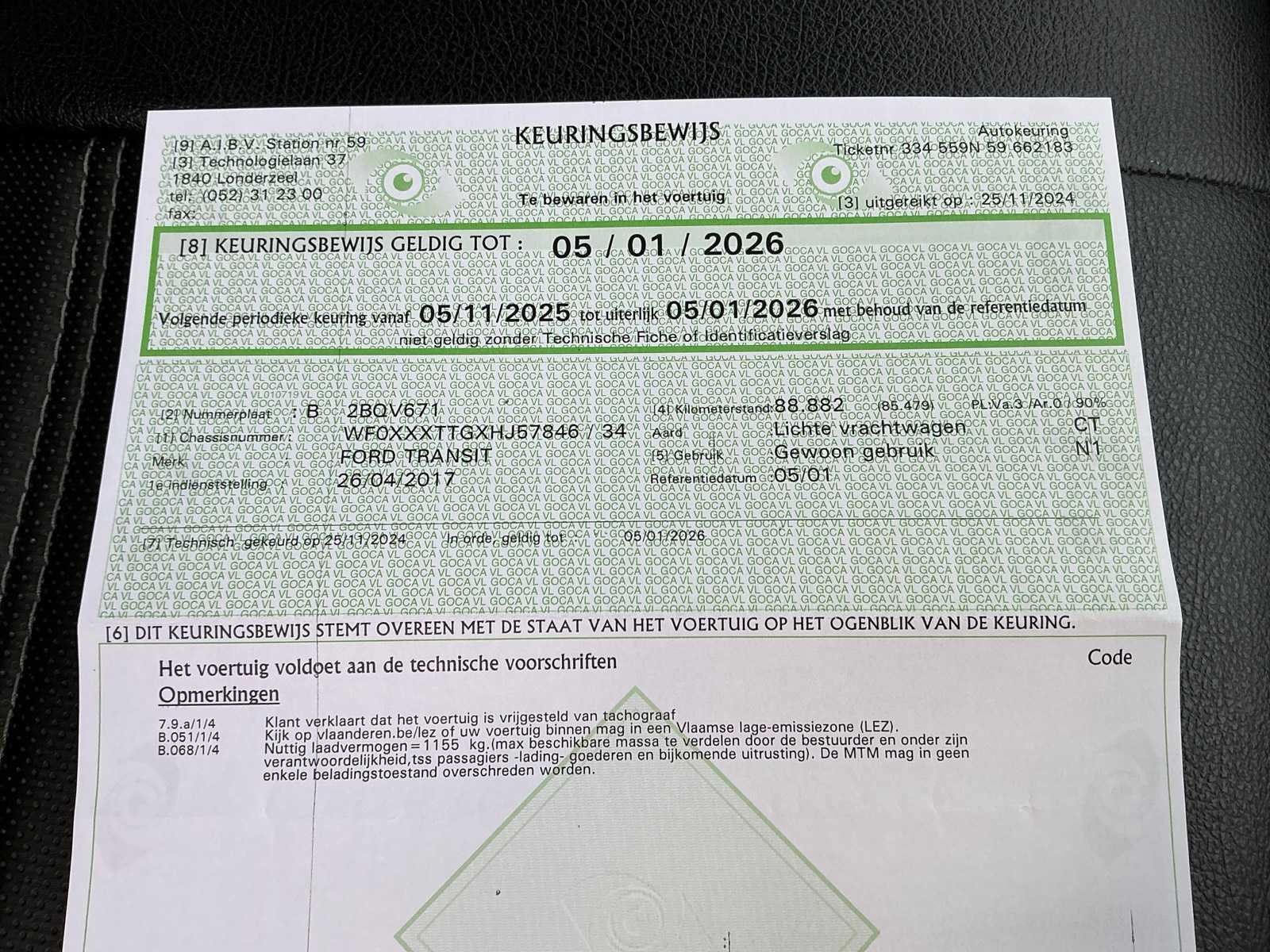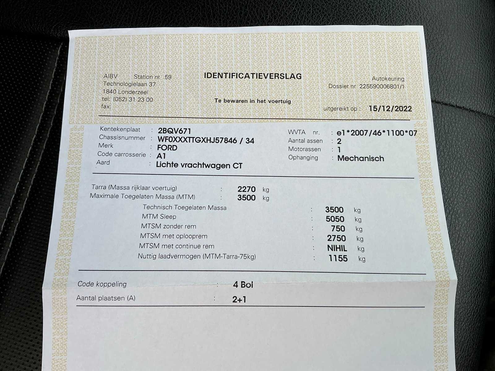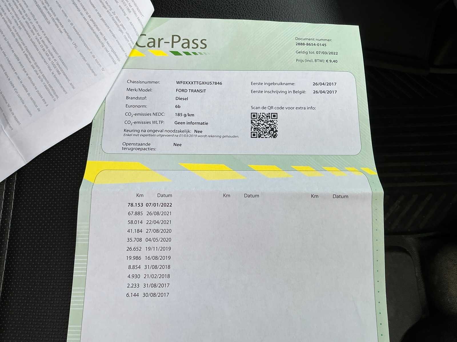 Ford Transit uit 2017 met slechts 91766 kilometers op de teller. In zeer goede werkende staat. Merk: Ford Type: Transit Bouwjaar: 2017 Chassisnummer: WF0XXXTTGXHJ57846 Afgelezen kilometerstand: 91766km Cilinderinhoud: 1995cc Vermogen (kW): 96kW Brandstof: diesel Datum eerste inschrijving: 26/04/2017 Transmissie: Manueel Aantal zitplaatsen: 3 Nationaliteit documenten: België Emissieklasse: Euro 6b Kentekenpapieren compleet?: true