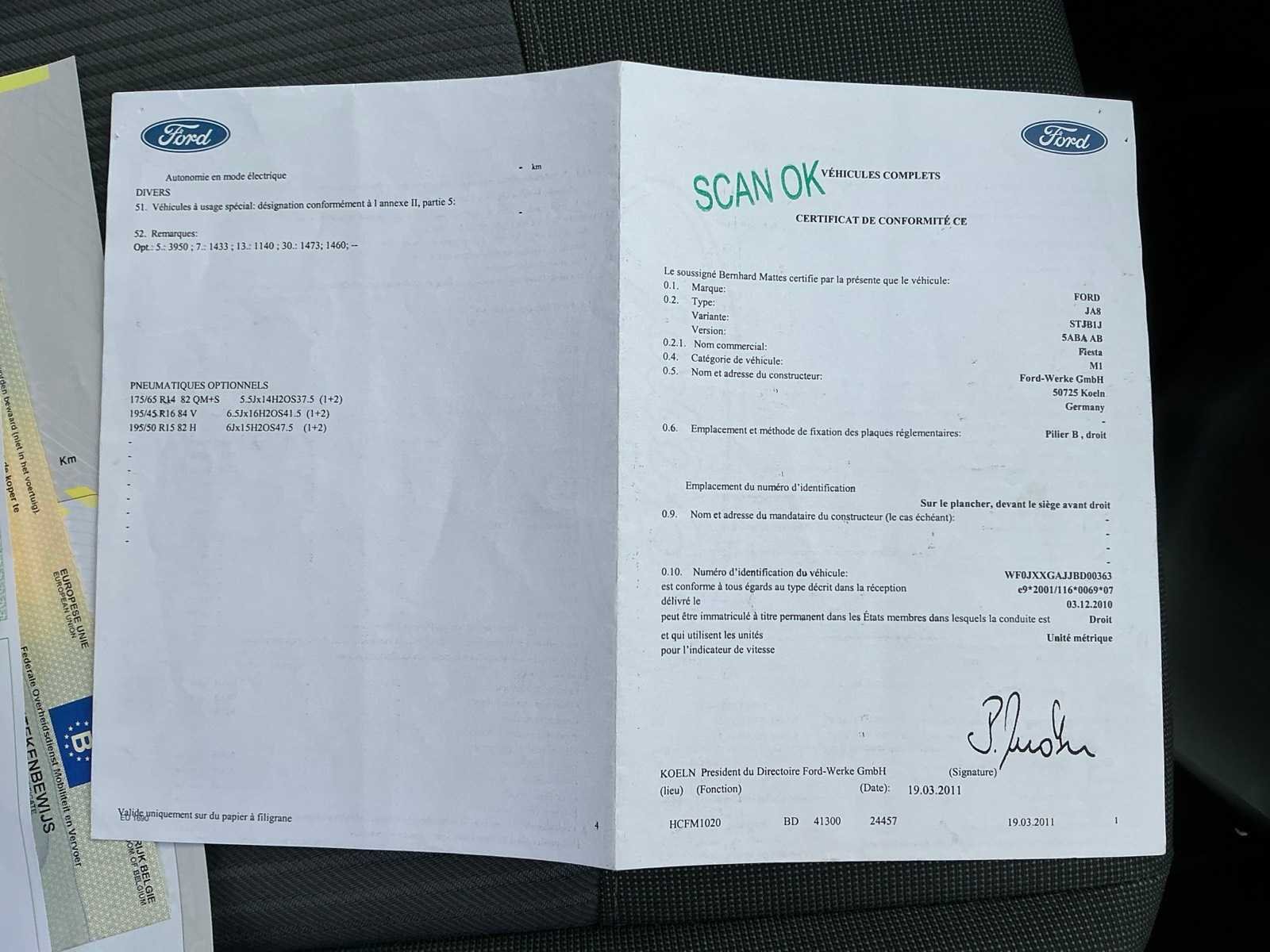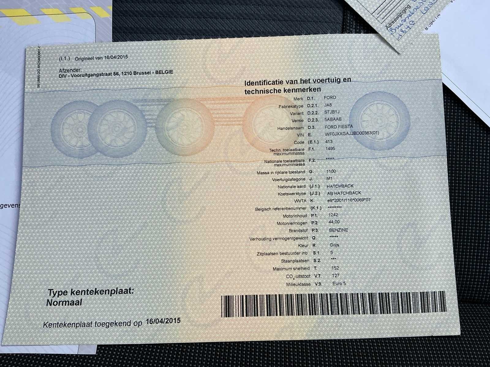 Ford Fiesta uit 2011 met 209182 kilometers op de teller. Lichte carrosserieschade rondom. In werkende staat. Merk: Ford Model: Fiesta Bouwjaar: 2011 Afgelezen kilometerstand: 209182km Cilinderinhoud: 1242cc Vermogen (kW): 44kW Brandstof: benzine Chassisnummer: WF0JXXGAJJBD00363 Datum eerste toelating: 01/06/2011 Aantal zitplaatsen: 5 Kleur: Grijs Transmissie: Manueel Emissieklasse: Euro 5 Nationaliteit documenten: België Gelijkvormigheidsattest aanwezig: true Start en rijdt: Ja Vavato voert geen technische keuring uit.: true Inschrijvingsbewijs - deel 1 : Aanwezig Inschrijvingsbewijs - deel 2: Aanwezig