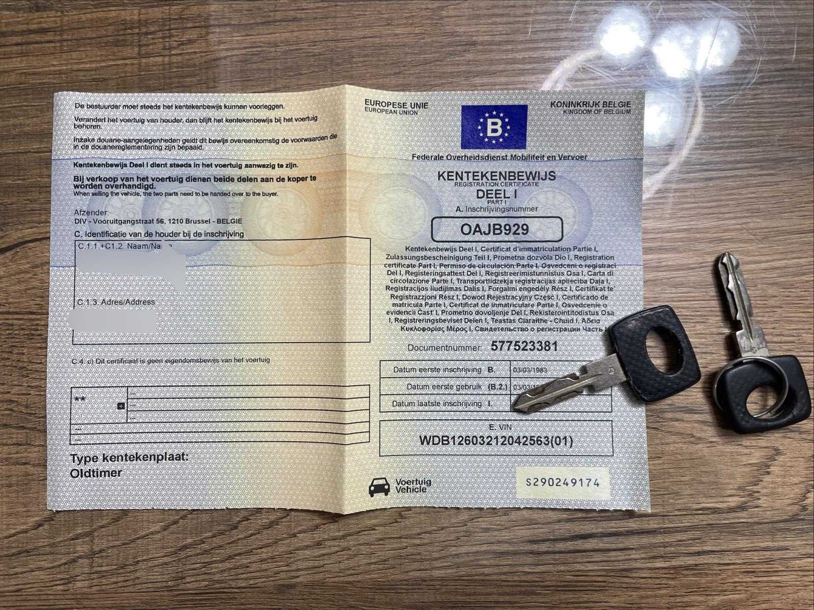 Merk: Mercedes- Benz Type: V8 Chassisnummer: WDB12603212042563 Afgelezen kilometerstand: 381309 Model: 380 SE Brandstof: Benzine Datum eerste toelating: 03/03/1983 Nationaliteit documenten: Belgische Carrosserie: Sedan Aandrijving: RWD Transmissie: Automaat Vermogen (pk): 204 Vermogen (kW): 150kW Emissieklasse: NVT Aantal deuren: 5 Aantal zitplaatsen: 5 Aantal sleutels: 2 Kleur: Blauw Cilinderinhoud: 3839 Aantal cilinders: 8 Ledig gewicht: 1750 Inschrijvingsbewijs - deel 1 : Aanwezig Inschrijvingsbewijs - deel 2: Aanwezig Gelijkvormigheidsattest aanwezig: true