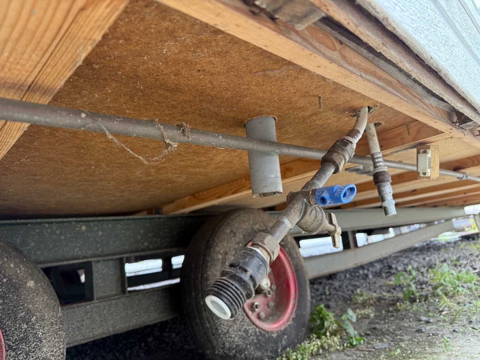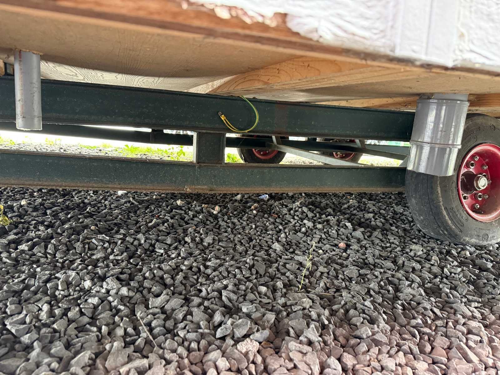 Aansluiting gas, elektriciteit, water en afvoer. Verrijdbaar met normale aanhanger koppeling. Lengte: 1000cm Breedte: 400cm