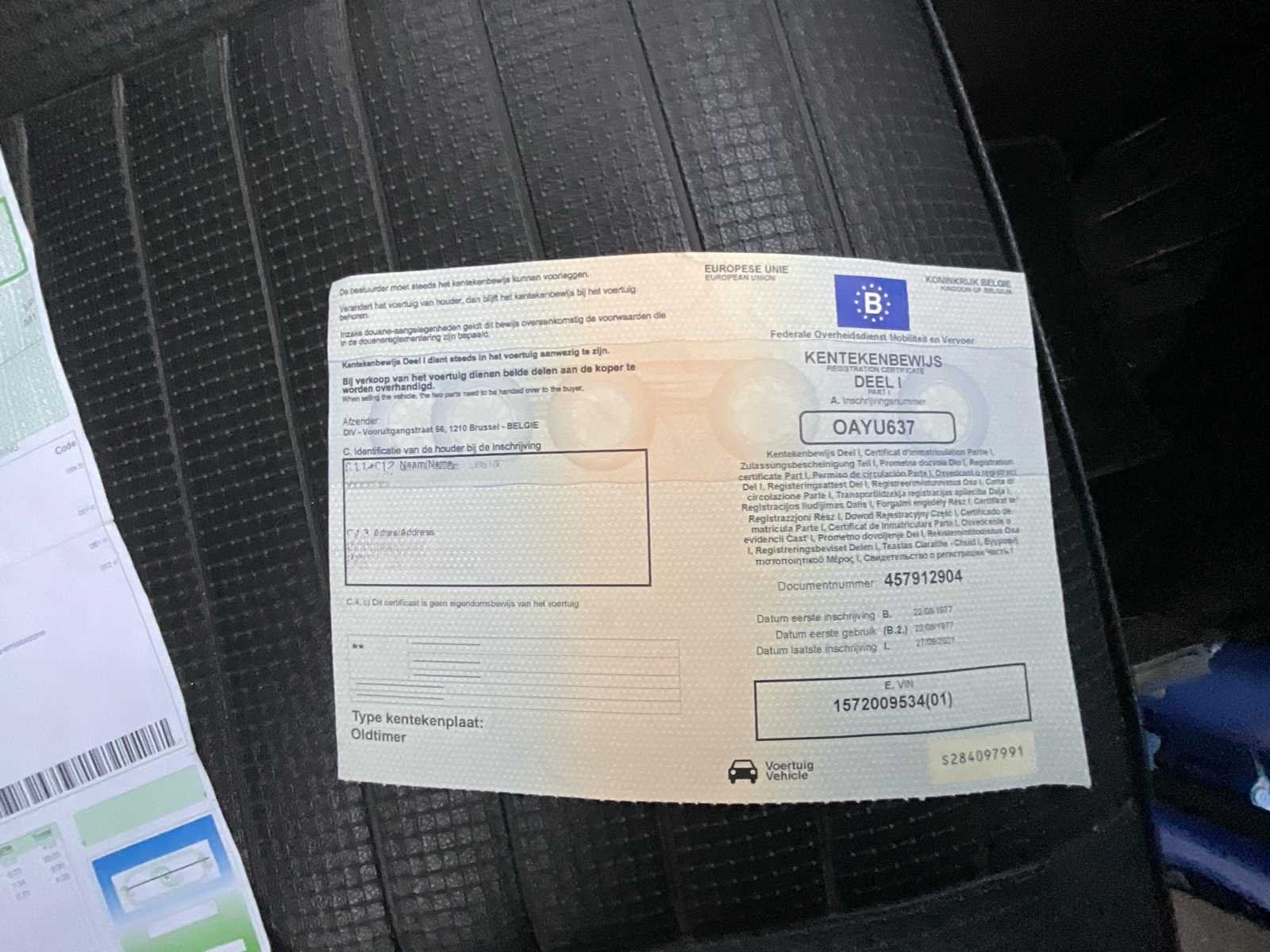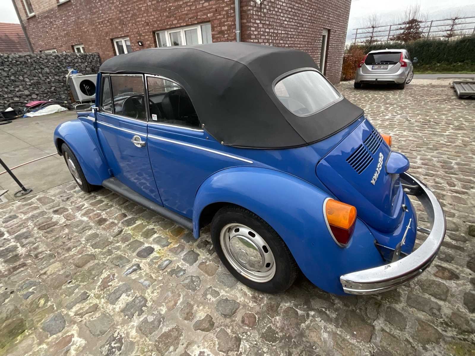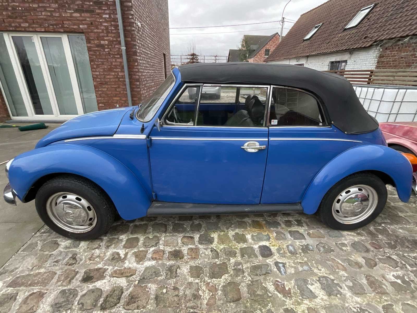 Volkswagen Kever 1303 Cabriolet van Belgische oorsprong, Karmann-model, uitgerust met de 1600 cc motor. Het is een authentieke cabriolet uit 1977, herkenbaar aan het specifieke dashboard, de koepelvormige voorruit en de brede achterlichten. De auto is compleet, rijdt en is uitgerust met een softtop in goede visuele staat. Merk: Volkswagen Model: 1303 Cabriolet (Karmann) Jaar: 1977 Chassisnummer: 1572009534 Cilinderinhoud: 1600 cc Vermogen: 37 kW (50 pk) Brandstof: Benzine Registratie: Oldtimer (BE) Documenten: Belgische registratieakte + origineel D'Ieteren-conformiteitscertificaat (1977) Chassisnummer: 1572009534 Merk: Volkswagen Model: Coccinelle Type: 1303 Cabriolet Afgelezen kilometerstand: 42590km Brandstof: benzine Datum eerste inschrijving: 1977 Nationaliteit documenten: Belg Carrosserie: Cabriolet Aandrijving: Links Transmissie: Handmatig Vermogen (pk): 50 Vermogen (kW): 37 Aantal deuren: 2 Aantal zitplaatsen: 5 Stuurwiel: Links Aantal sleutels: 2 Kleur: Blauw Cilinderinhoud: 1600 Aantal cilinders: 4