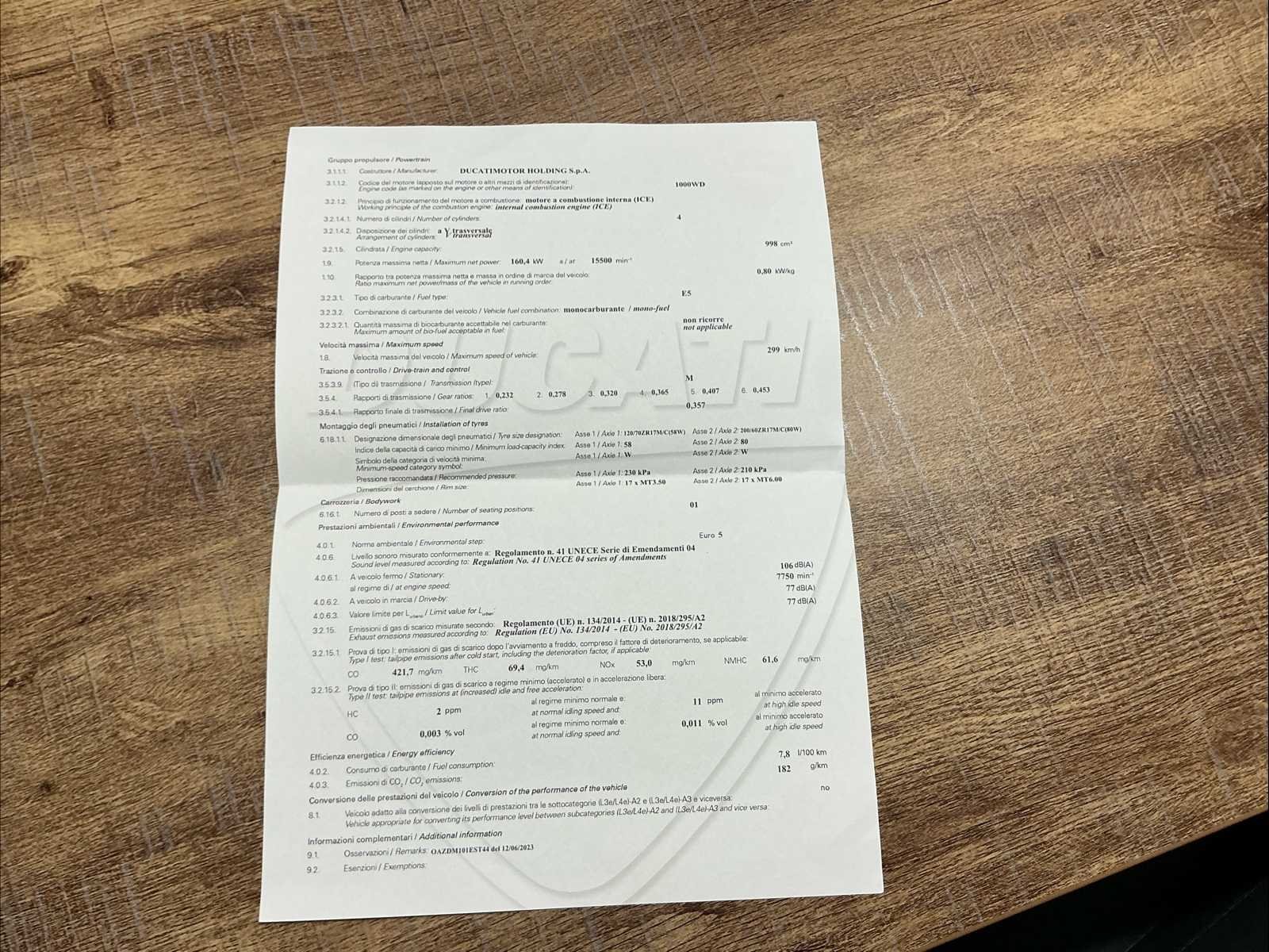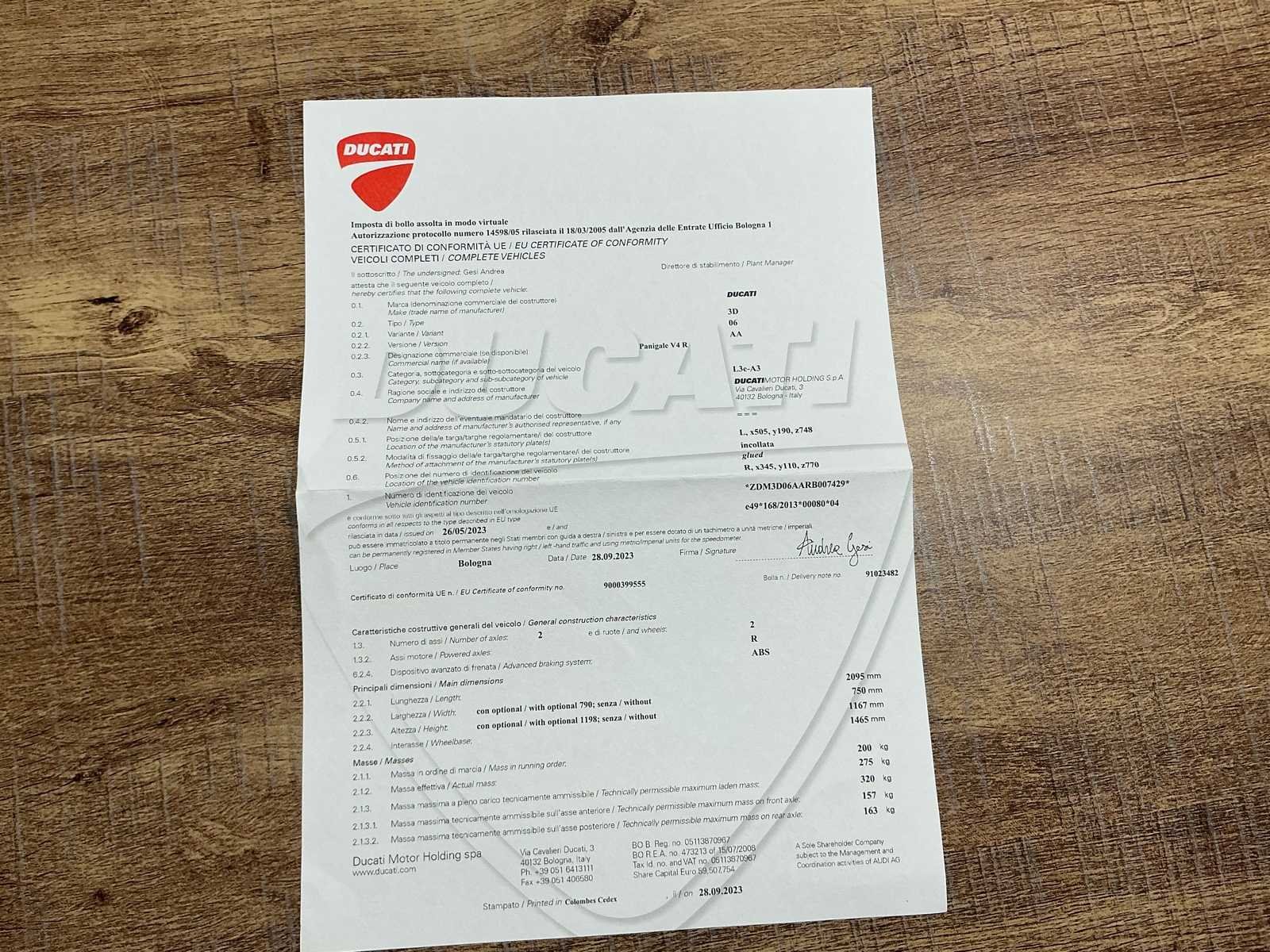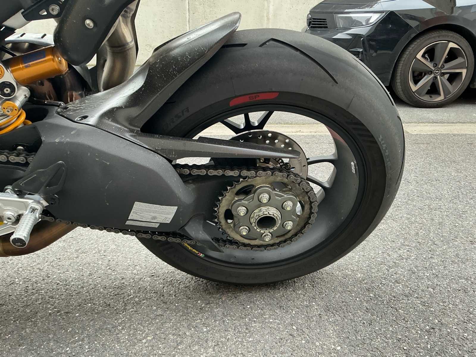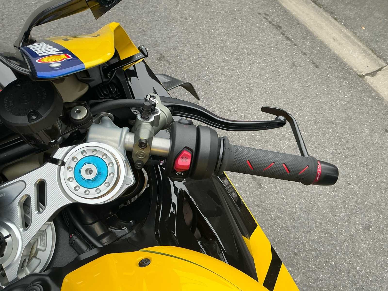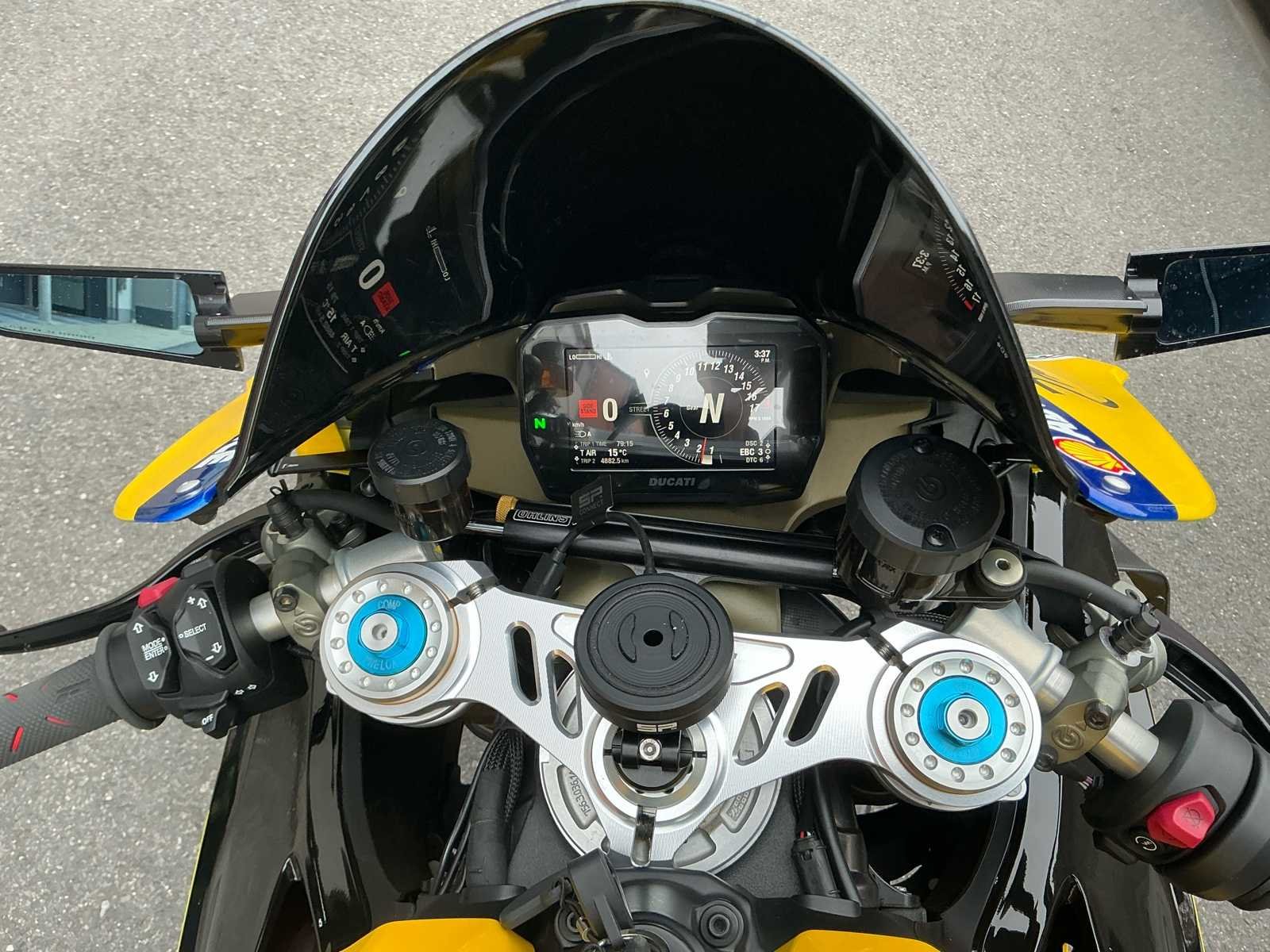 Orginele Kuipen ook aanwezig. De Ducati Panigale V4 R is het ultieme circuitgerichte model binnen de Panigale-reeks – rechtstreeks afgeleid van Ducati’s WSBK-racemotor. Met een 998 cc Desmosedici Stradale R-motor levert deze machine 218 pk in standaardvorm, en tot 240 pk met de optionele racing-uitlaat. De V4 R is gebouwd voor pure prestaties: een lichter motorblok, titanium onderdelen, en een geavanceerde aerodynamische kuip met carbon-winglets. Dankzij het lage gewicht (167 kg droog) en het Öhlins NPX25/30-onderstel, behoort de V4 R tot de absolute top van de hedendaagse superbikes. Merk: Ducati Model: Panigale V4 R Brandstof: Benzine Chassisnummer: ZDM3D06AARB007429 Cilinderinhoud: 998cc Datum eerste toelating: 28/09/2023 Gewicht: 200kg Vermogen (kW): 160kW Kleur: Geel Afgelezen kilometerstand: 6191km Transmissie: Manueel Nationaliteit documenten: Belgisch