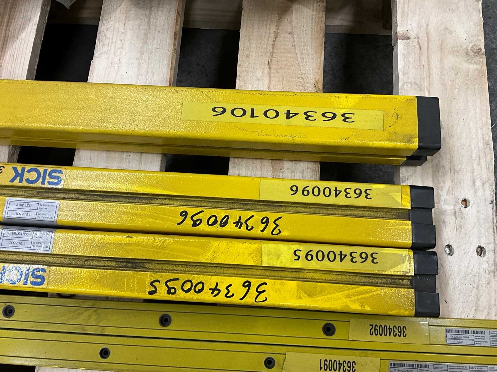 Bestaande uit lichte al zender M20S-091A3A12 + ontvanger M20E+ 2x lichtgordijn LGTE +LGTS-90-351 + ontvanger 450MMFGSE 450-21+ zender 450MM FGSS 450-21 + OPT VEILIGHEIDSBAR 8 straalzender Merk: Sick