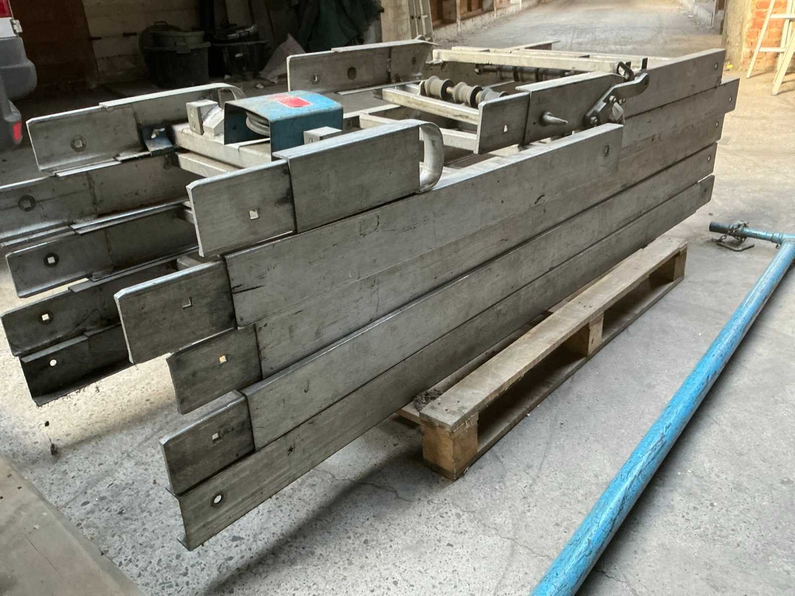 Bestaande uit 6 elementen met lengte 215cm en 2 elementen met lengte 76cm + motor. Liggende op 2x pallet Merk: Steinweg
