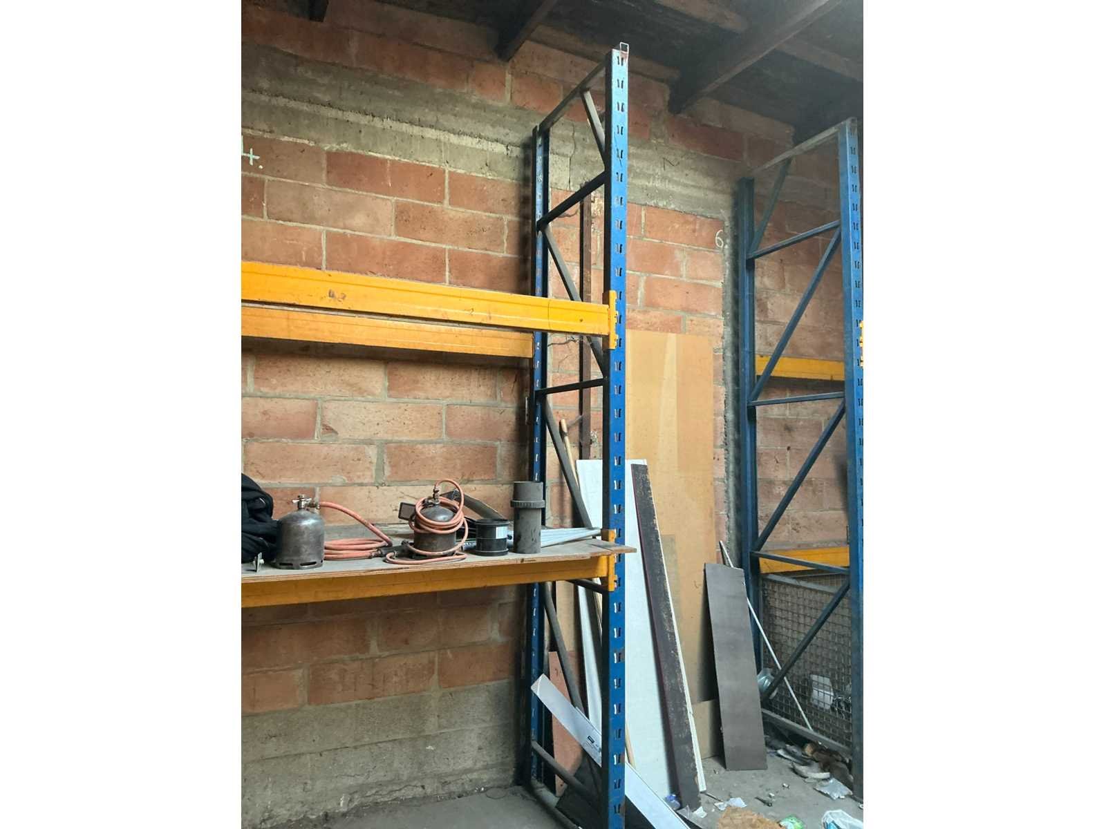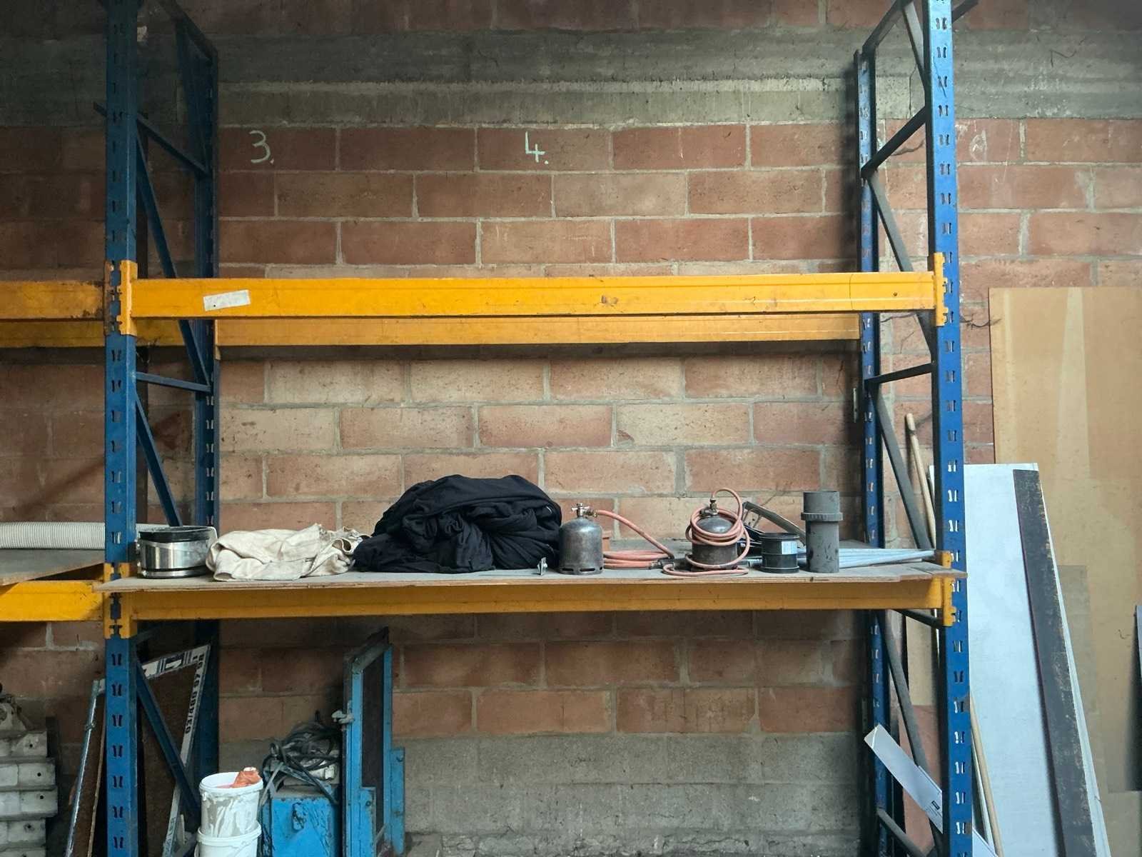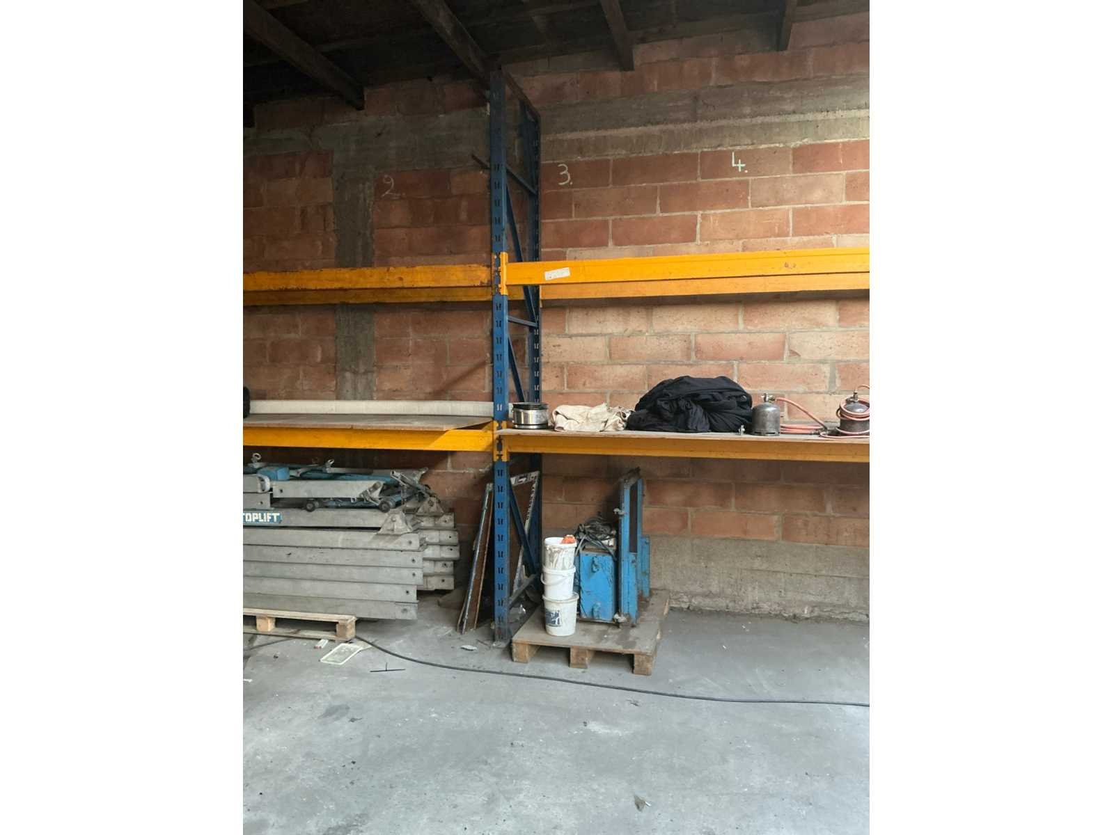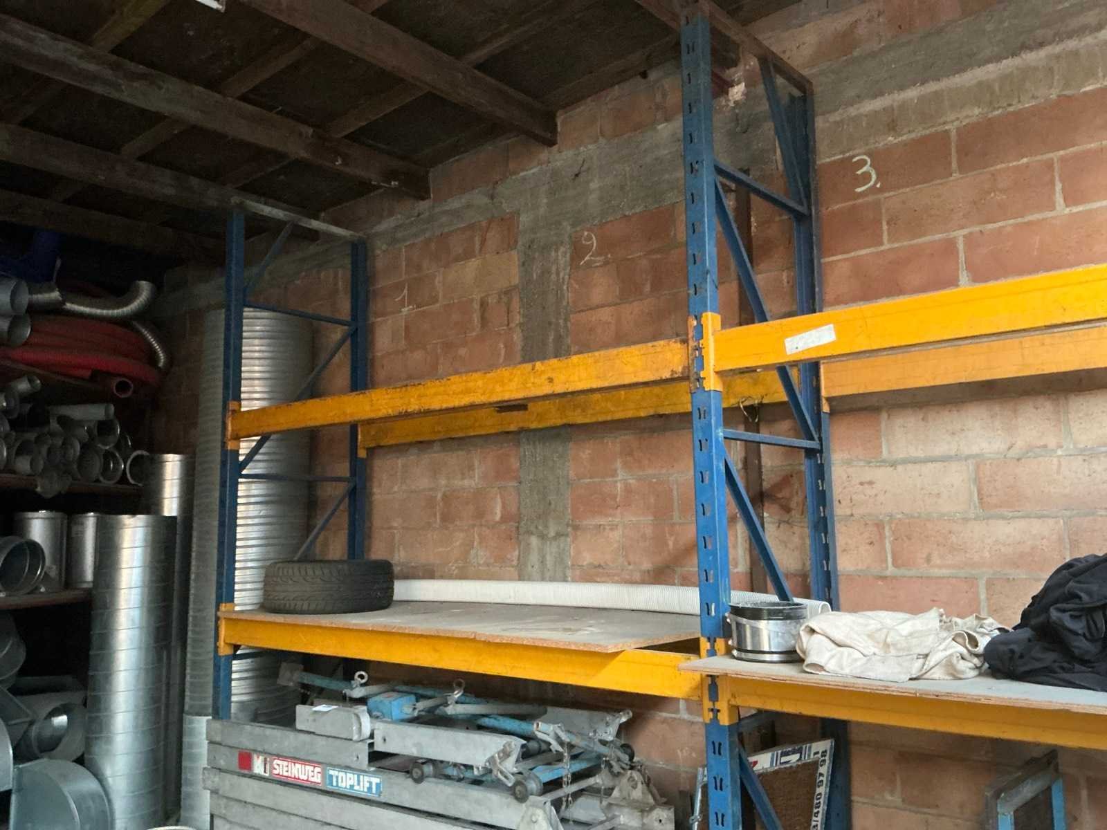Afhaling op afspraak na afgiftedatum. Zonder inhoud. Door koper te demonteren. Aantal staanders: 3 Aantal liggers: 8 Lengte: 566cm Breedte: 85cm Hoogte: 340cm