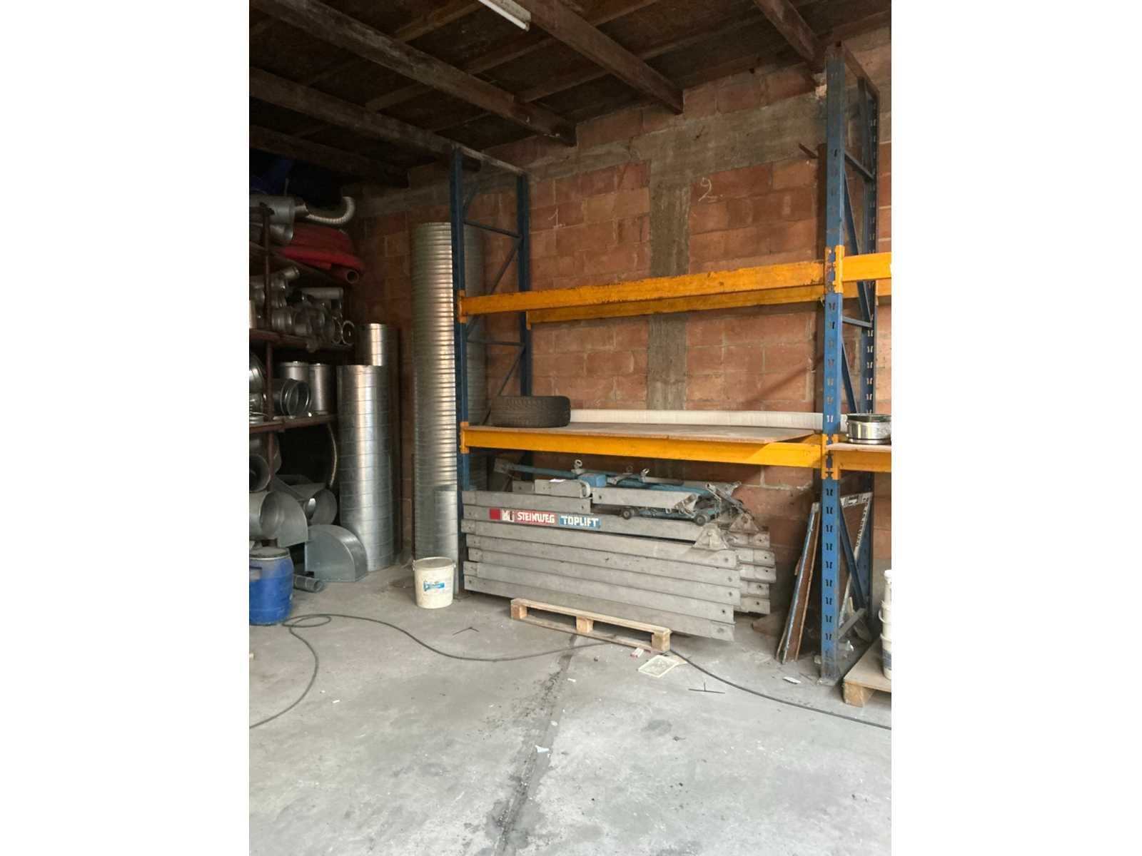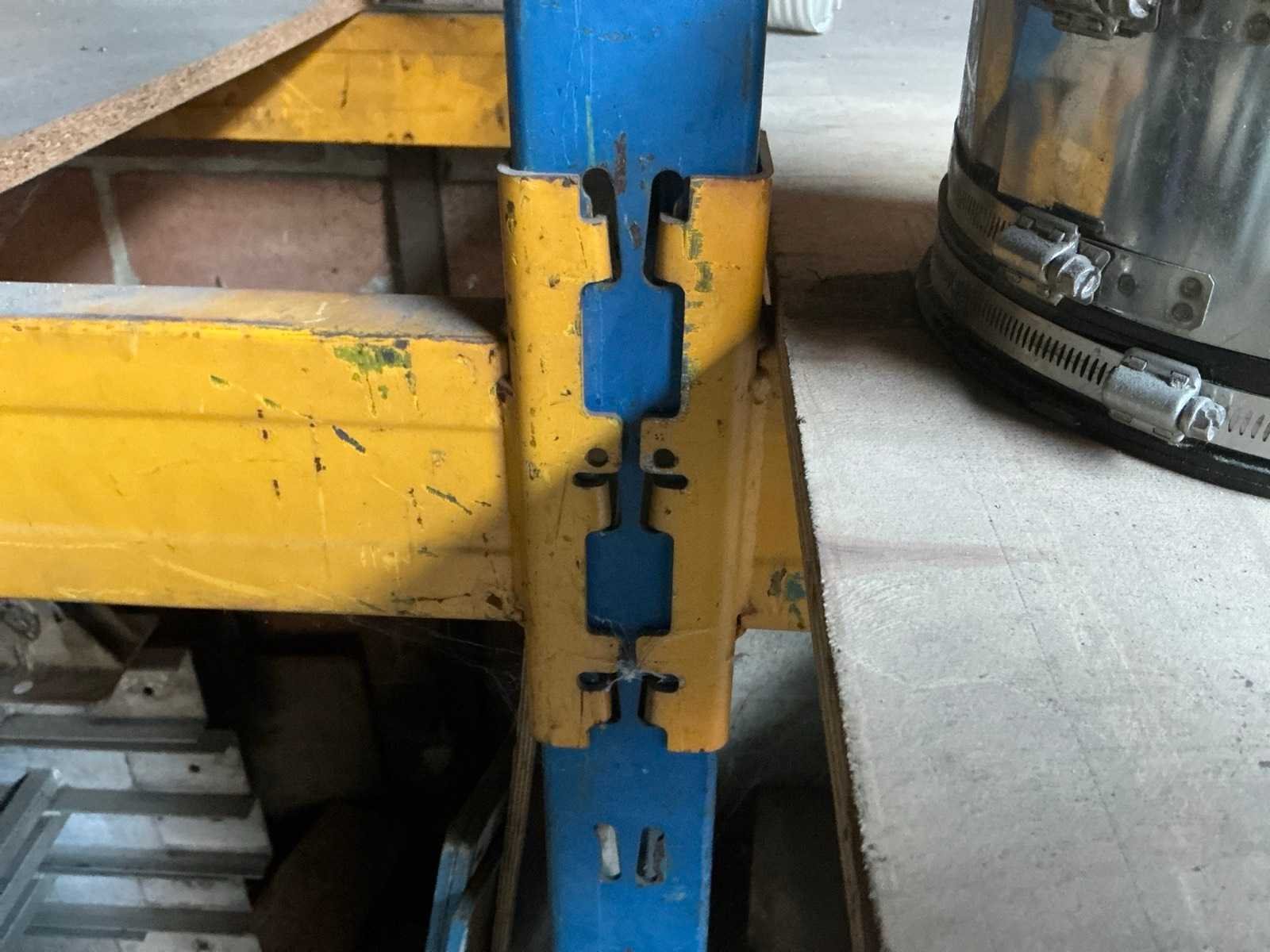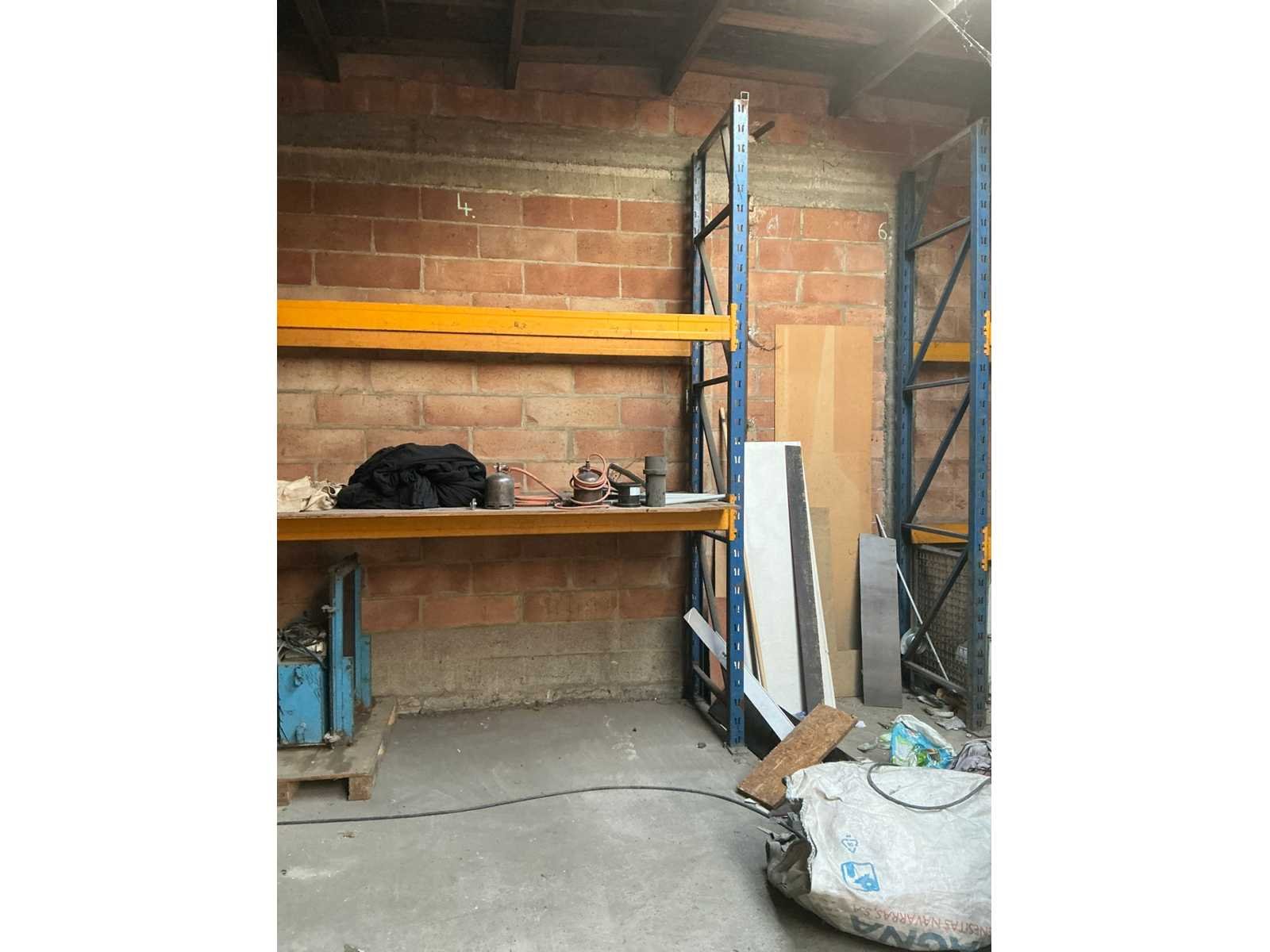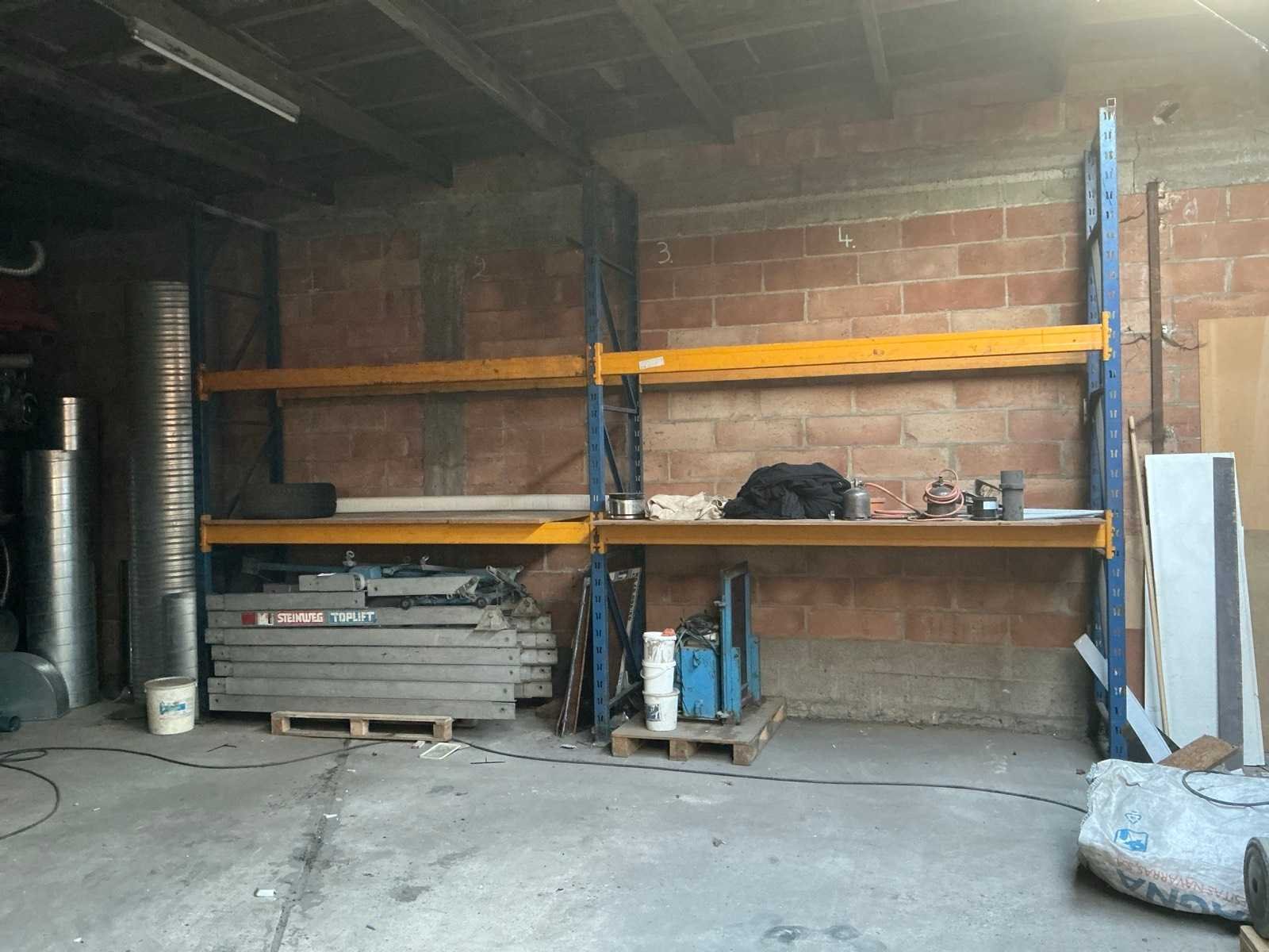 Afhaling op afspraak na afgiftedatum. Zonder inhoud. Door koper te demonteren. Aantal staanders: 3 Aantal liggers: 8 Lengte: 566cm Breedte: 85cm Hoogte: 340cm