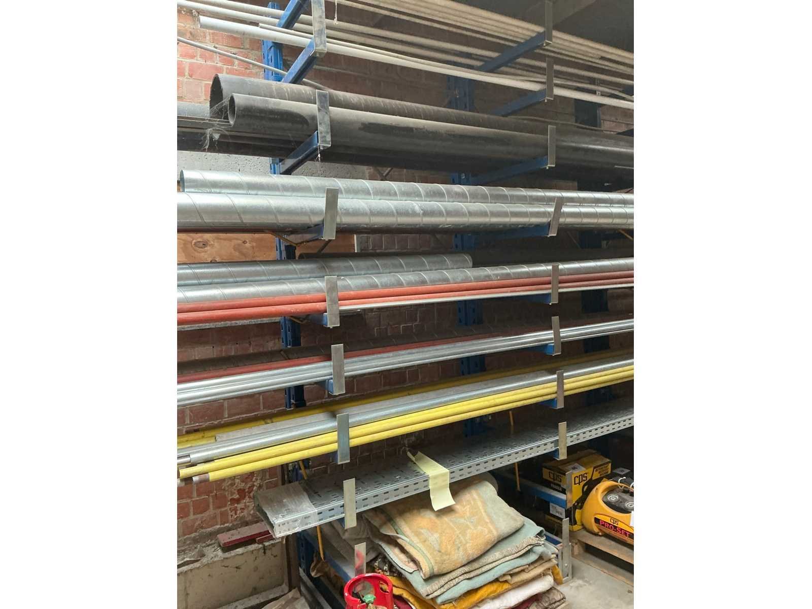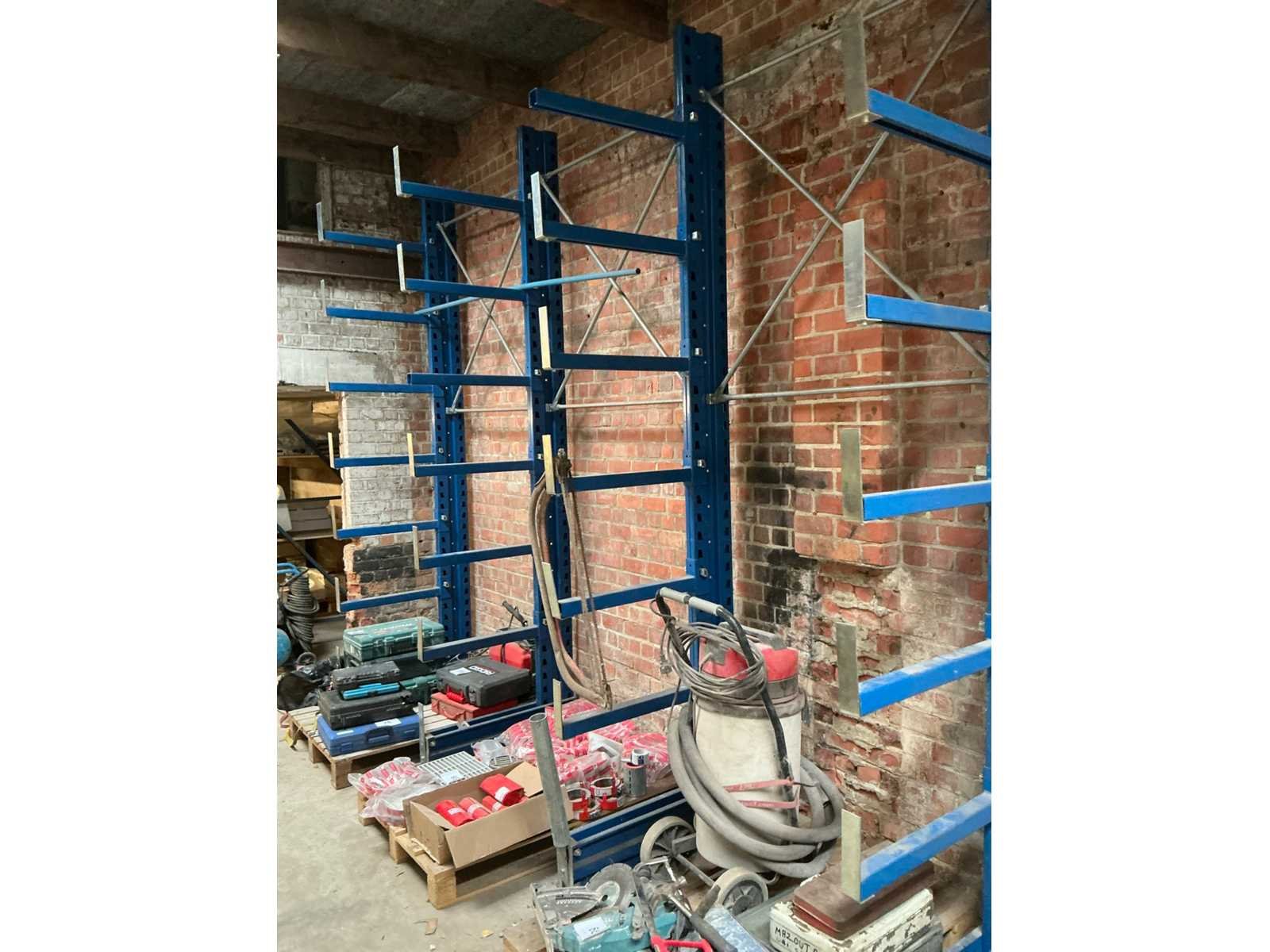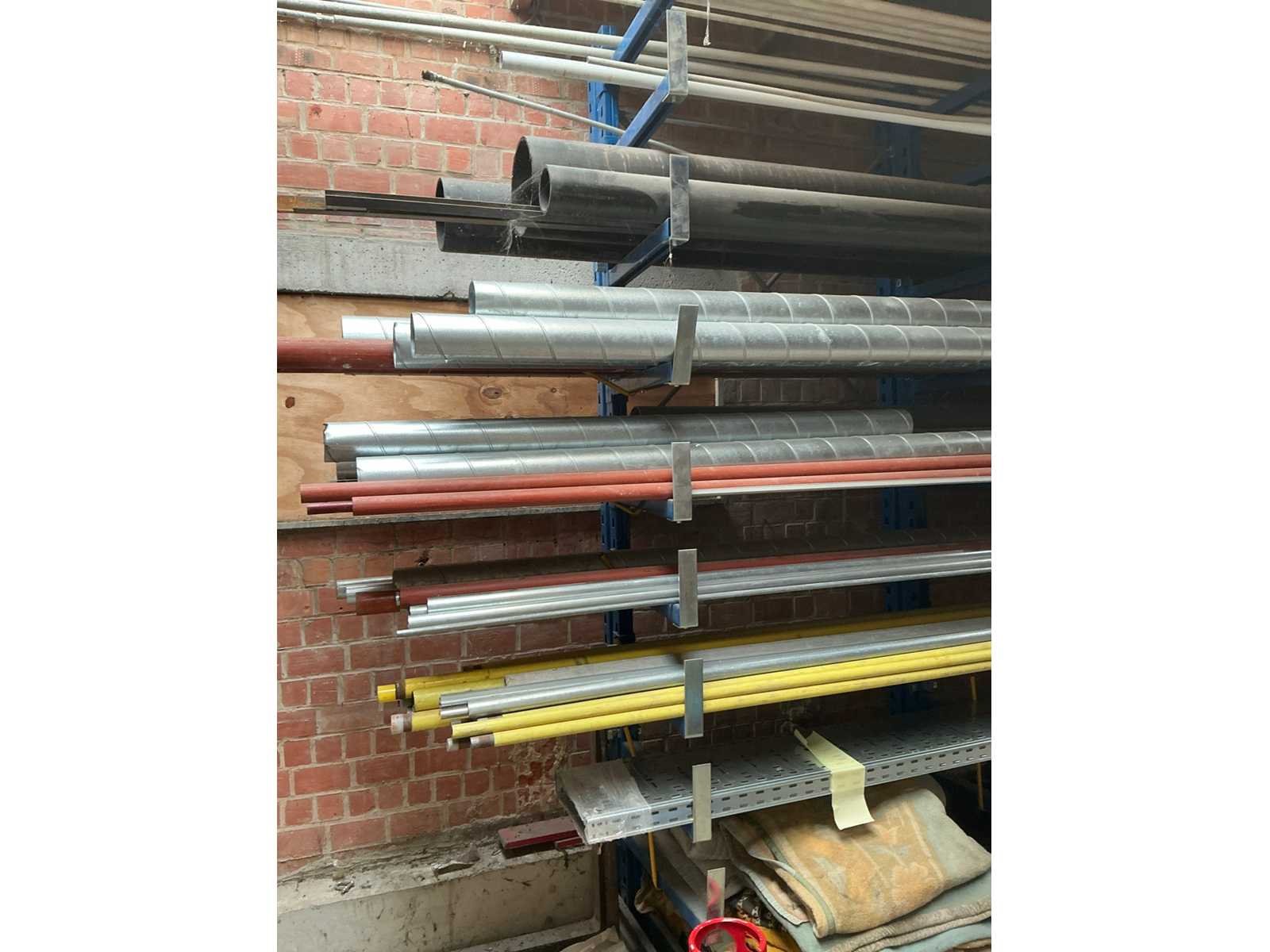 Waaronder 1x voorzien van 5x staander en 45x draagarm met totale afmetingen ca. 490 x 82 x 310cm en 1x voorzien van 4x staander en 24x draagarm met totale afmetingen ca. 365 x 82 x 310cm. Allen met inliggende (geen paletten) inhoud waaronder voornamelijk diverse buizen. Door koper te demonteren. Afhaling op afspraak na afgiftedatum.