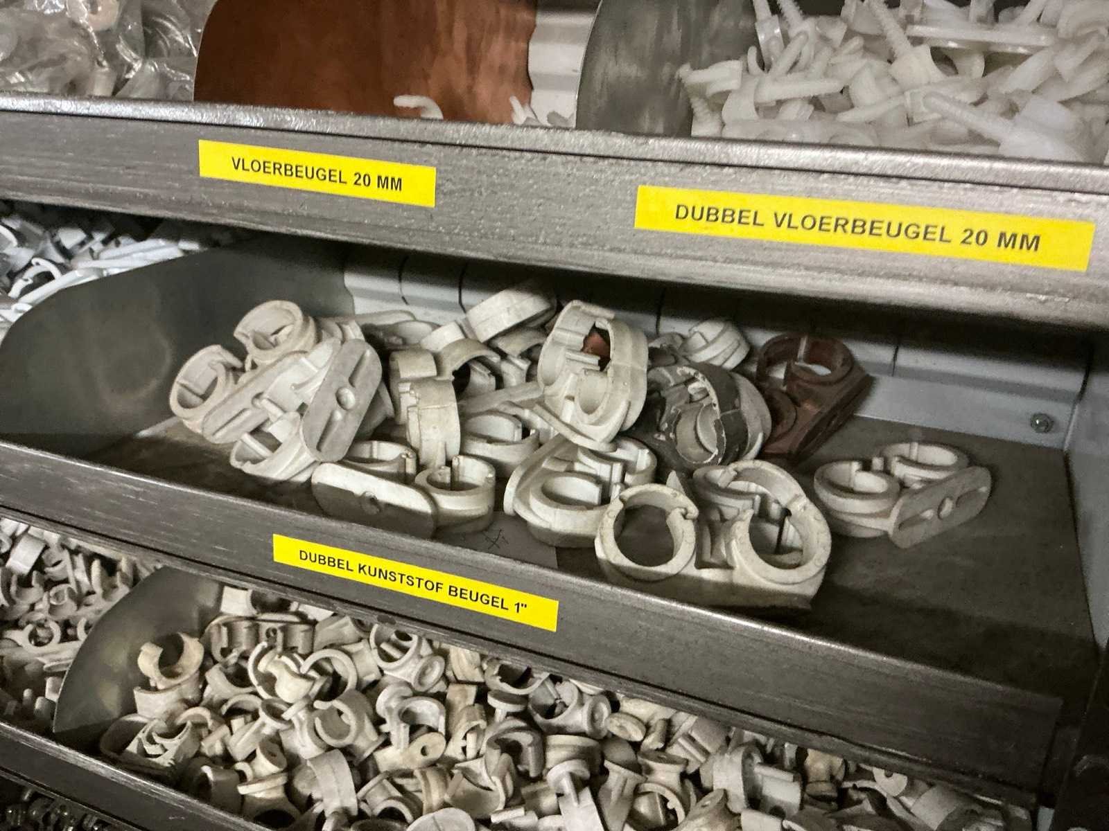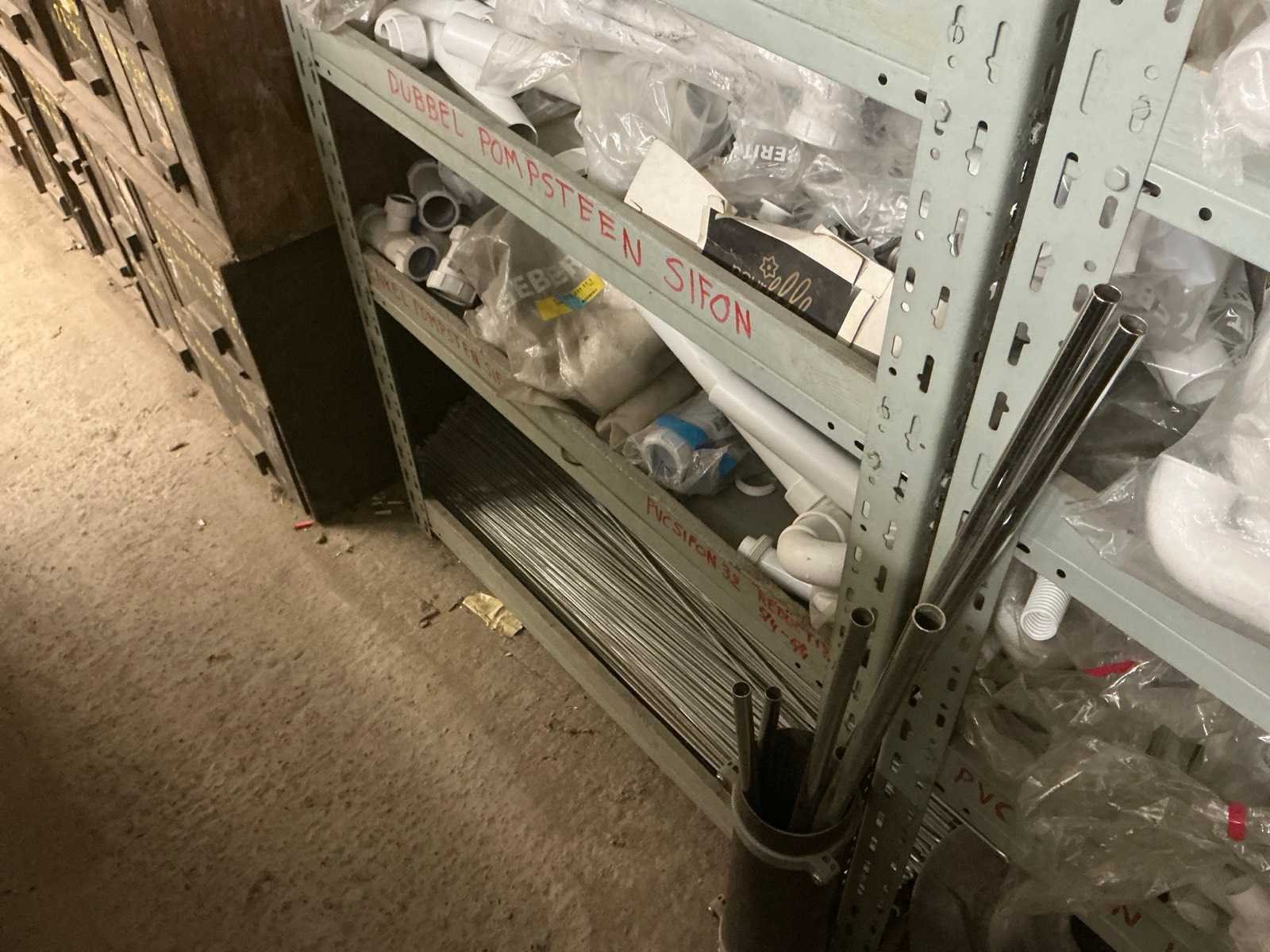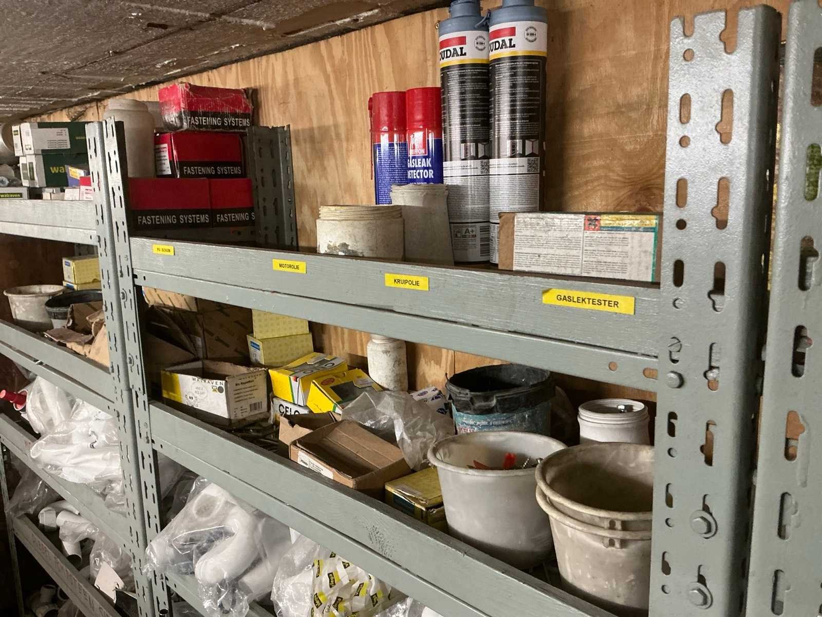 Met inhoud waaronder diverse verwarming- en sanitaire toebehoren. Door koper te demonteren. Totale afmeting L: 900mm Totale afmeting Breedte: 300mm Totale afmeting Hoogte: 1740mm