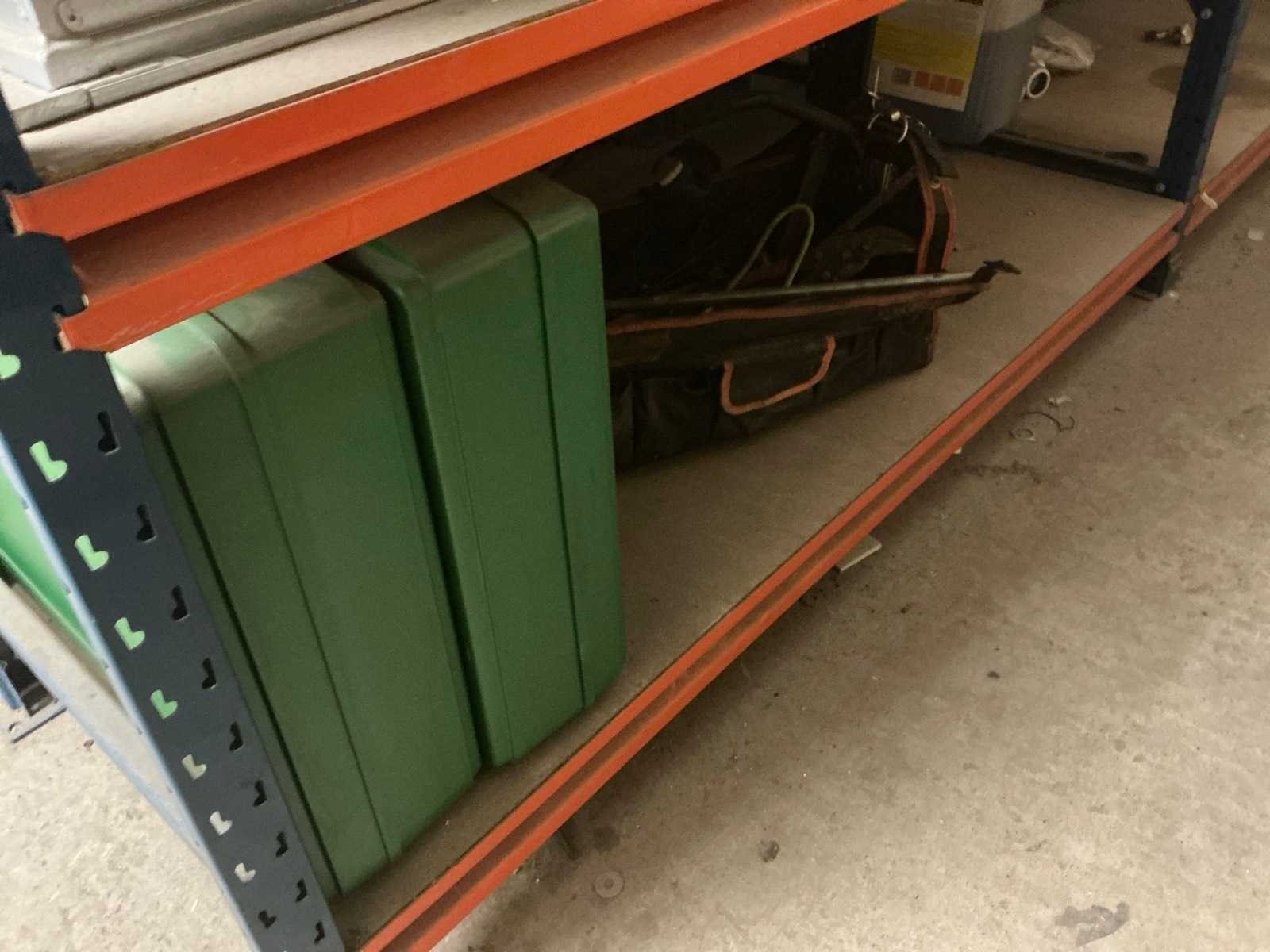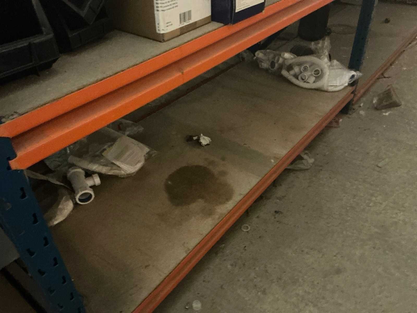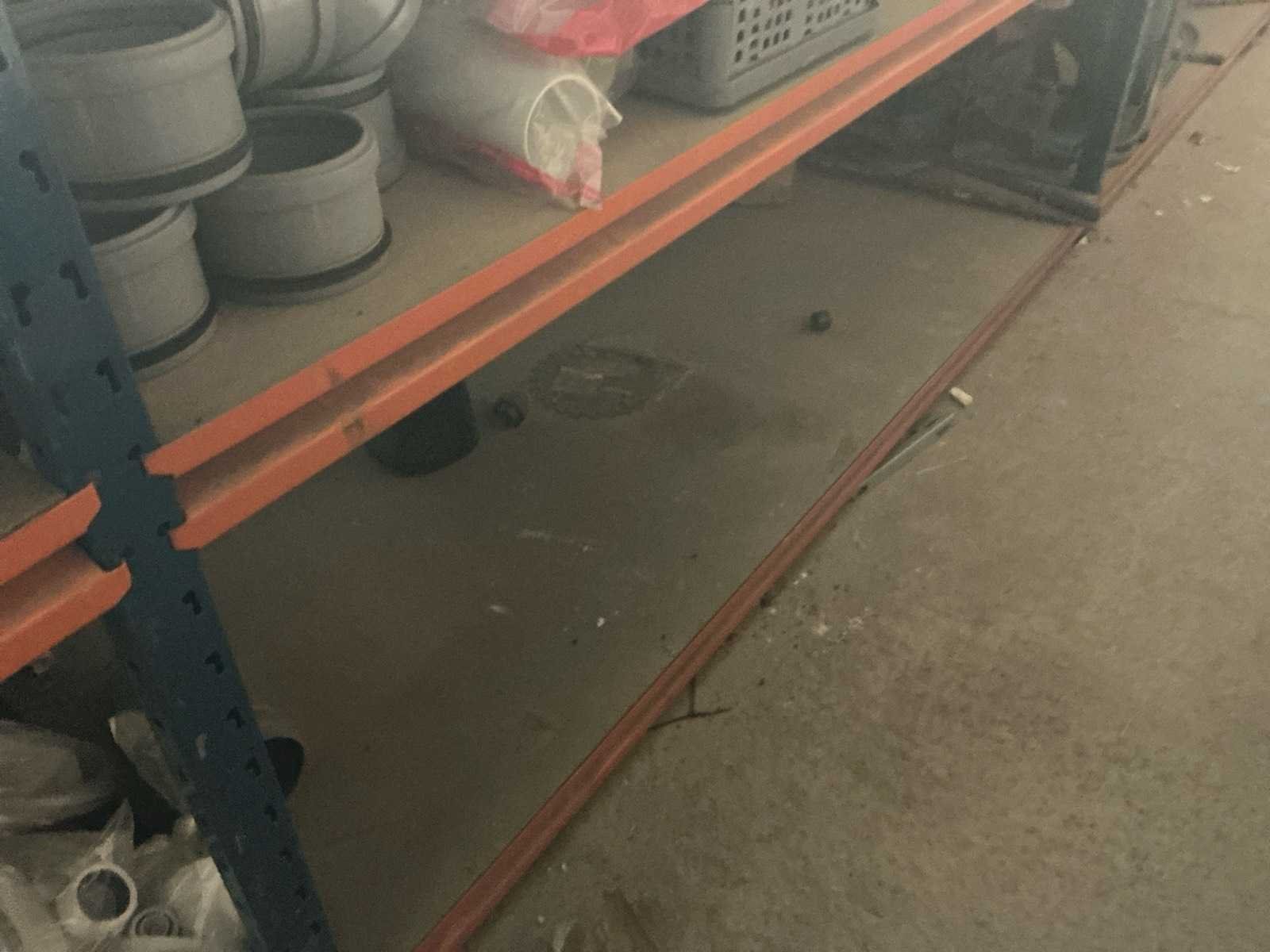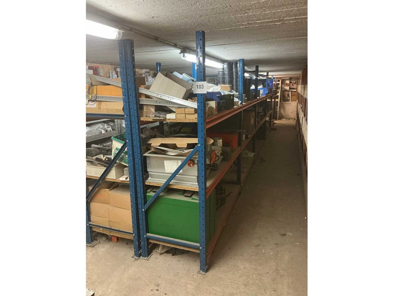 Met inhoud (zie foto’s ter specificatie). Door koper te demonteren. Aantal staanders: 6 Aantal liggers: 28 Totale afmeting L: 940cm Totale afmeting Breedte: 60cm Totale afmeting Hoogte: 180cm Lengte: 470cm Breedte: 60cm Hoogte: 215cm