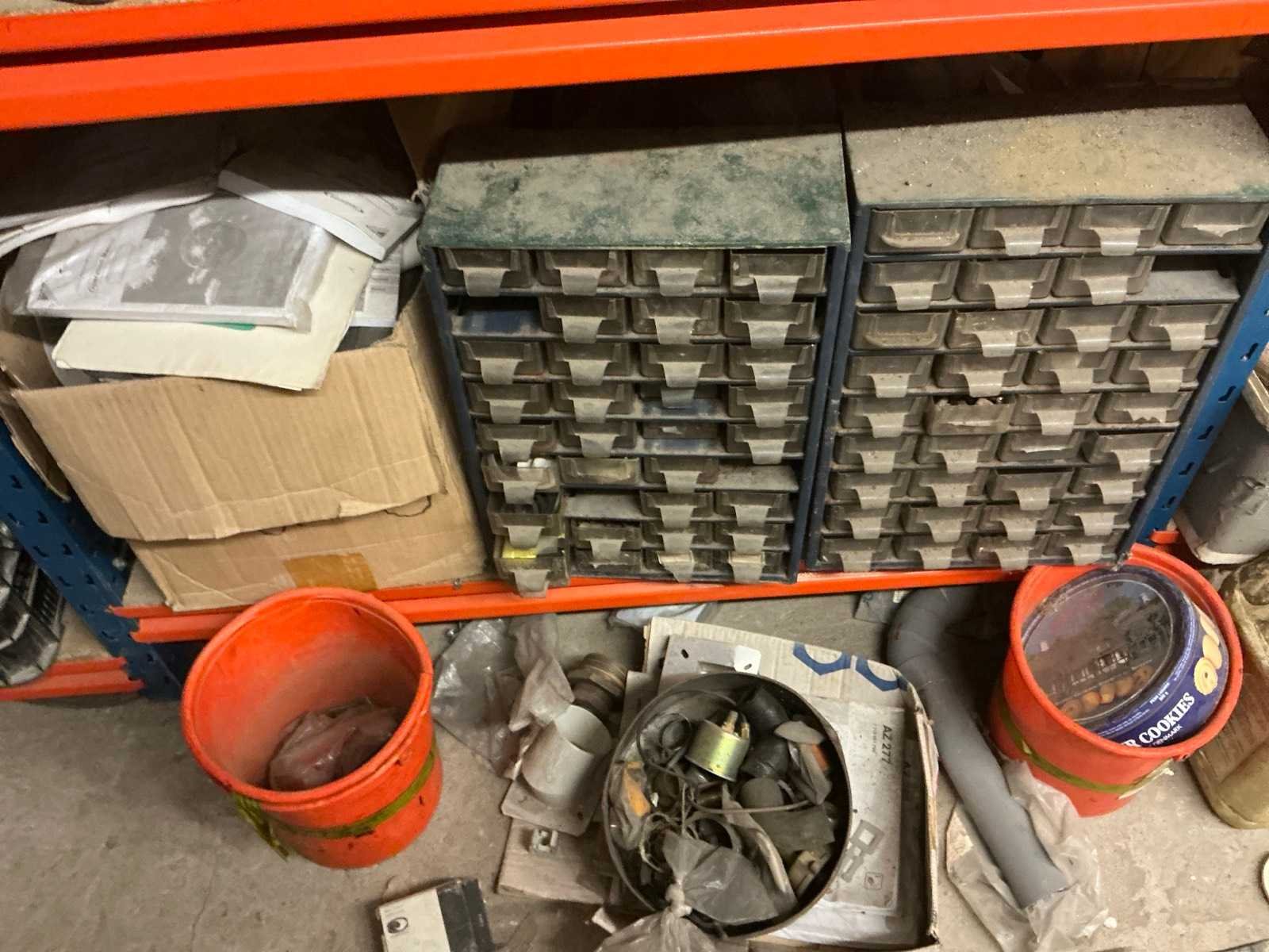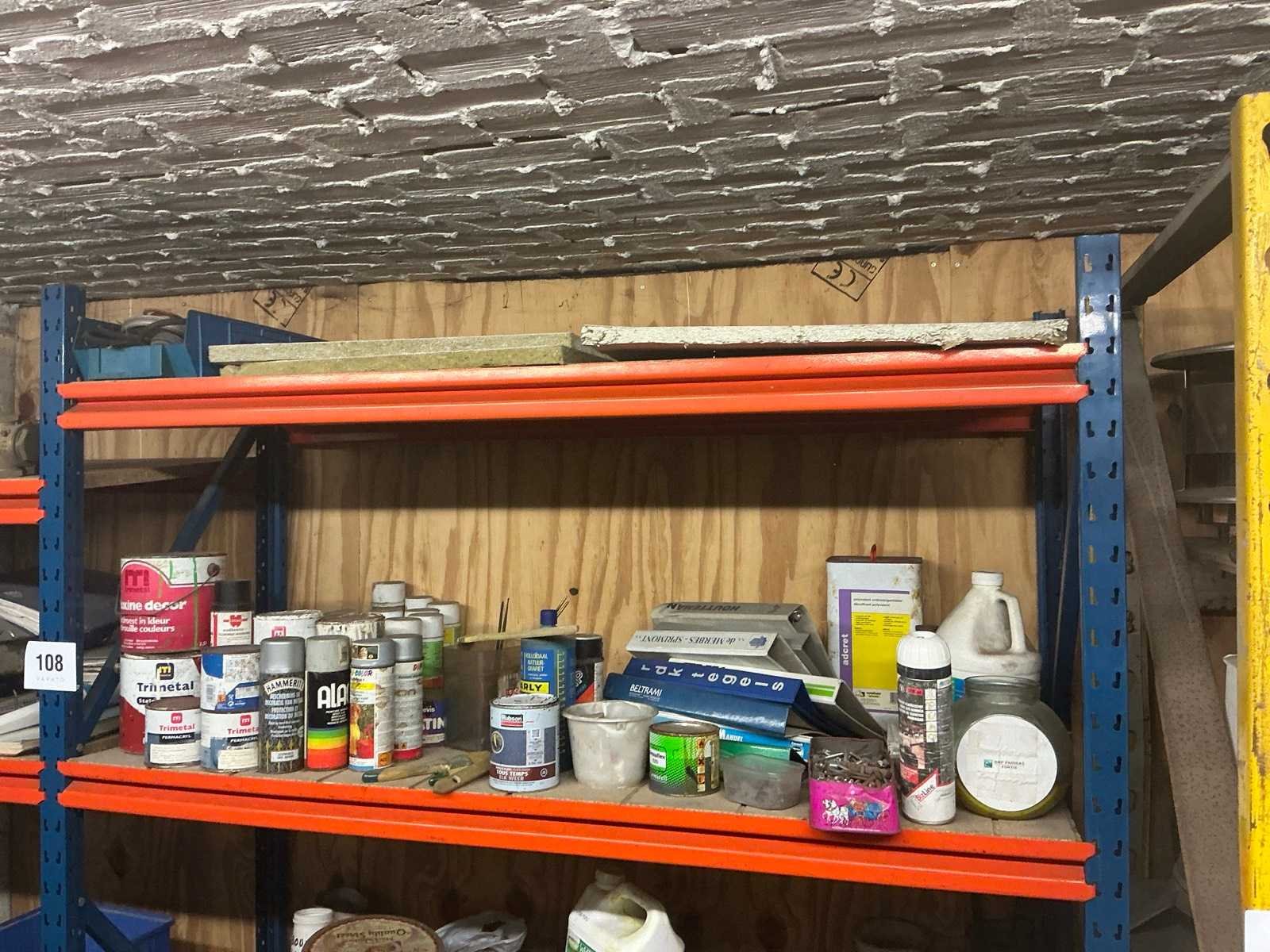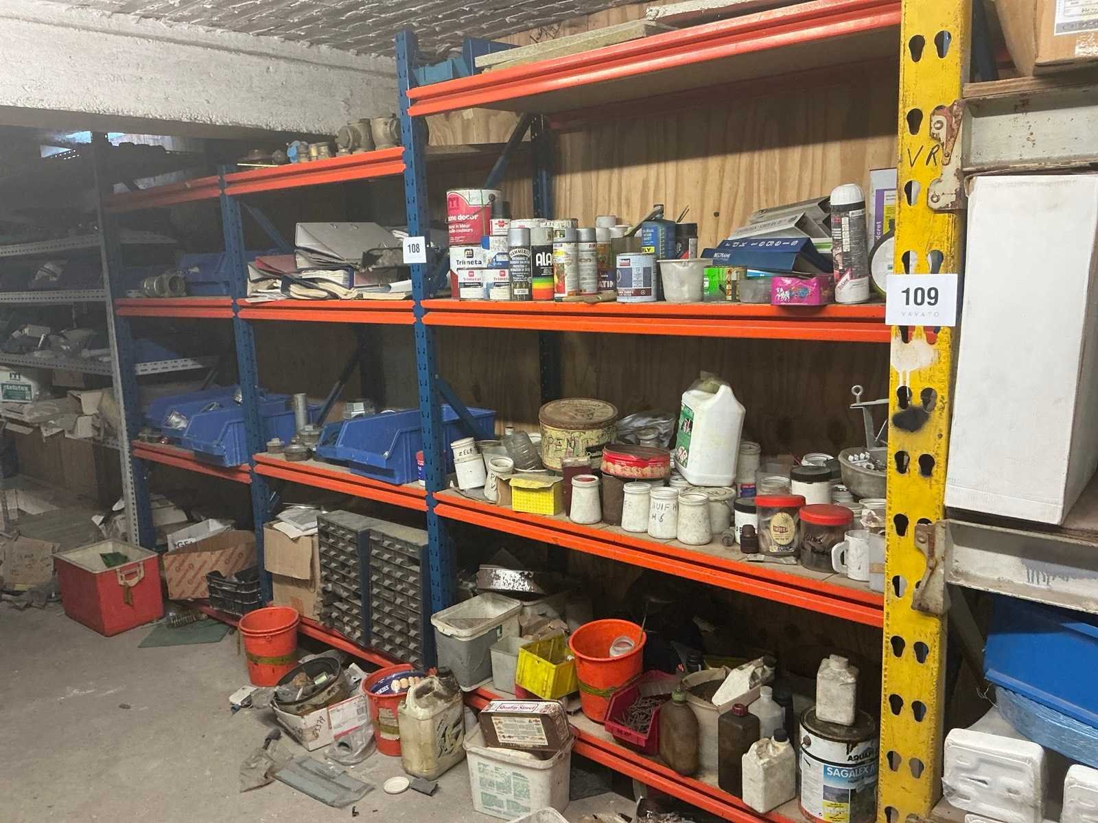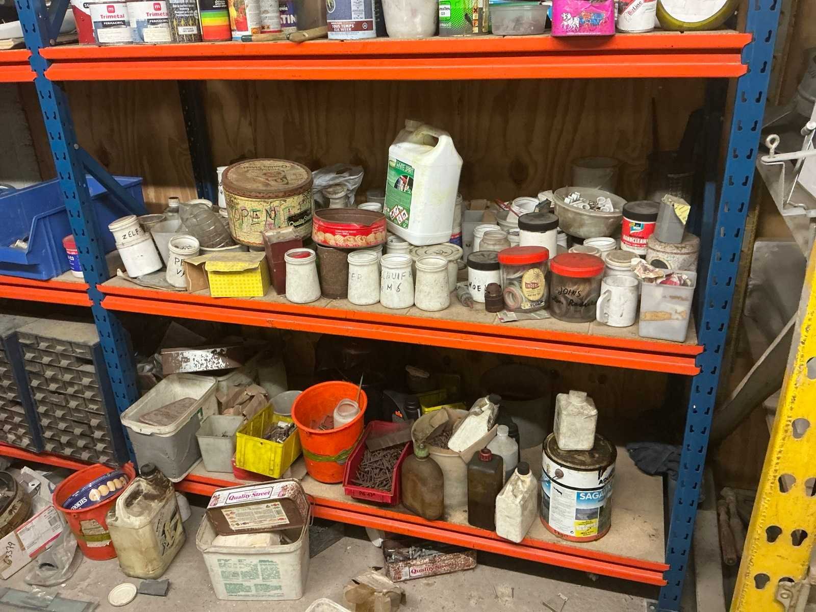 Zich bevindend op het eerste verdiep Compleet met opbergrek met inhoud, met afmetingen ca. 182 x 63 x 220cm. Met inhoud (zie foto’s ter specificatie). Door koper te demonteren. Aantal staanders: 4 Aantal liggers: 24 Totale afmeting L: 940cm Totale afmeting Breedte: 60cm Totale afmeting Hoogte: 180cm Lengte: 370cm Breedte: 60cm Hoogte: 215cm