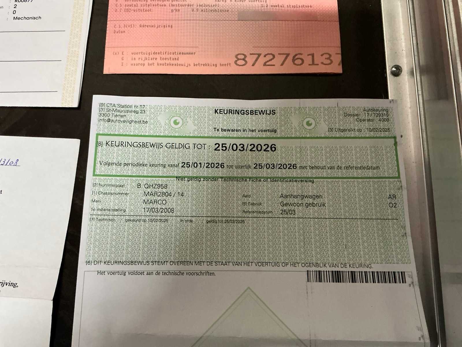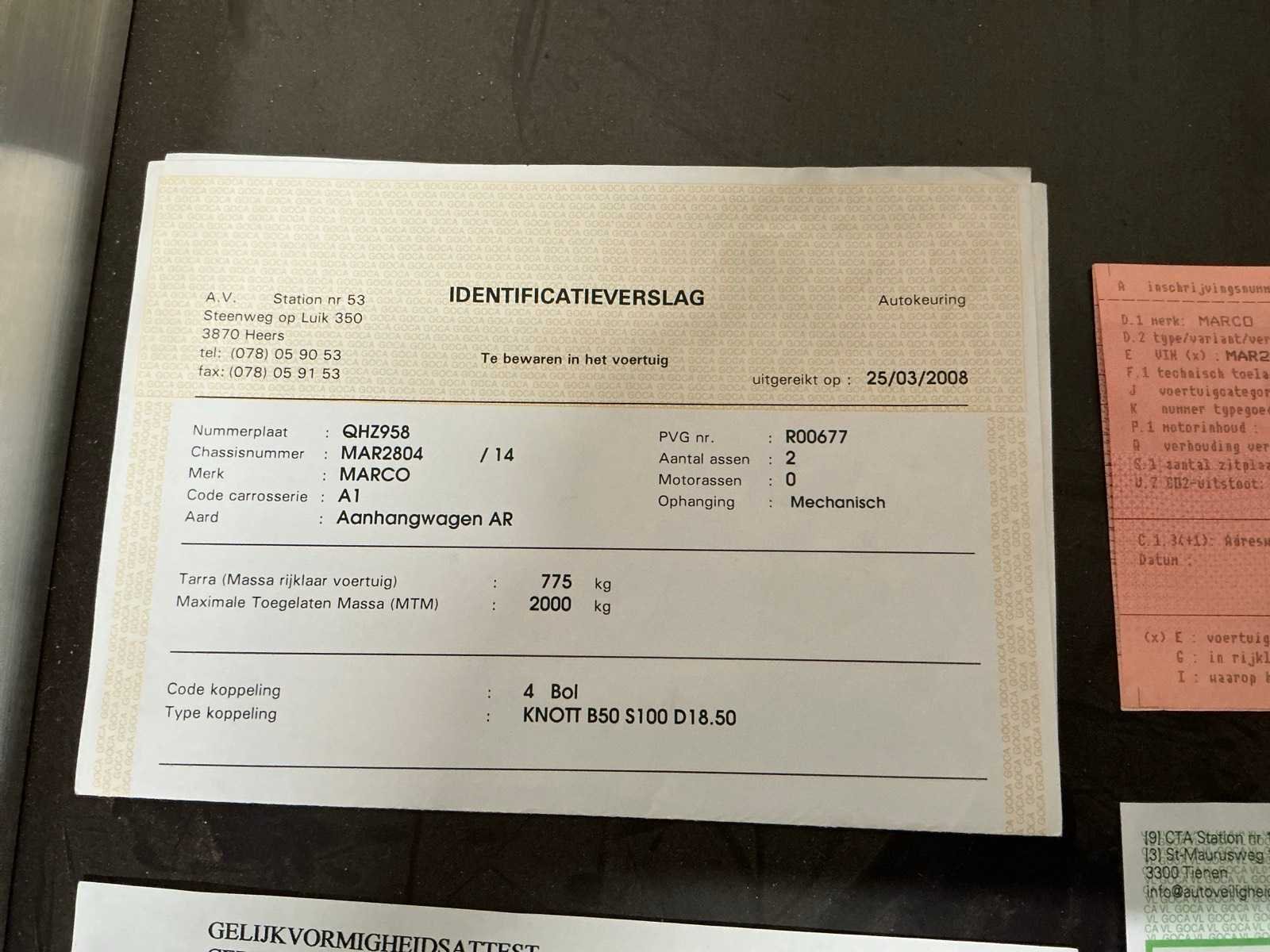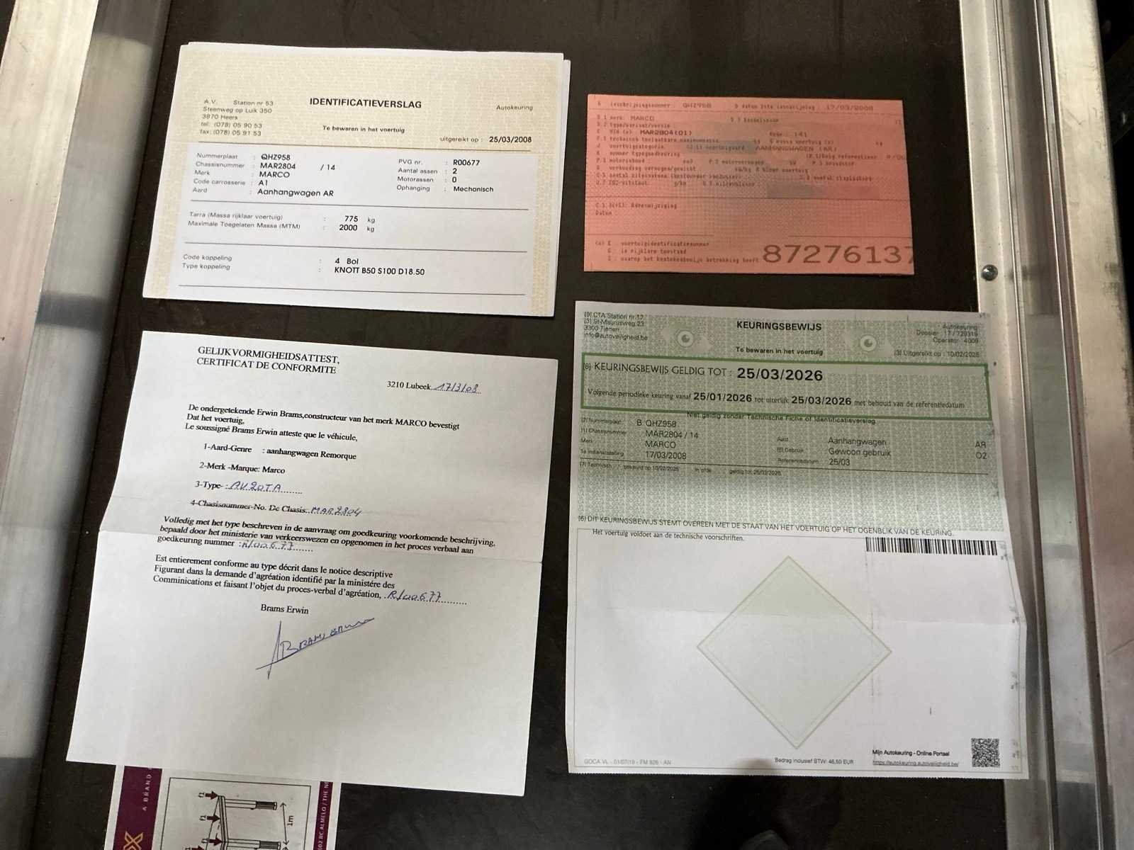 Keuring geldig tot: 25/03/2026 Merk: Marco Type: Av20TA Bouwjaar: 2008 Chassisnummer: MAR2804 Aantal assen: 2 Laadbak afmeting l: 310cm Laadbak afmeting b: 132cm Laadvermogen: 2000kg Gesloten opbouw: true Datum eerste toelating: 17/03/2008 Kentekenpapieren compleet?: true Nationaliteit documenten: België