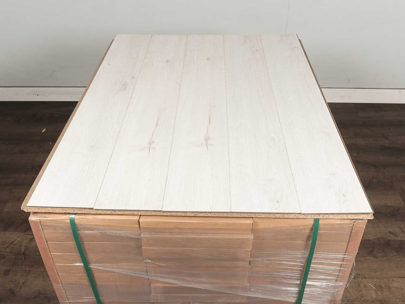 Kwaliteits laminaat vloer, dikte 7 mm, voorzien van clicksysteem, goed te combineren met vloerverwarming, kras en slijtvast, anti slip, gemakkelijk schoon te maken, warm en comfortabel, 49 pakken a 2,43 m2 Merk: Krono flooring Product type: Laminaat Oppervlakte: 119m² Geschikt voor vloerverwarming: Ja V-groef: Ja Afwerking: Voelbaar structuur, anti slip, met v-groef Aantal m² per verpakking: 2.43m² Kleur: Lisabon oak Gewicht: 735kg Lengte: 1288mm Breedte: 189mm Materiaal: HDF/MDF