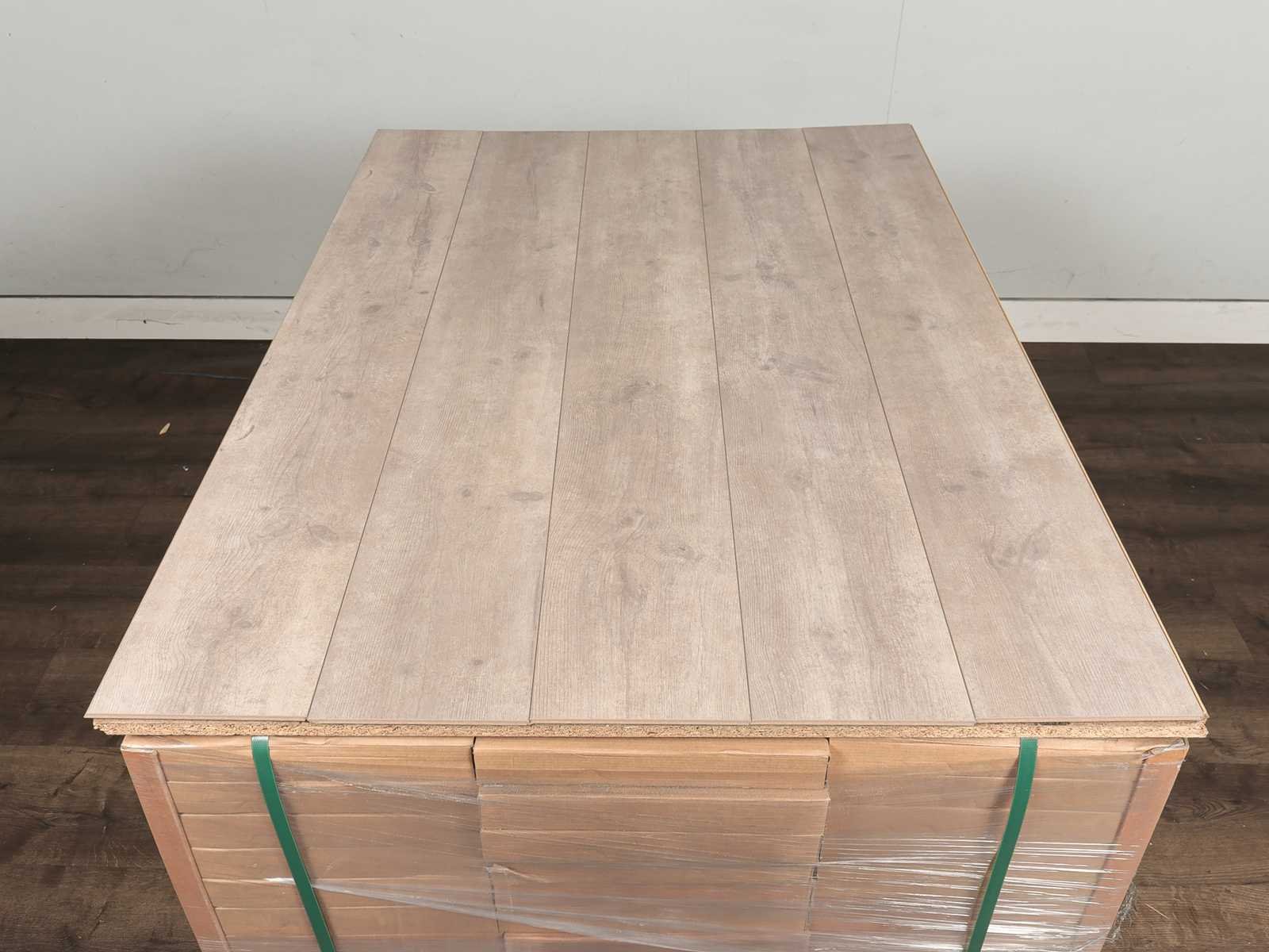 Kwaliteits laminaat vloer, dikte 8 mm, voorzien van clicksysteem, goed te combineren met vloerverwarming, kras en slijtvast, anti slip, gemakkelijk schoon te maken, warm en comfortabel, 47 pakken a 2,40 m2 Merk: Krono flooring Product type: Laminaat Oppervlakte: 112m² Geschikt voor vloerverwarming: Ja V-groef: Ja Afwerking: Voelbaar structuur, anti slip, met v-groef Aantal m² per verpakking: 2.4m² Kleur: Beton Gewicht: 705kg Lengte: 1383mm Breedte: 193mm Materiaal: HDF/MDF