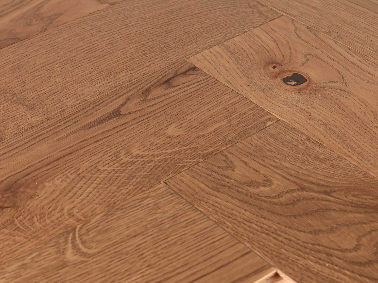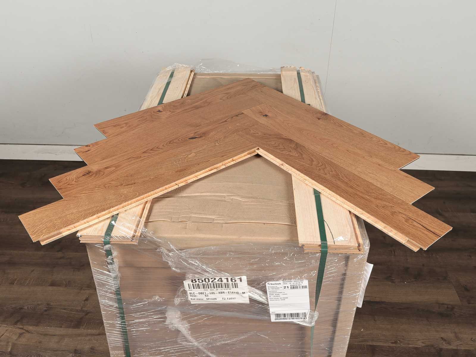 Gemakkelijk te leggen wegens clicksysteem, geschikt voor alle soorten vloer en koelverwarmingen, kwaliteits parketvloer, vloer is van hoogwaardig Europees eiken hout, kant en klaar behandeld, dikte 14 mm, toplaag 3 mm, 136 pakken a 0,50 m2 Merk: Ambiance Product type: Parket Oppervlakte: 68m² Geschikt voor vloerverwarming: Ja V-groef: Ja Afwerking: Mat gelakt, geborsteld, met v-groef Aantal m² per verpakking: 0.5m² Kleur: Brown smoked effect 437 Gewicht: 815kg Lengte: 660mm Breedte: 110mm Materiaal: Eiken multiplank