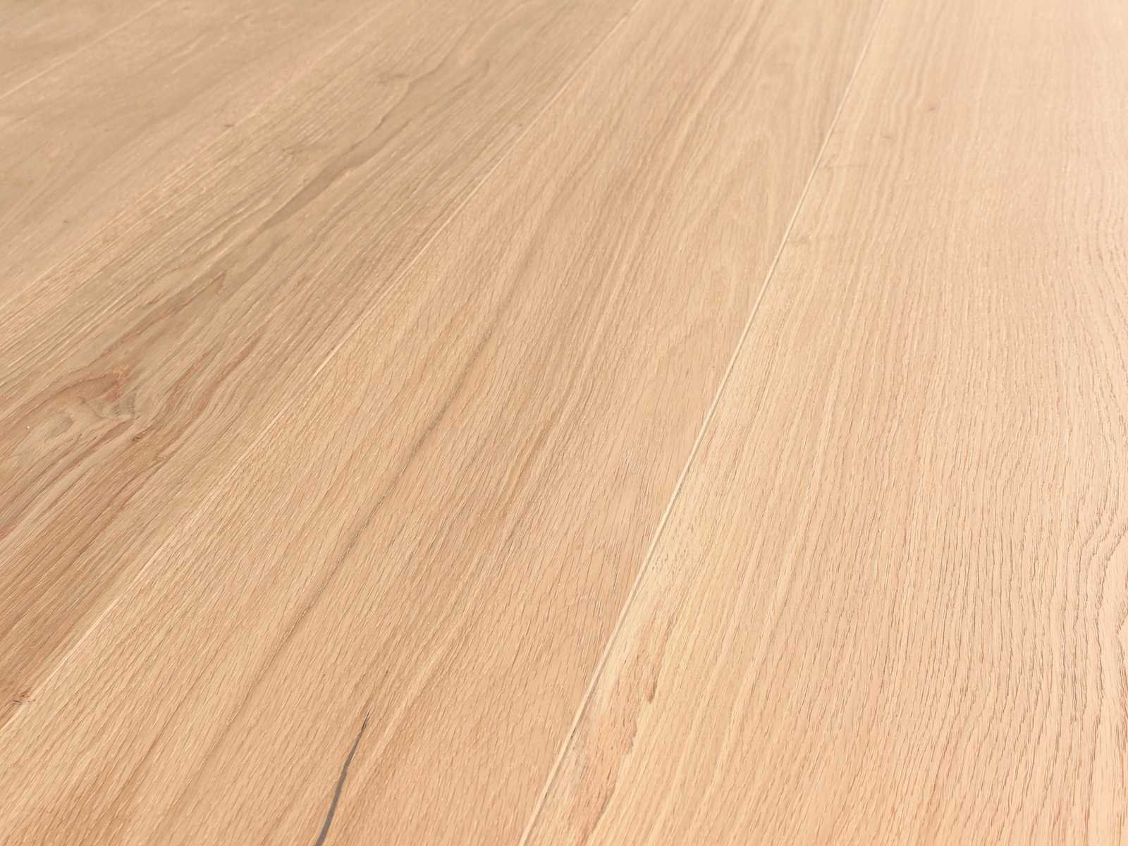Gemakkelijk te leggen wegens 5G clicksysteem, geschikt voor alle soorten vloer en koelverwarmingen, kwaliteits parketvloer, vloer is van hoogwaardig Europees eiken hout, kant en klaar behandeld, dikte 14 mm, toplaag 3 mm, 40 pakken a 2,77 m2 Merk: Ambiance Product type: Parket Oppervlakte: 110m² Geschikt voor vloerverwarming: Ja V-groef: Ja Afwerking: Geolied, geoxideerd, geborsteld, met v-groef Aantal m² per verpakking: 2.77m² Kleur: Raw effect 828 Gewicht: 925kg Lengte: 2200mm Breedte: 180mm Materiaal: Eiken multiplank