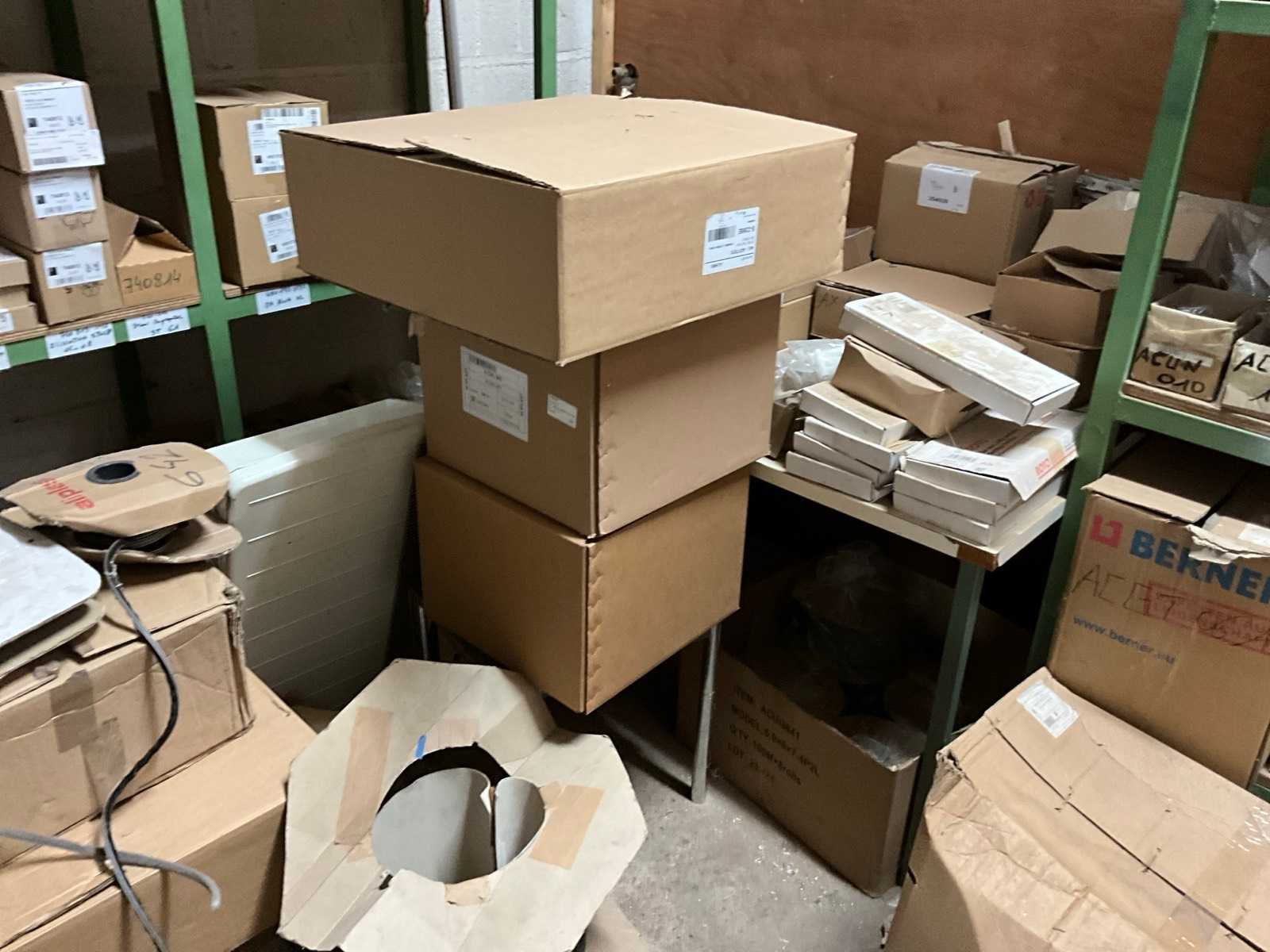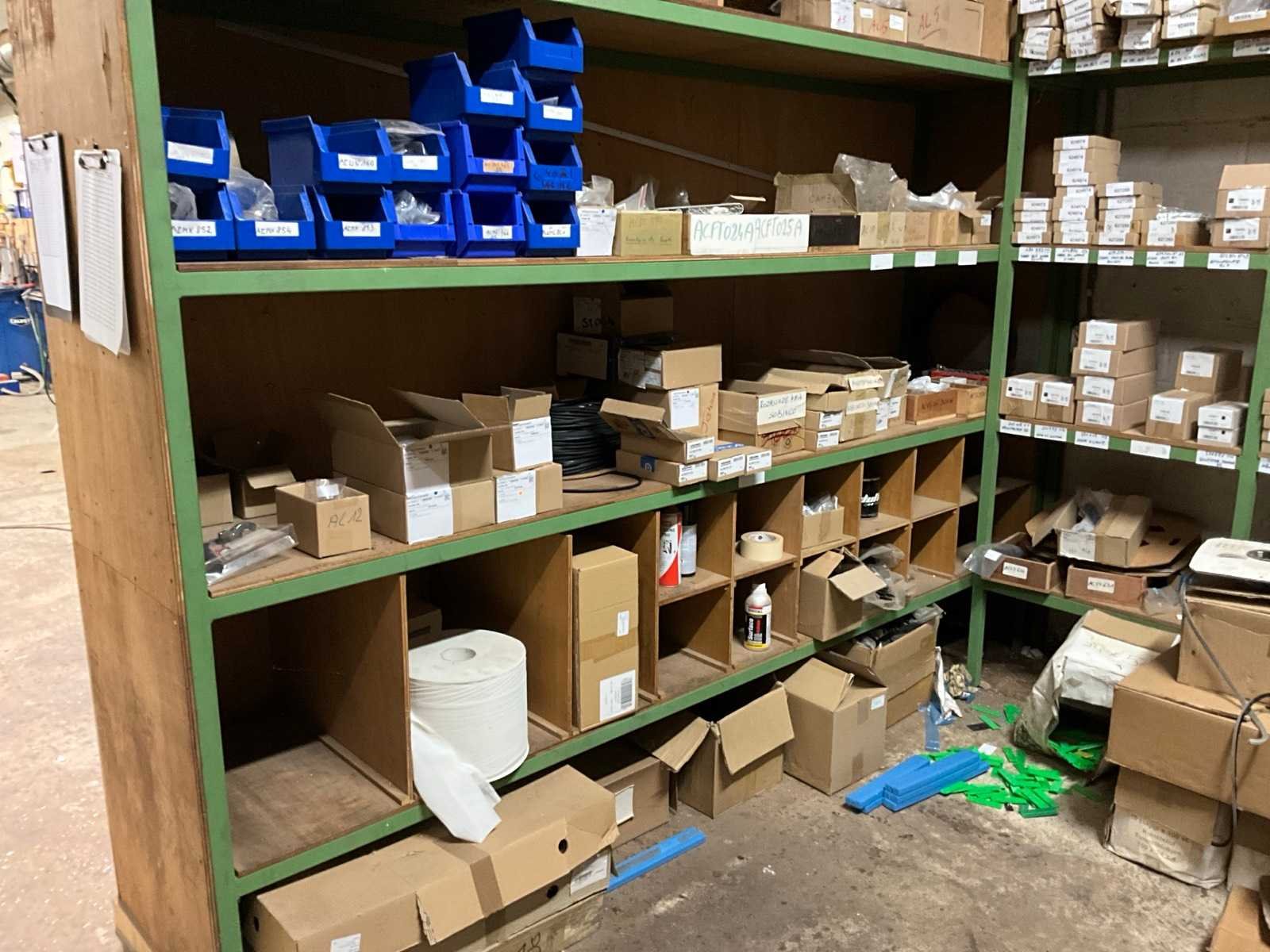 Alsook andere toebehoren voor raamproduktie, zijnde inhoud van ganse magazijnruimte, zonder magazijnstelling