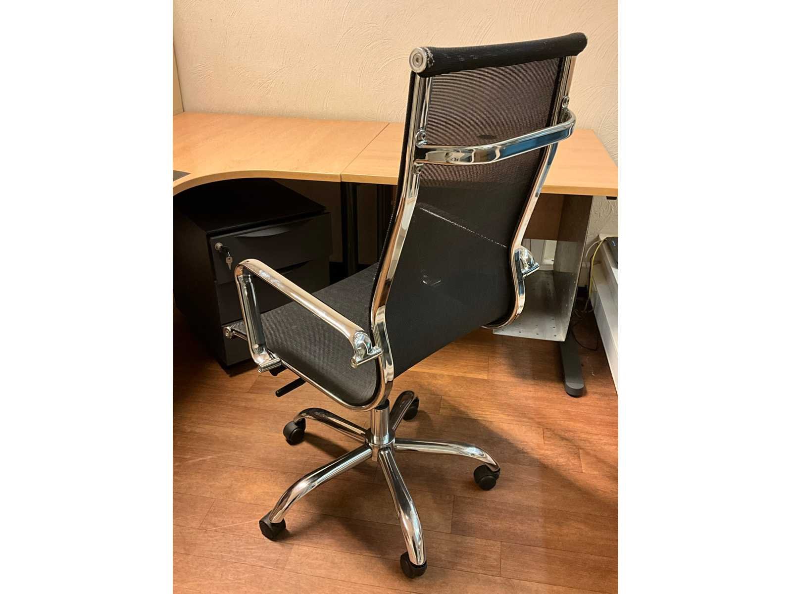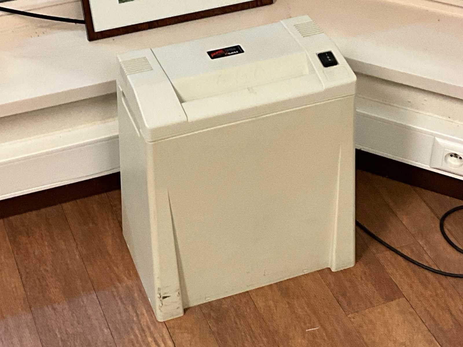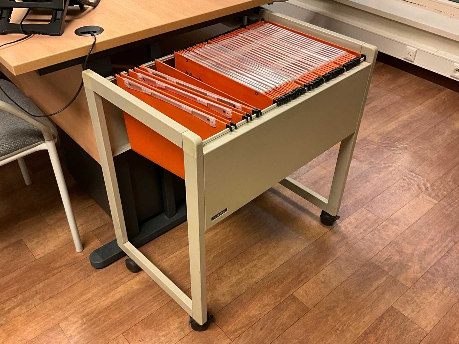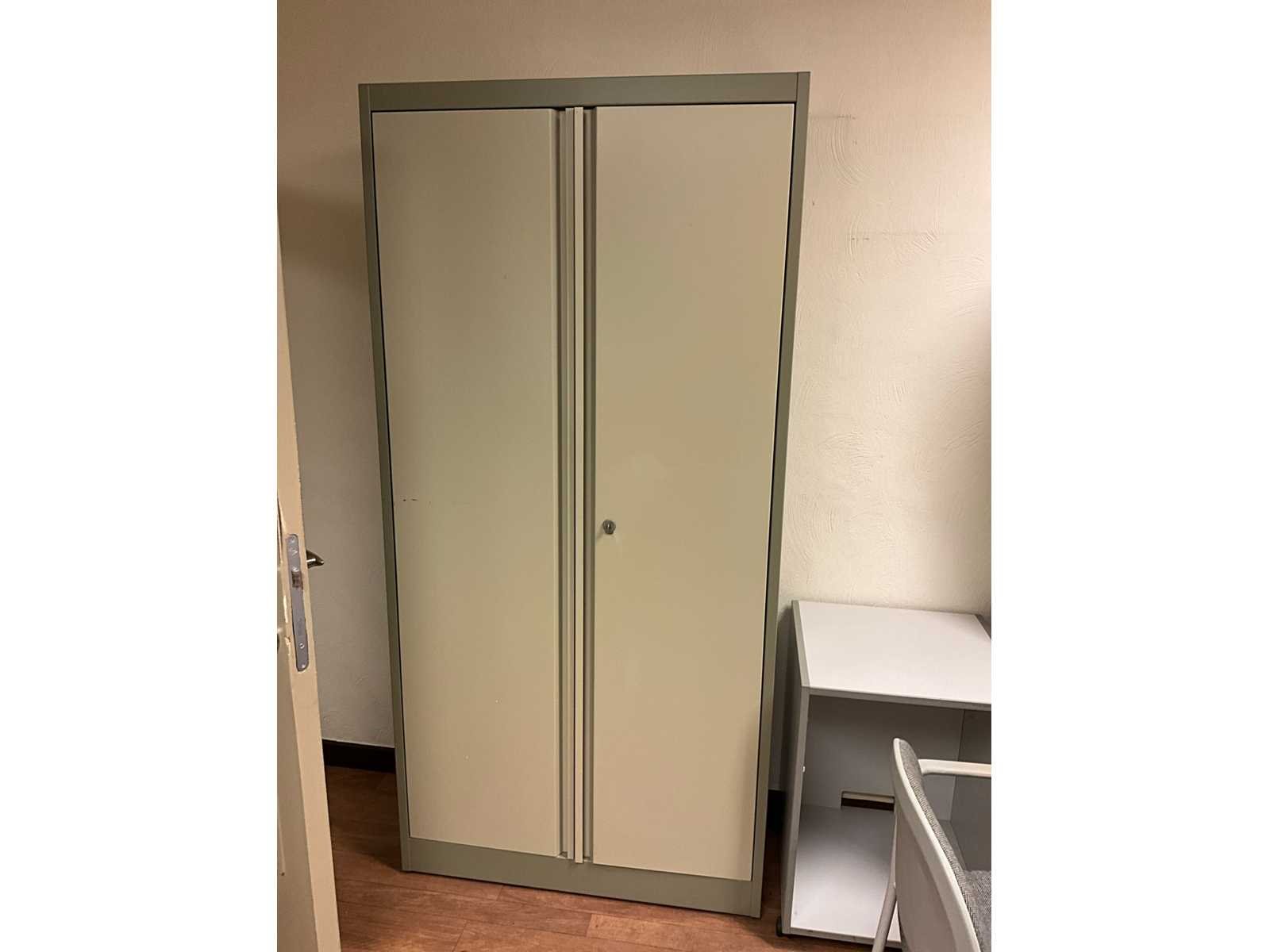 Volledige inhoud van kantoorruimte, waaronder bestaande uit: Een fineer houten hoekbureau voorzien van metalen onderstel ca 200 x 200cm, 1 chrome typistestoel voorzien van stoffen bekleding, 3 bijzetstoelen voorzien van stoffen bekleding, 2 diverse ladenblokken, 2 Kallax kasten 2x4 vakken, 1 Kallax kast voorzien van 2x2 vakken 2 magnetische whiteboards ca 150 x 100cm, 1 metalen dossierkast voorzien van 2 deuren - hoog model, 1 verrijdbaar hangdossierrekje, 1 elektrische papierversnipperaar, 2 diverse metalen organizers Bisley en 1 flipchart Junénilia, Uitgezonderd telefoontoestel en router, Afgifte volgens aanwijzing Model: Volledig resterende inhoud