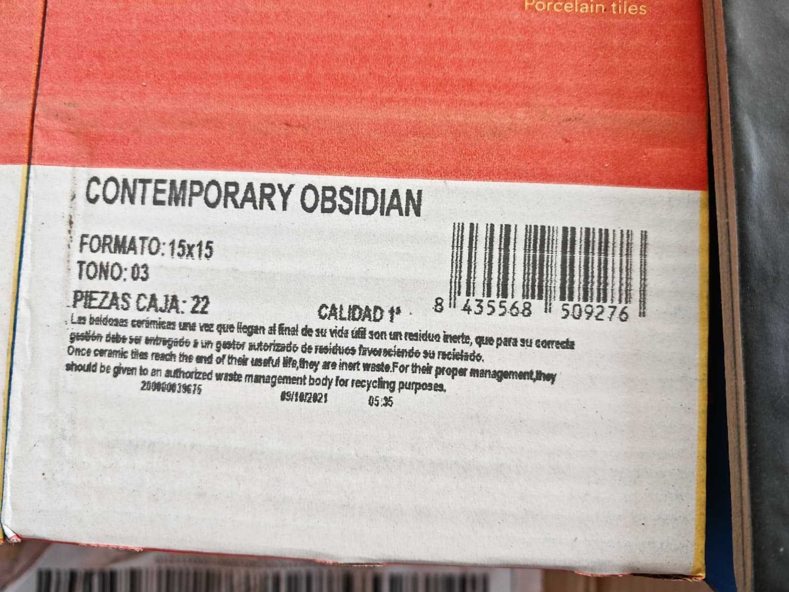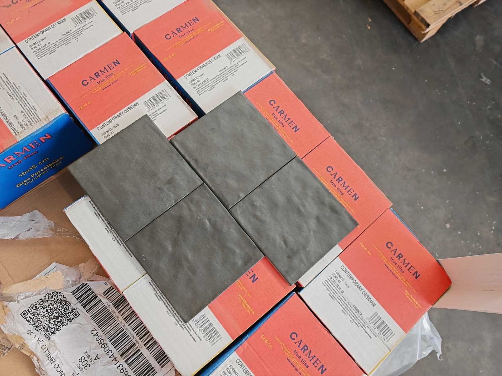 Merk: Carmen Kleur: Obsidian Afwerking: Mat Lengte: 15cm Breedte: 15cm Materiaal: Keramiek Dikte: 7.9mm Type: Wandtegel Model: Contemporary Gewicht: 900kg Aantal m² per verpakking: 0.495m² Aantal pakken: 90