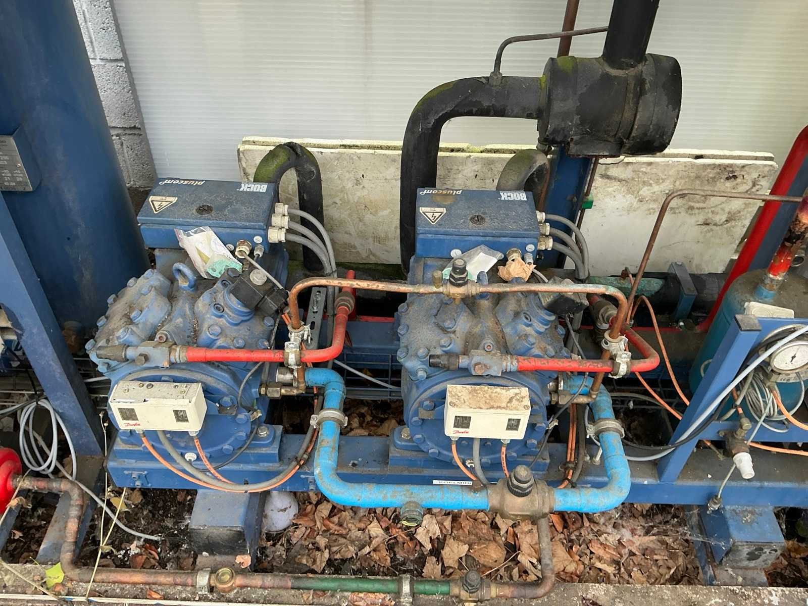 Bestaande uit: - 2 compressoren DWM Copeland DLEP-20X-EWL, bj. 1998 - 2 compressoren BOCK, bj. 2003 - stappenregelaar - 1 condensor op dak - 12 verdampers over frigo's en vriezer, bj. 1998-2015 Merk: Vanpraet Type koudemiddel: R507 Bouwjaar: 2010