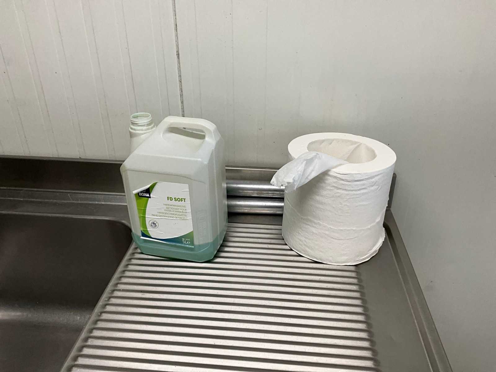 Voorzien van waterkraan, papierdespenser Diepte: 33cm Lengte: 70cm Breedte: 240cm Hoogte: 90cm