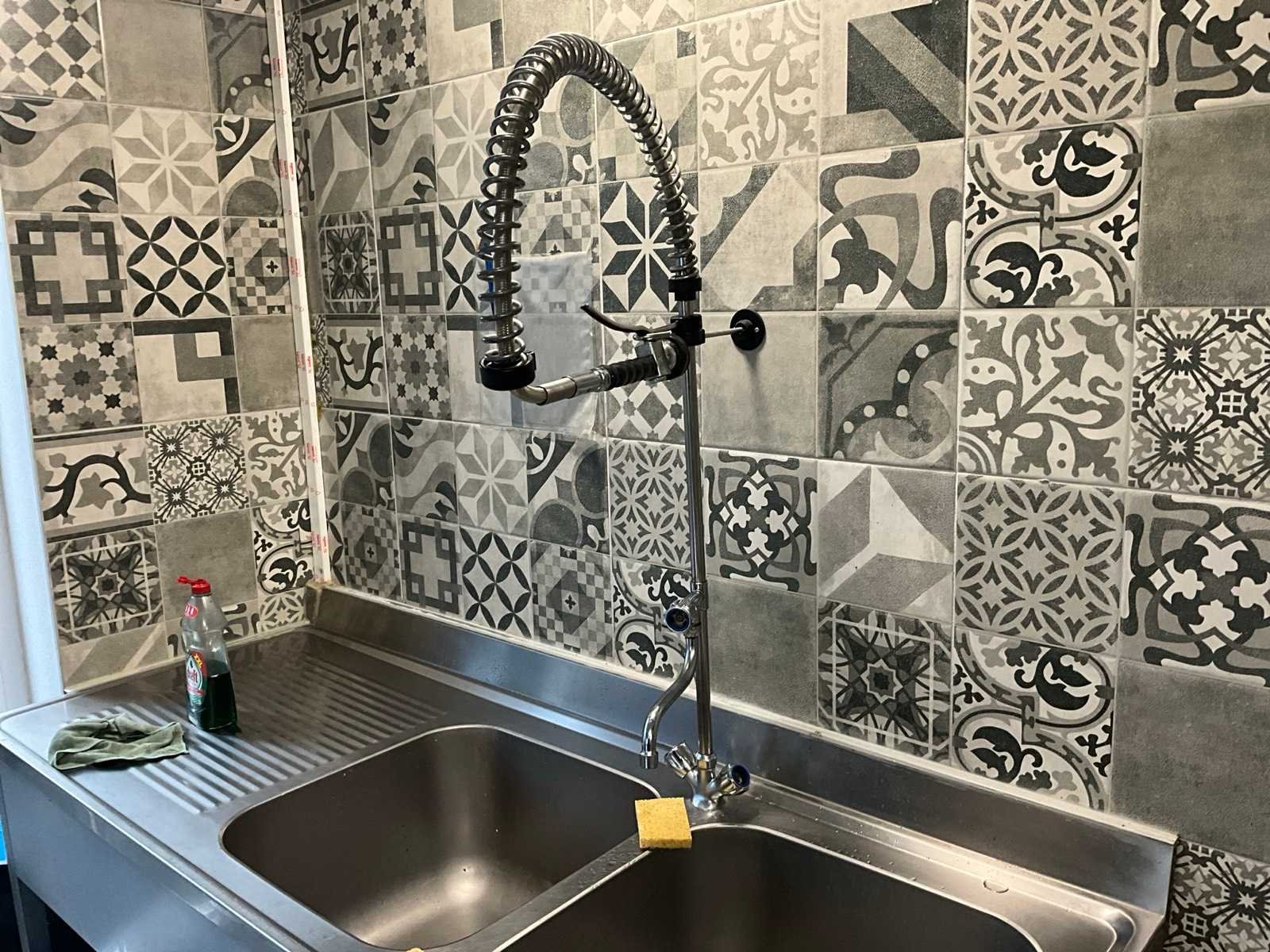 Voorzien van spoelkraan met douchekop, electrische waterheater Neotherme 15 liter Diepte: 35cm Lengte: 73cm Breedte: 180cm Hoogte: 100cm