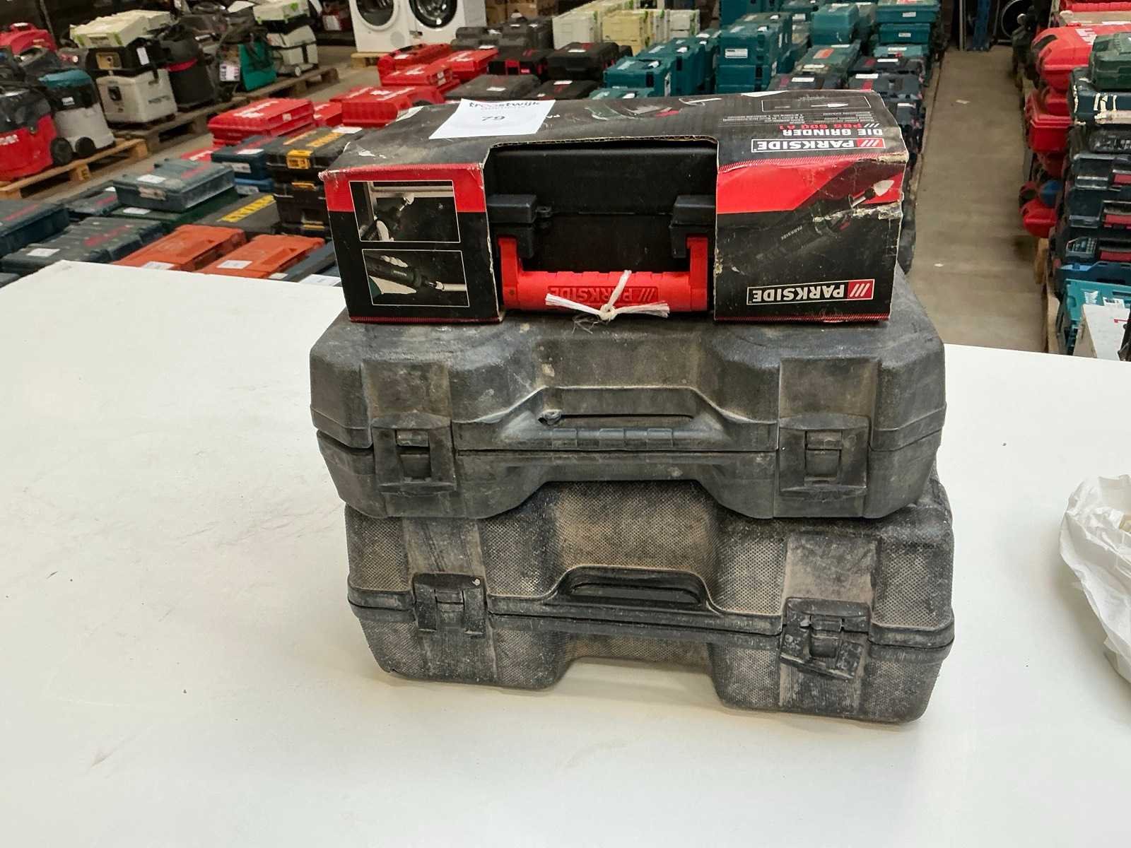Zijnde: - Redstone RS 1400-30 PM elektrische sleuvenfrees, 1400W, Ø125mm, s/n 66855495 - Dexter Power Z1C-HW-3218SEP elektrische boorhamer, 1500W - Parkside PGS 500 A1 rechte slijpmachine, s/n 049691