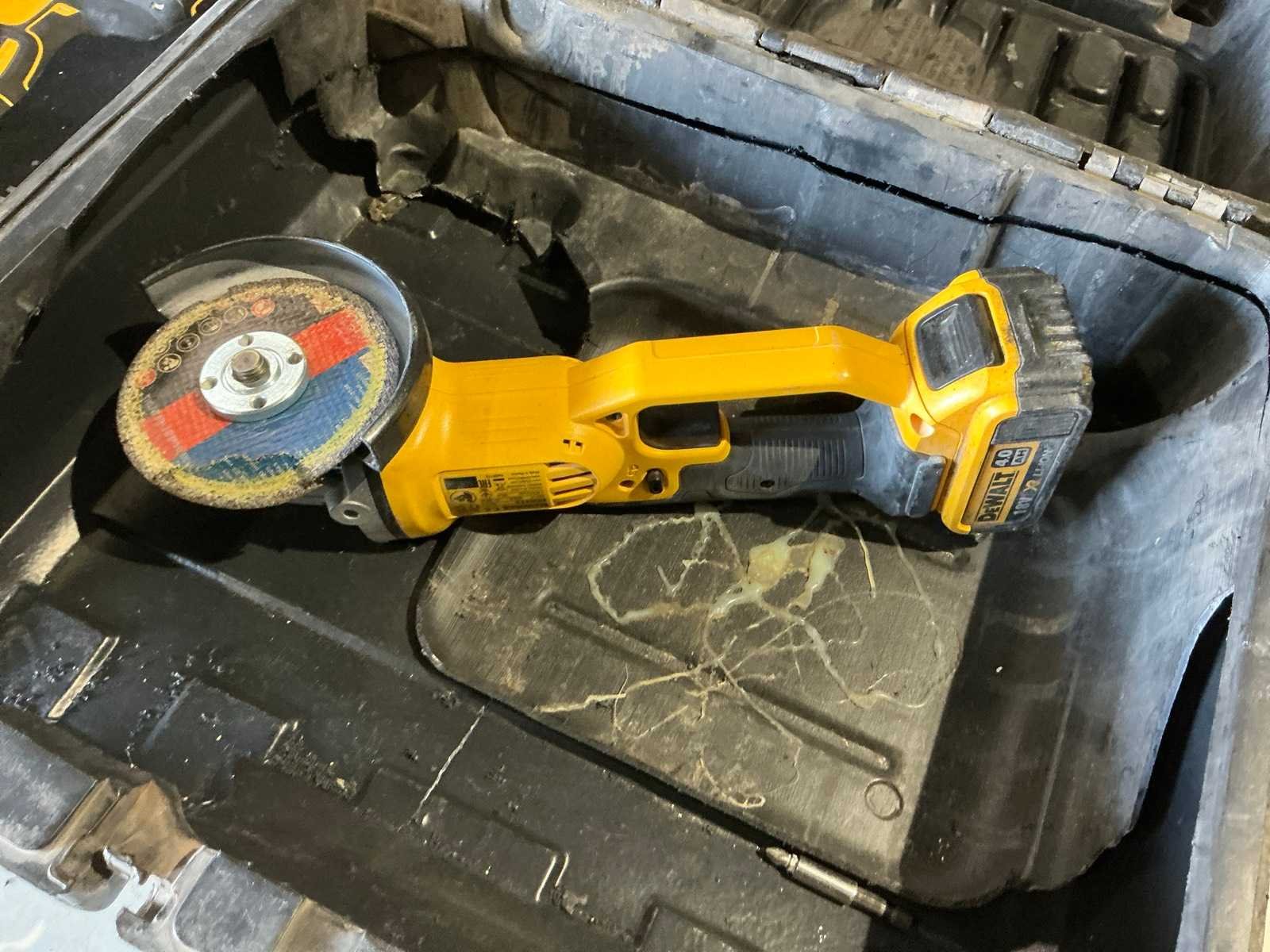1x DCG412 haakse slijpmachine, met 1x 18V-accu, s/n 966582; 1x DCS391 cirkelzaag, zonder accu, s/n 153157; 1x DCD795 schroefboormachine, met 1x 18V-accu, s/n 068746; 1x DCD995 schroefboormachine, zonder accu, s/n 044743; geen laders aanwezig Merk: DeWalt