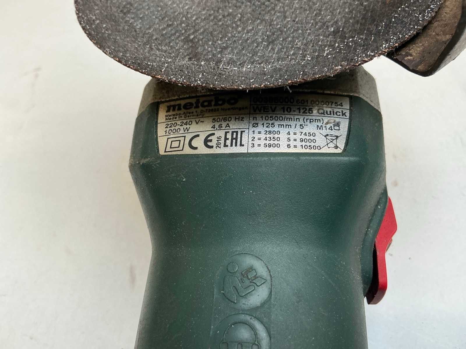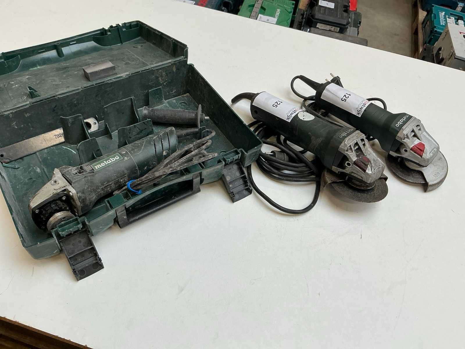 Zijnde: - type W1800, s/n 3091285419 - type WEV 10-125 Quick, s/n 6010050754 - 1x zonder verdere gegevens Merk: Metabo Schijfdiameter: 125mm Aansluiting: 230V