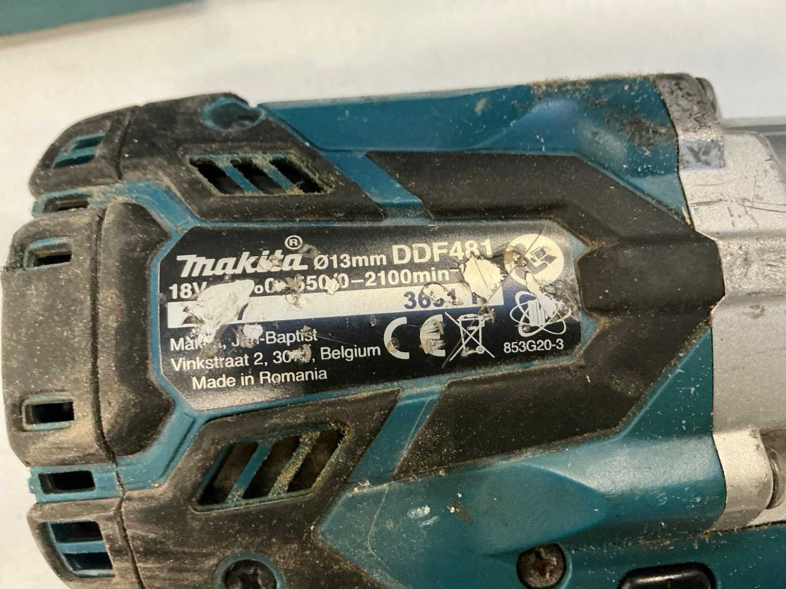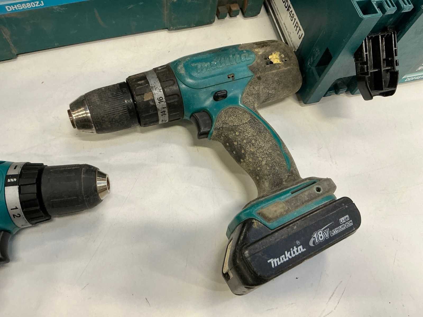 Zijnde: - DDF481 schroefboormachine, met 1x 18V-accu en lader, s/n 3631x, in koffer - DHP453 schroefboormachine & DDF343 schroefboormachine, s/n 0312301Y; telkens met 1x 18V-accu, zonder lader, in 1 koffer - BFR750 schroefautomaat, met 1x 18V-accu, geen lader, s/n 3969E, in koffer Merk: Makita