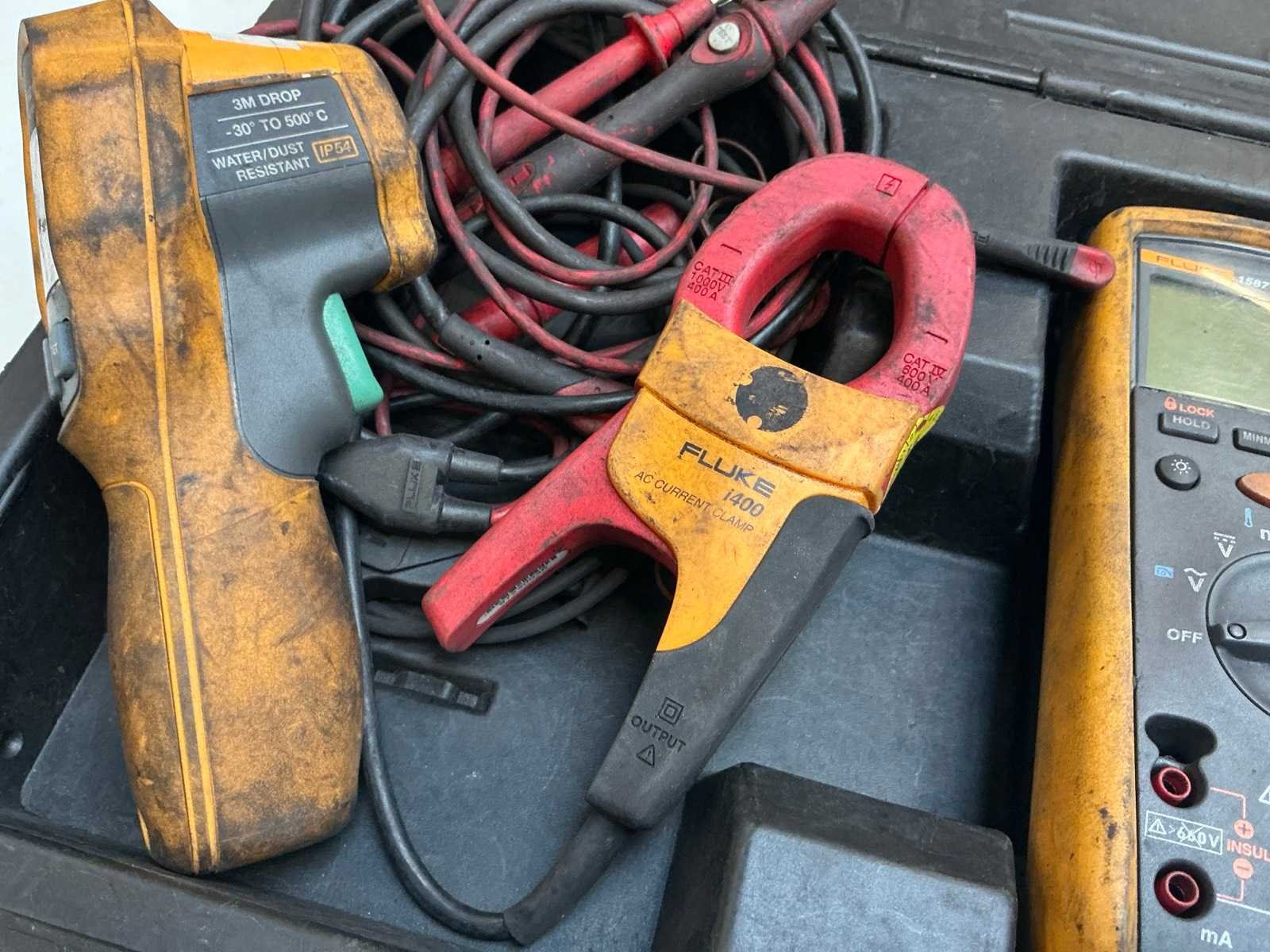 Zijnde: - Fluke 1587 multimeter, s/n 97490010 - Fluke i400 clampmeter, s/n 97230036 - Fluke 62 max IR thermometer alles in 1 koffer Merk: Fluke