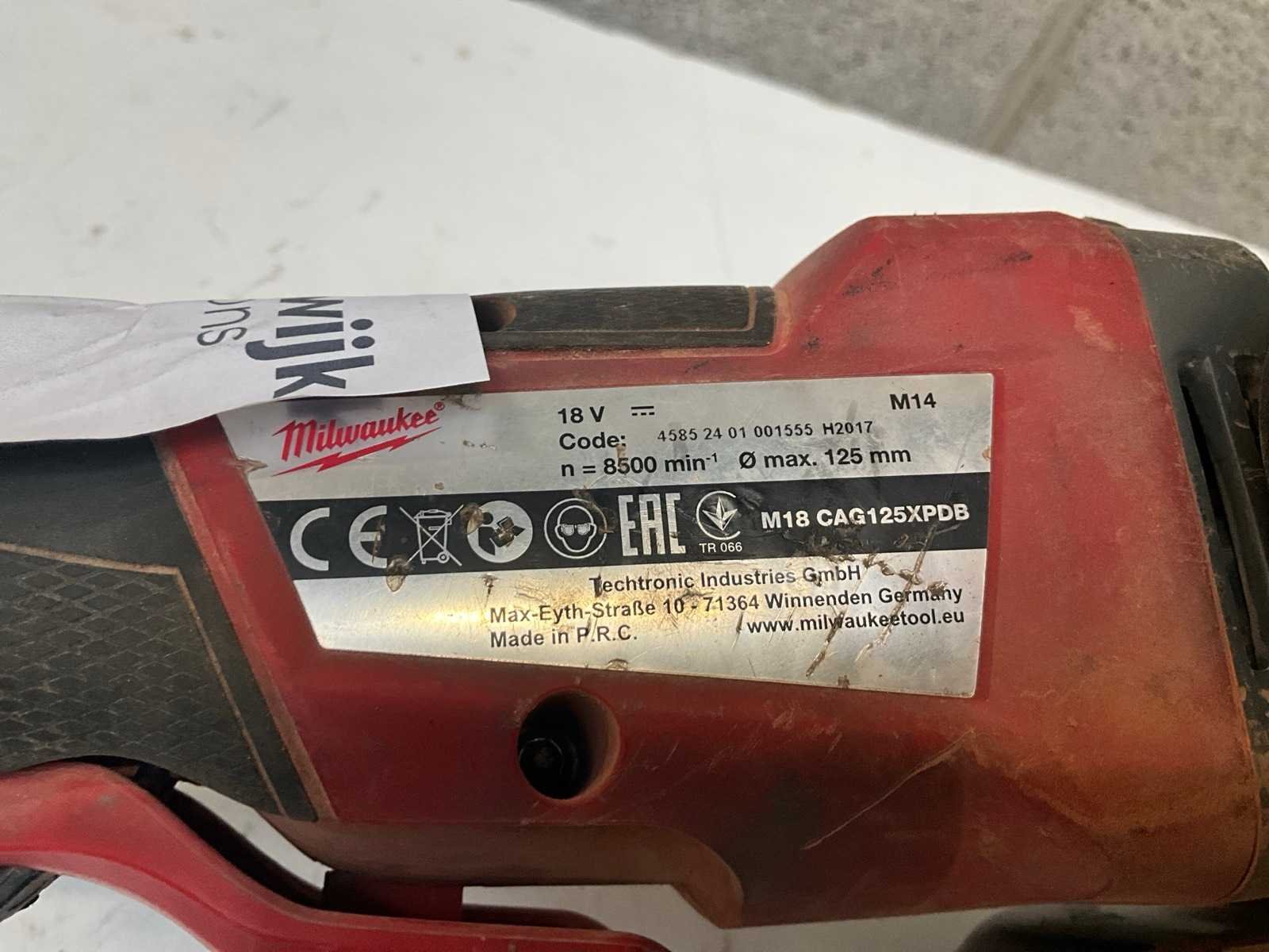 Waaronder: Haakse accu slijptol M18 CAG125XPDB met serienummer 4585 24 01 001555 H2017, voorzien van 5Ah accu Accu klopboormachine M18 FPD, voorzien van 5.Ah accu 2x accu klopboormachine Accu looplamp M18 T LED Merk: Milwaukee
