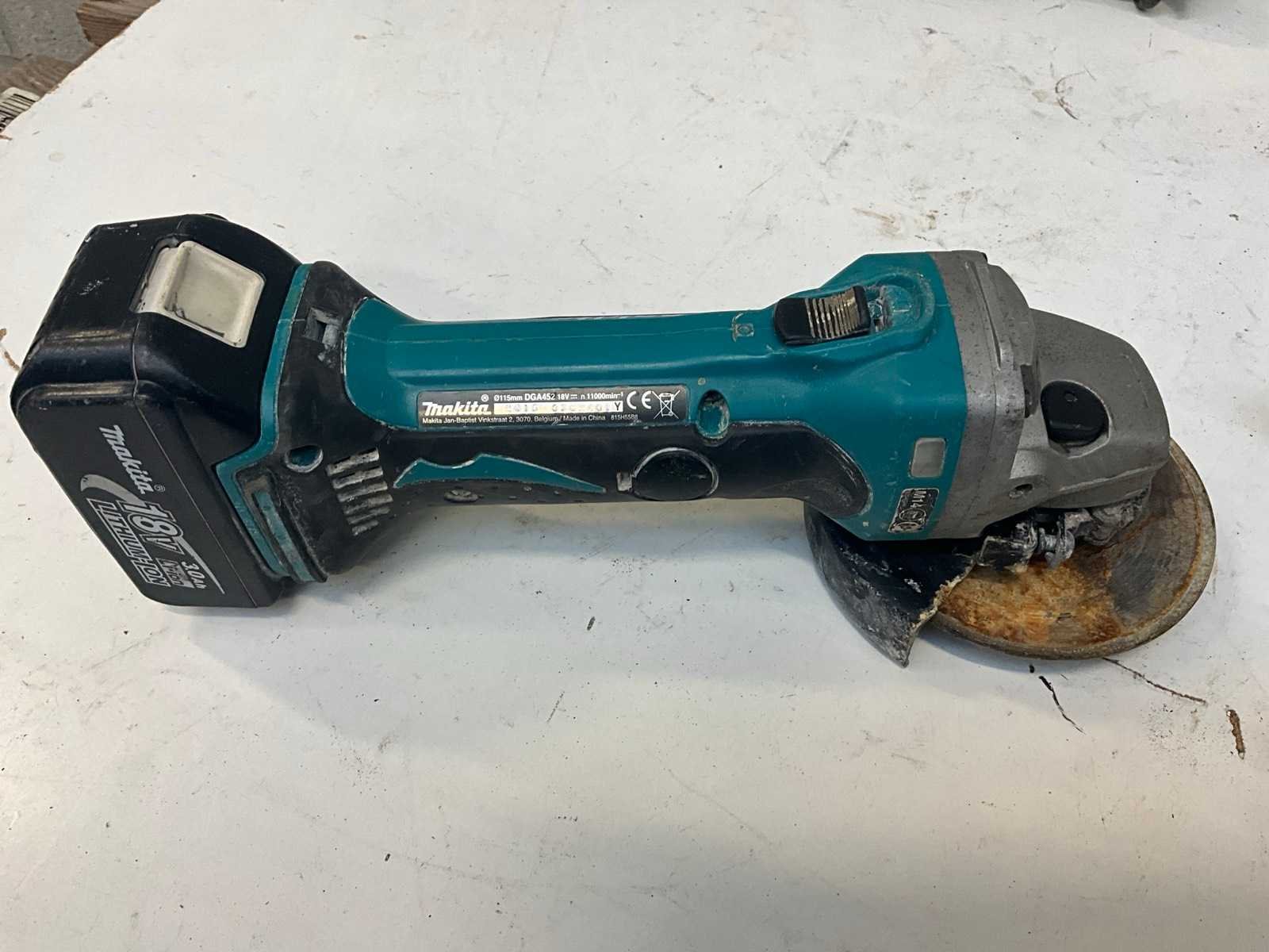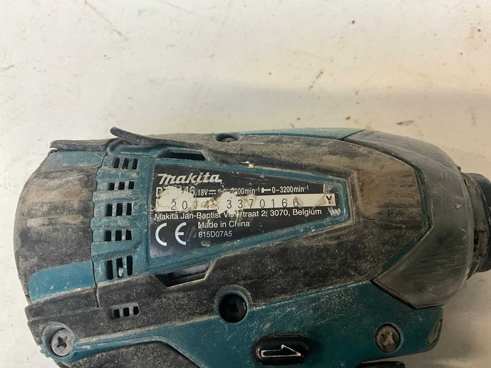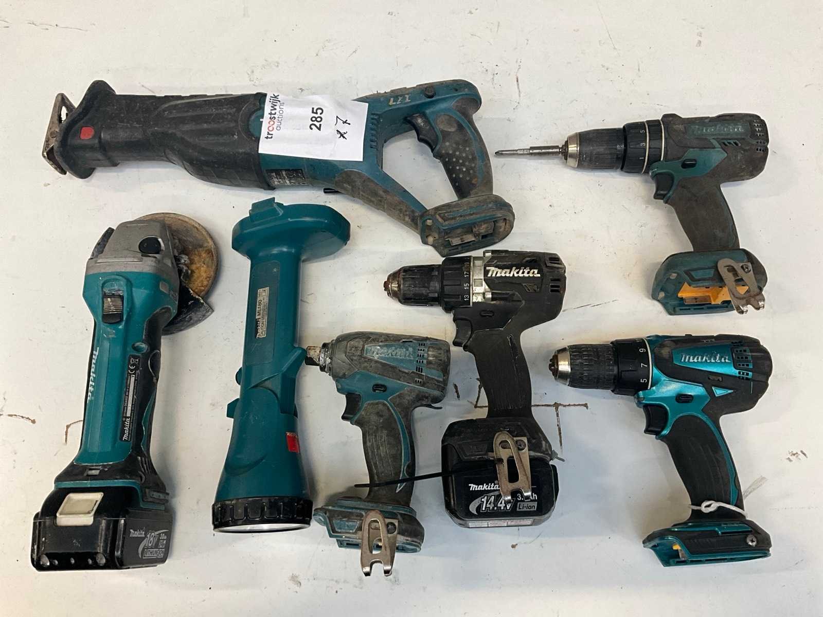 Bestaande uit: Reciprozaag BJR181 Haakse slijptol DGA452 met serienummer 2015 0382401, voorzien van 3Ah accu Slagschroevendraaier met serienummer 2014 3370166 Schroefboormachine DDF484 voorzien van 3Ah accu Schroefboormachine DDF456 Klopboormachine DHP480 Looplamp ML180 Merk: Makita
