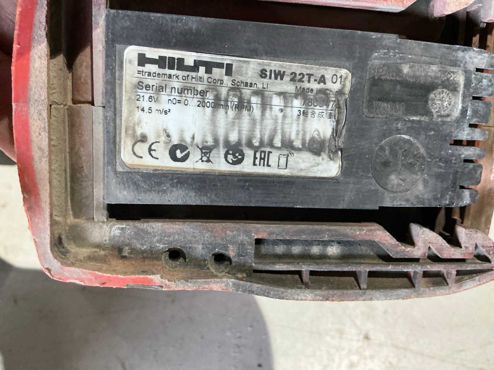 1x WSR 22-A reciprozaag, s/n 168828; 1x SIW 22T-A slagmoersleutel, s/n 786947; 1x SIW 22-A slagmoersleutel, s/n 1021080; 1x SFC 22-A schroefboormachine, s/n 1400812; in totaal met 1x 21,6-accu, zonder lader Merk: Hilti