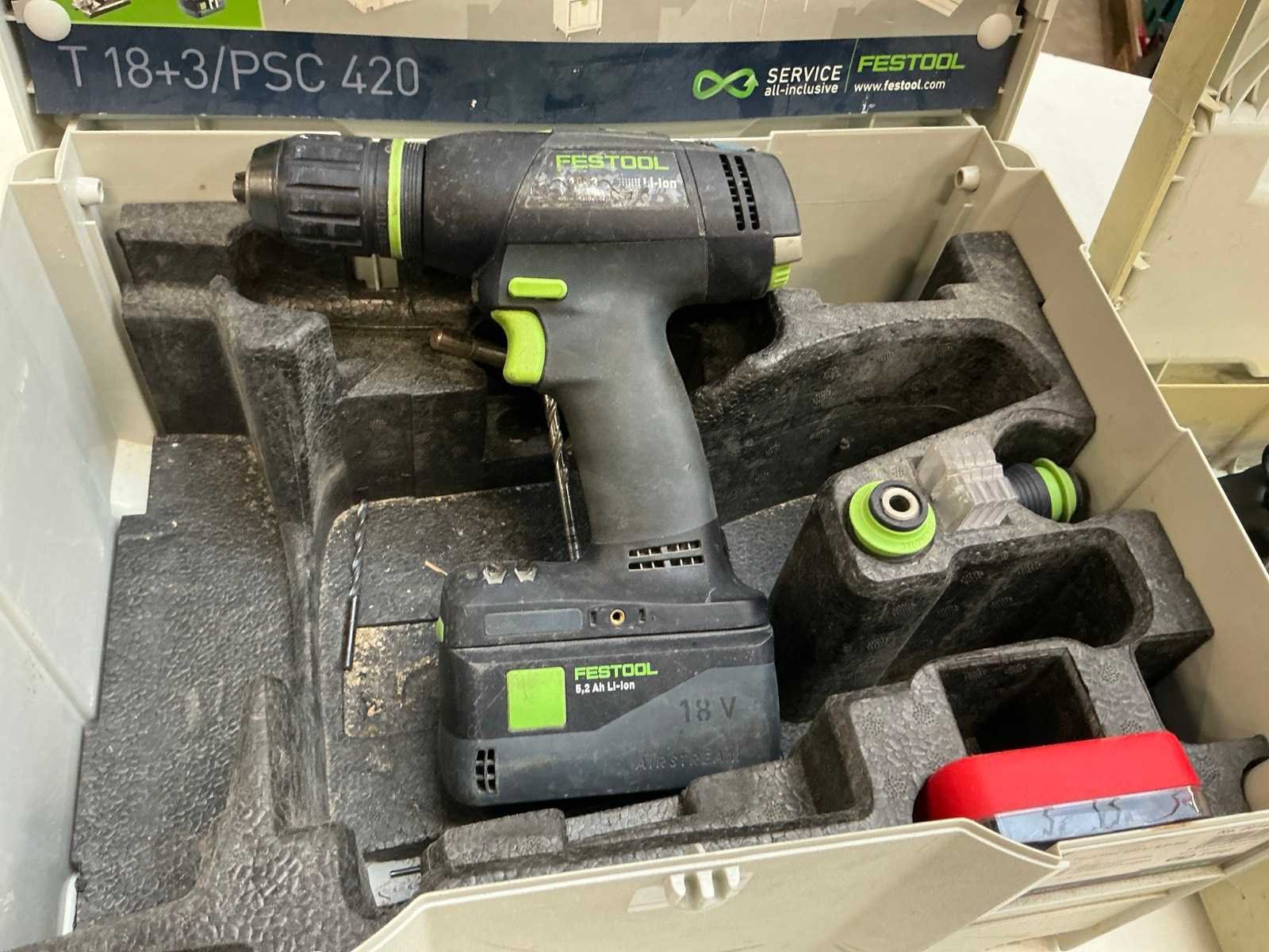 Zijnde: - CXS schroefboormachine, met 2x10,8V-accu & lader - T18+3 schroefboormachine, met 1x18V-accu, geen lader, s/n 40058605 Merk: Festool Met koffer: true
