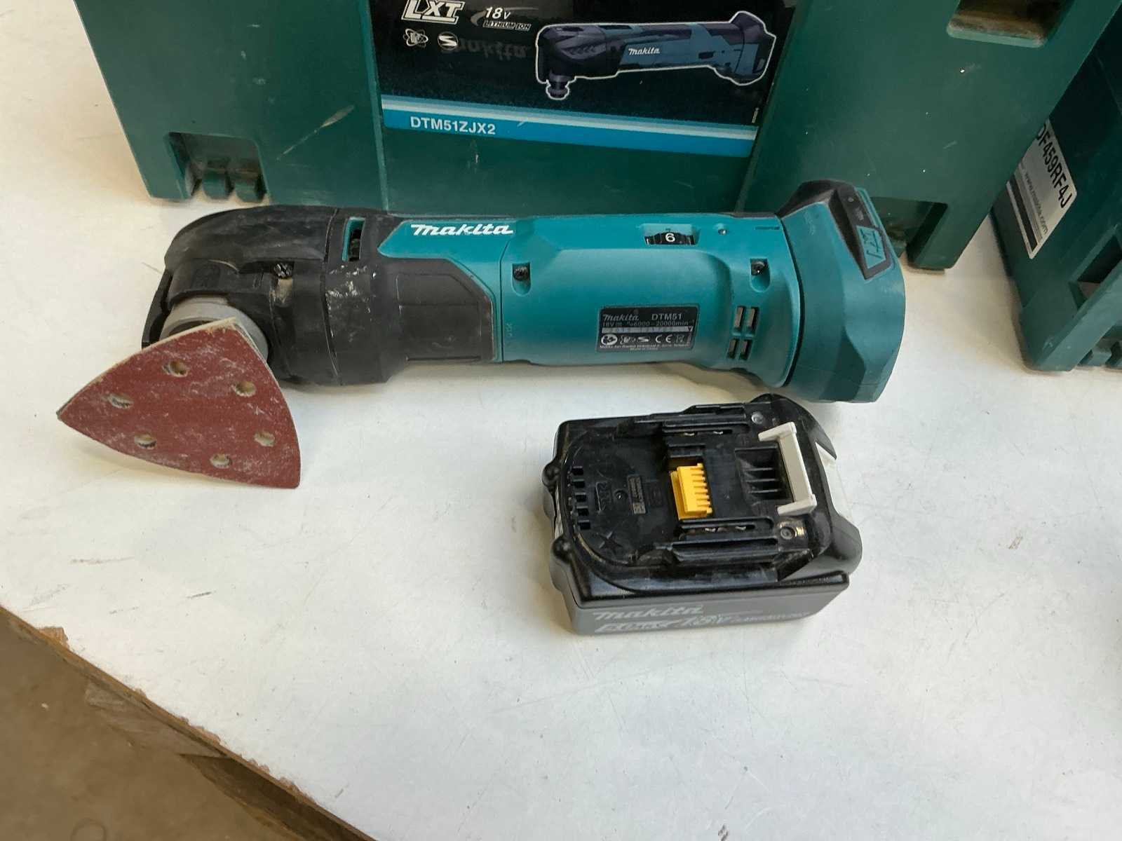 Zijnde: - DHR202 klopboormachine, met 1x 18V-accu en lader, s/n 769738Y - DHP453 schroefboormachine, met 1x 18V-accu en lader, s/n 1693700Y - DTM51 multitool, met 1x 18V-accu, geen lader, s/n 131708Y Merk: Makita