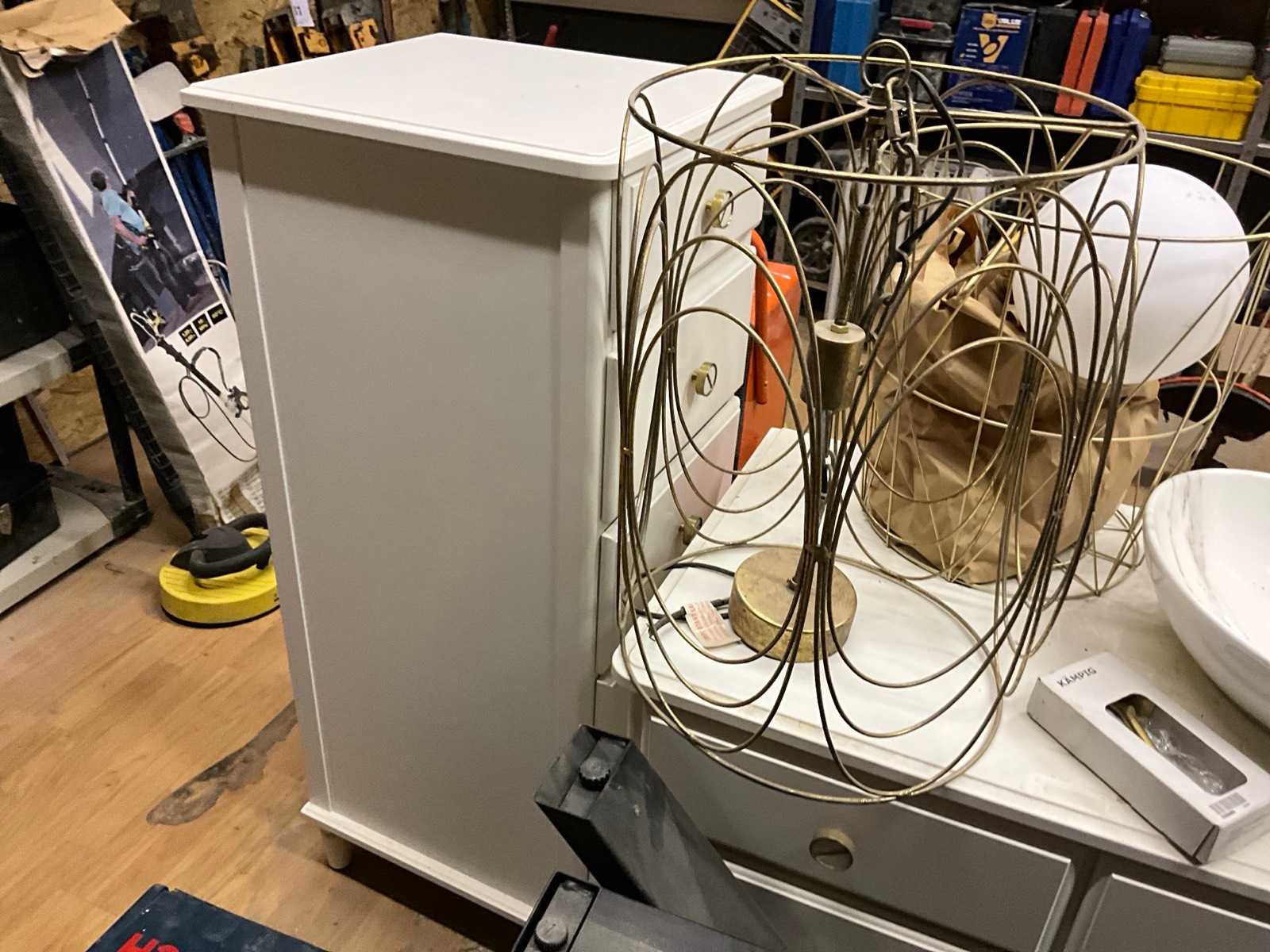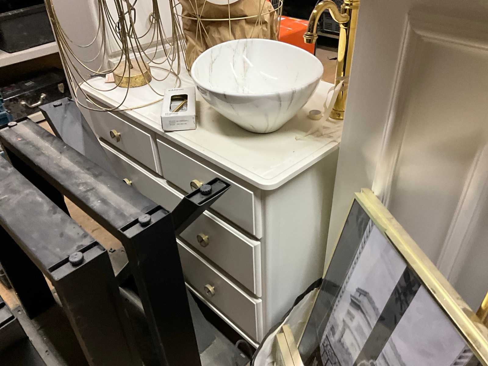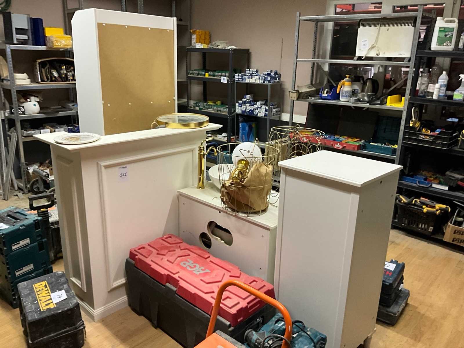 Waaronder wandkast, muurkast, 4 tafelpoten, spiegel, diverse decoratie